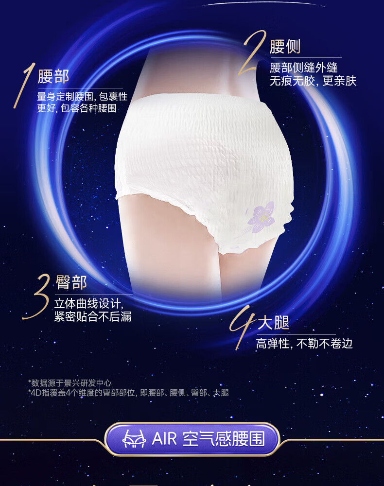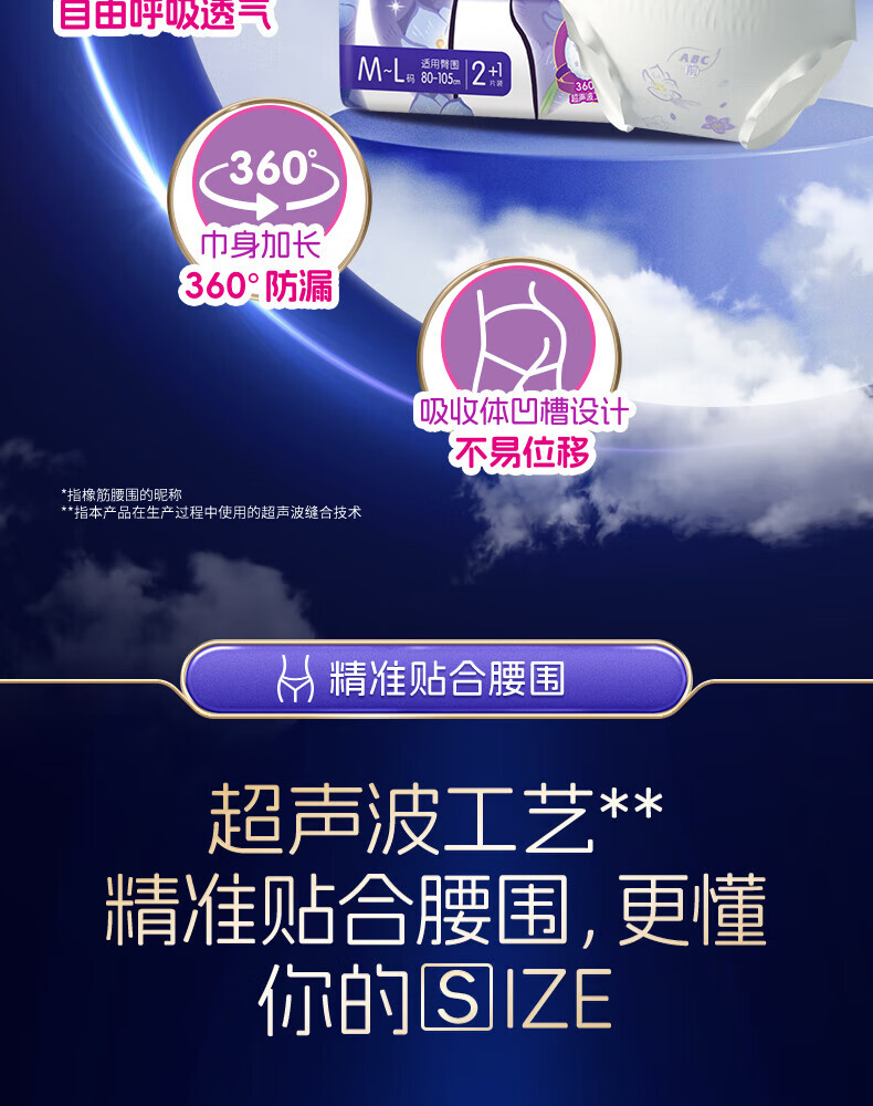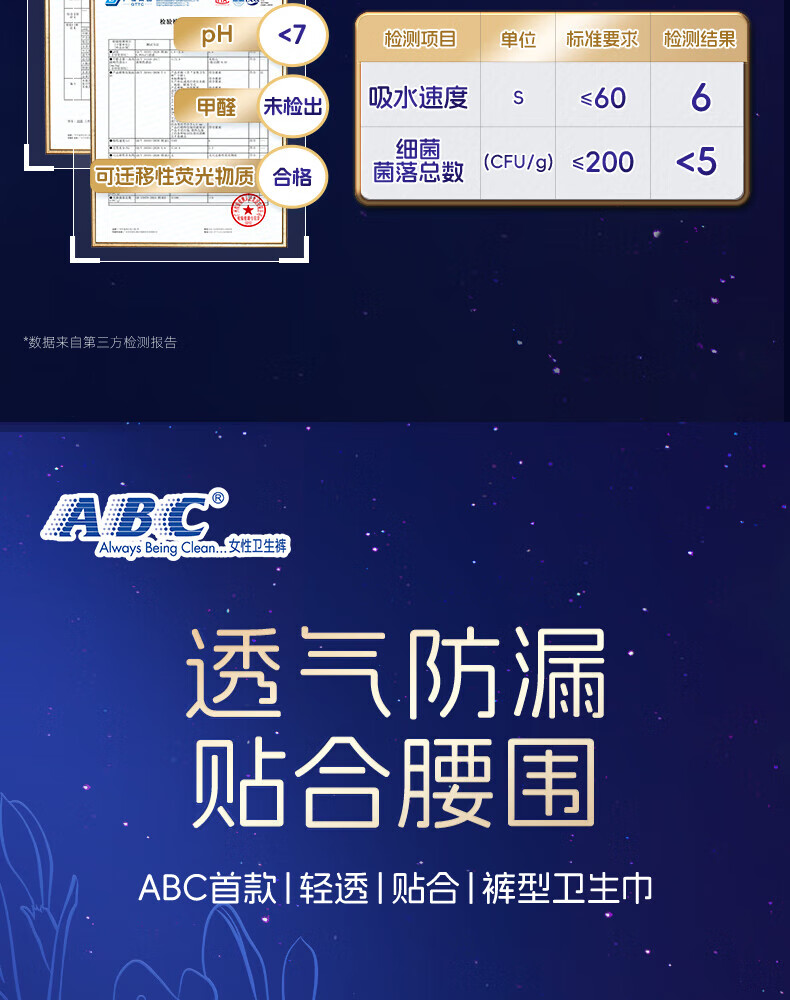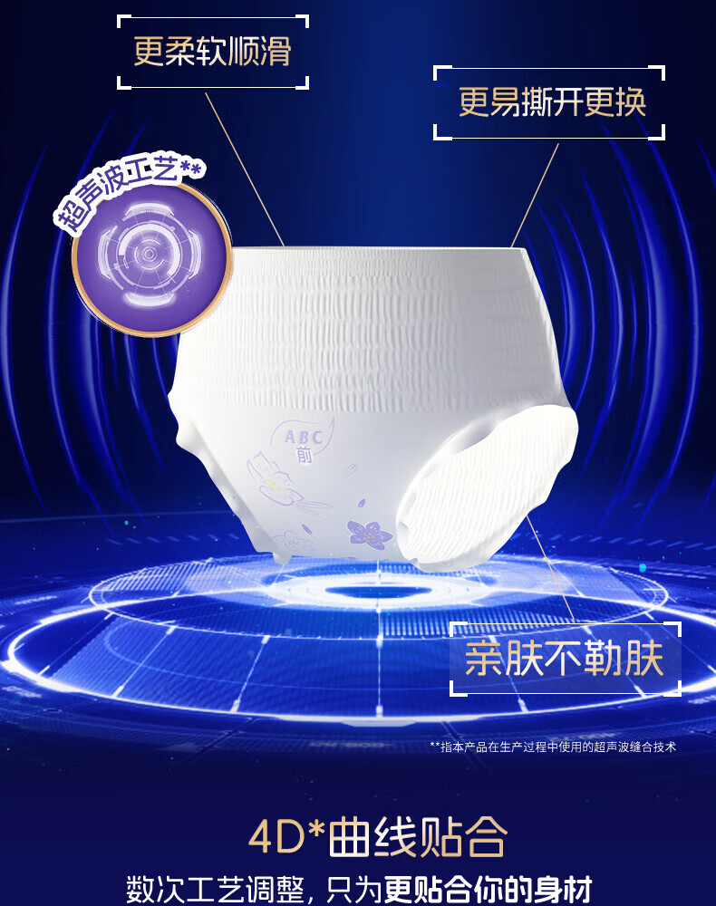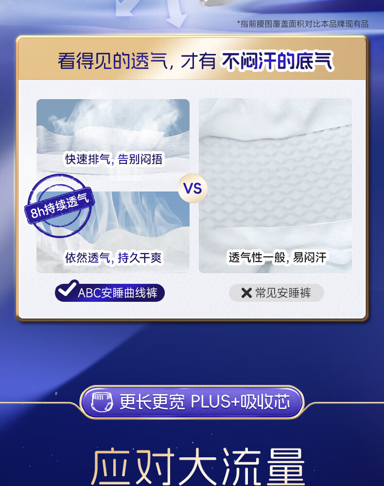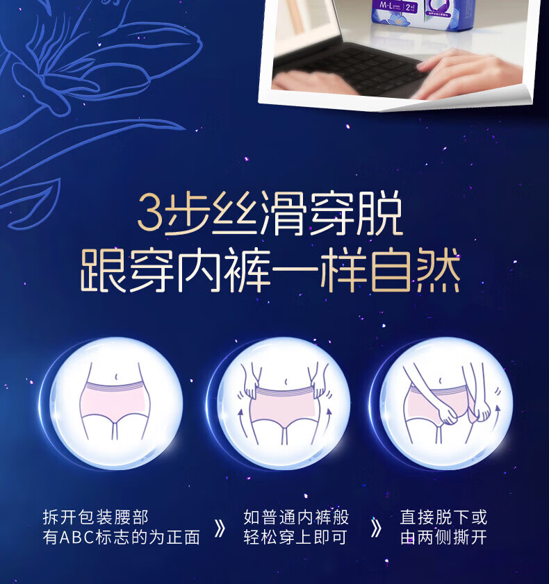 ABC安睡曲线裤柔软亲肤透气防漏安心睡裤型卫生巾安全裤 M-L码 12条t