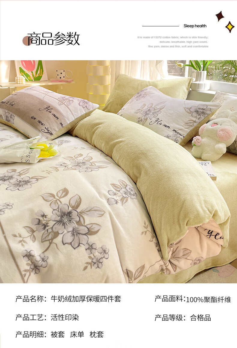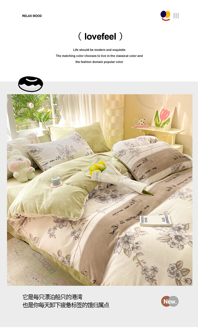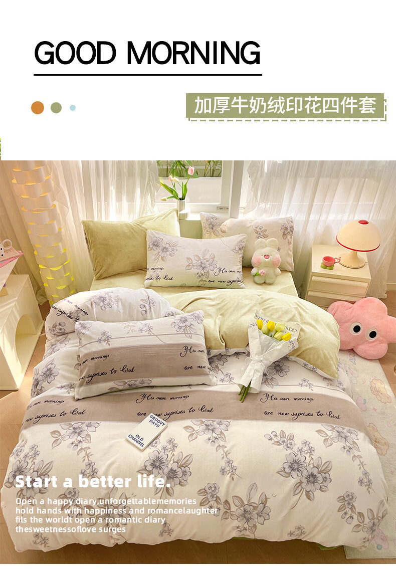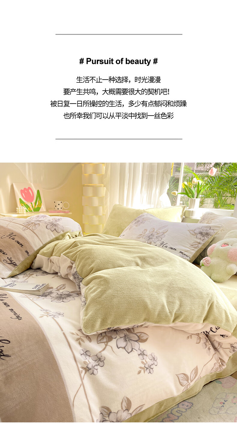 猫人(MiiOW)牛奶绒床上四件套2025新款冬季学生宿舍加绒加厚被套三件套 简约生活【高克重牛奶绒 蓄热保暖】 床单款 1.5-1.8床四件套适用200x230cm