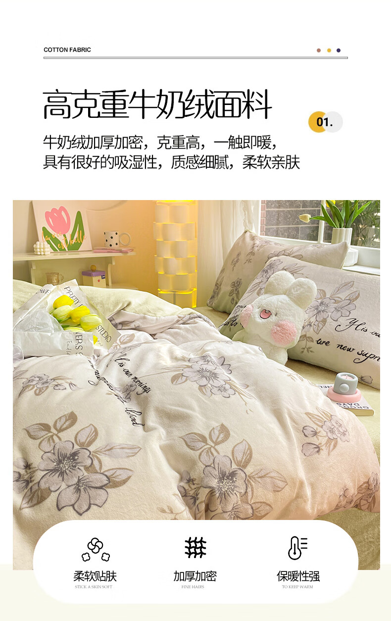 无印良品兔毛绒床上用品四件套秋冬牛奶绒2025新款高端轻奢床单被套三件套 罗拉-奶白【加厚保暖舒适裸睡】 1.5/1.8m 床单款 四件/被套200*230