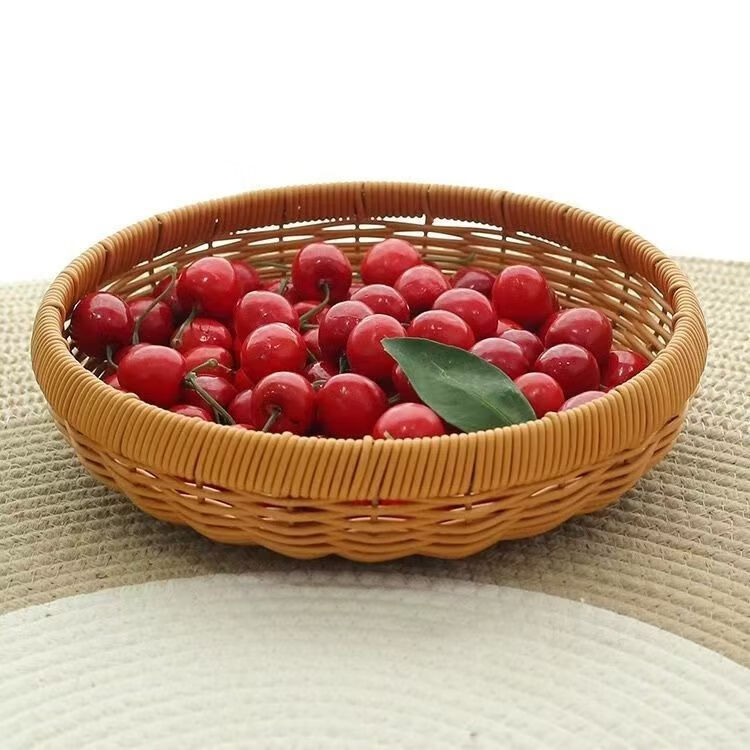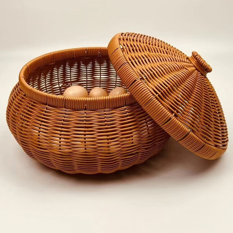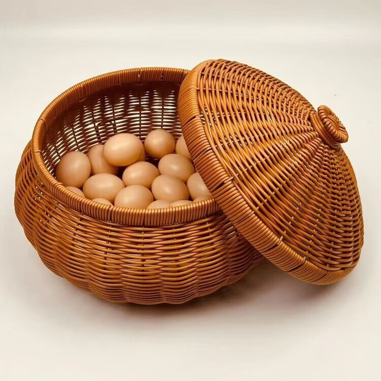 GIOIO新中式手工藤编水果面包零食鸡蛋圆形干果盘家用手工编织篮子 【可装100个鸡蛋】口径25内径30高16