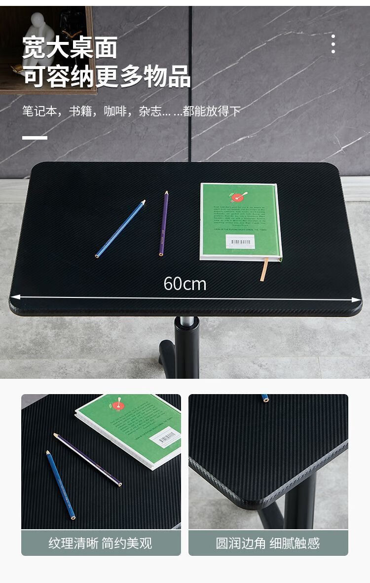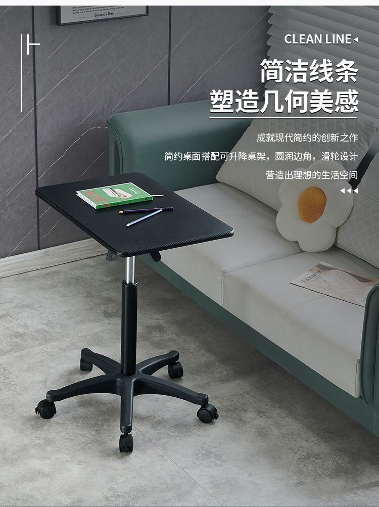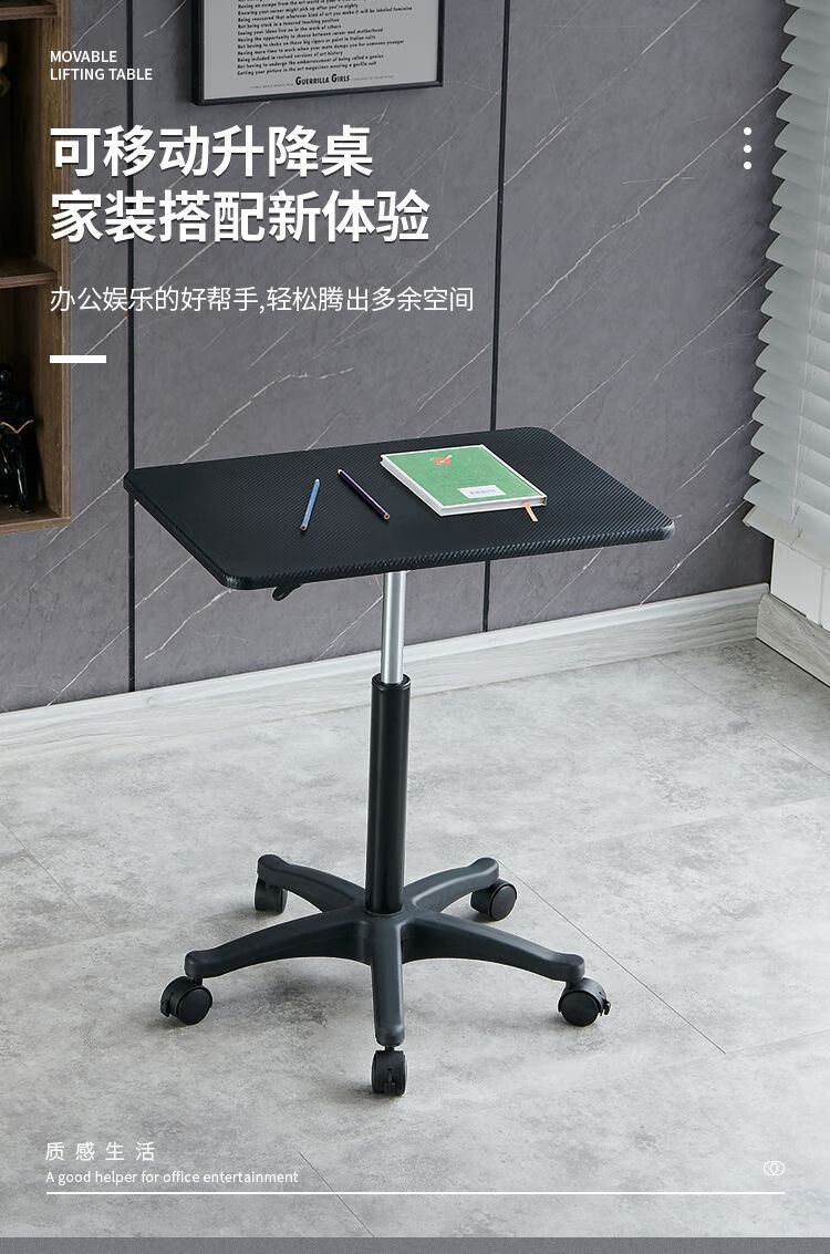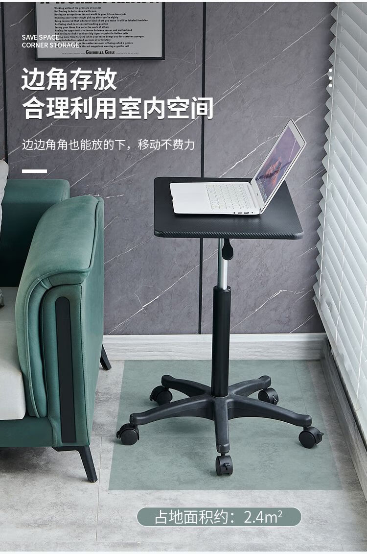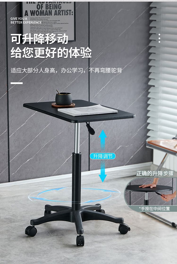 欣慕雅可移动升降桌站立式工作台小型沙发床边桌笔记本电脑办公桌小圆桌 黑色款式 (39宽60长)圆底盘款升降区54-75cm