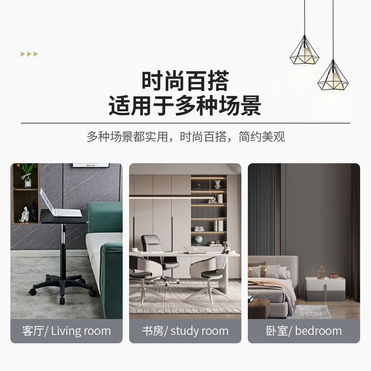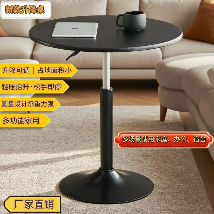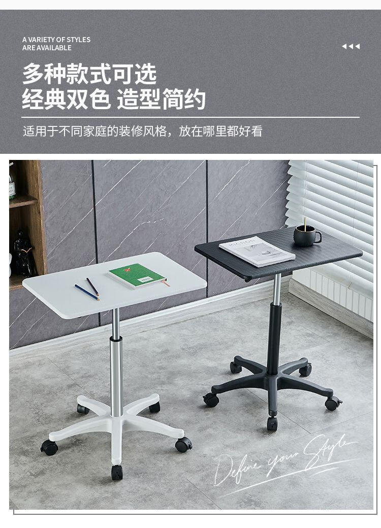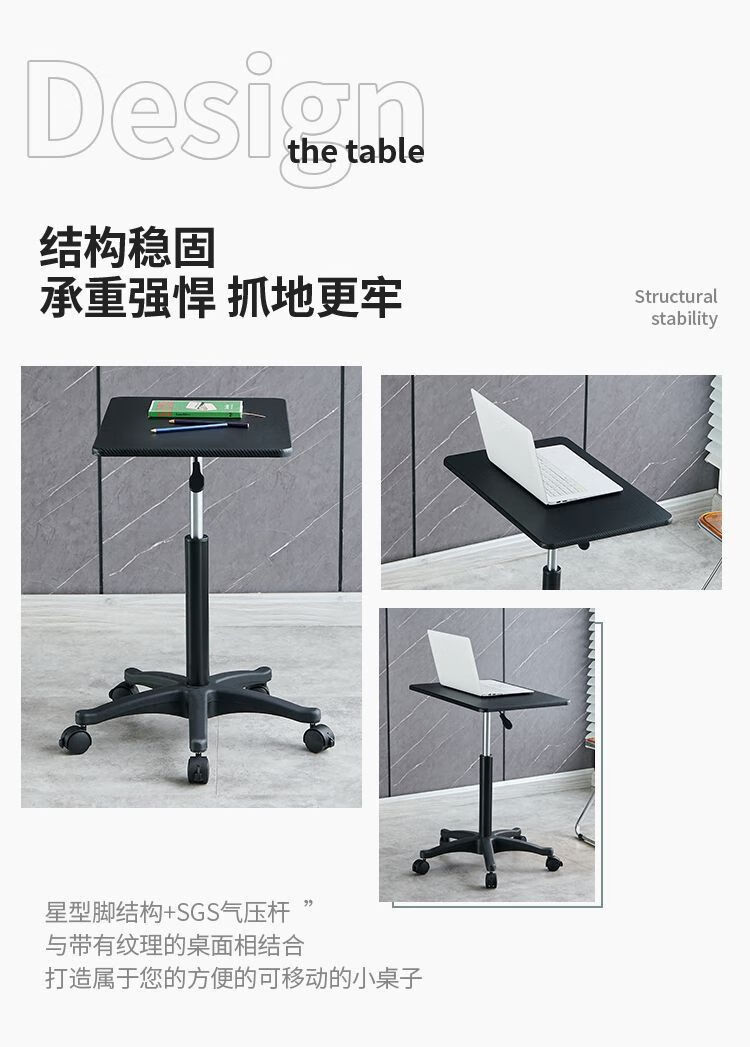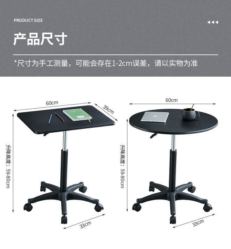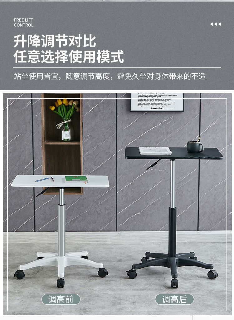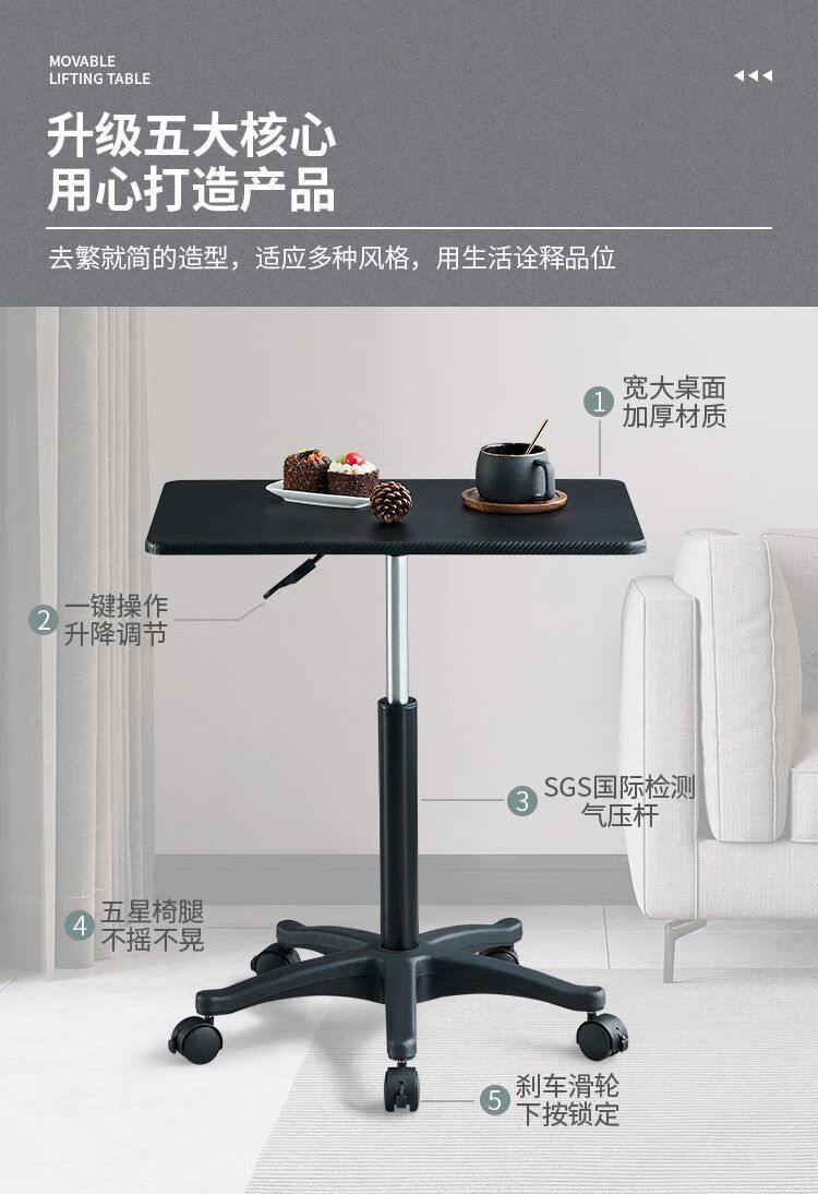 欣慕雅可移动升降桌站立式工作台小型沙发床边桌笔记本电脑办公桌小圆桌 黑色款式 (39宽60长)圆底盘款升降区54-75cm