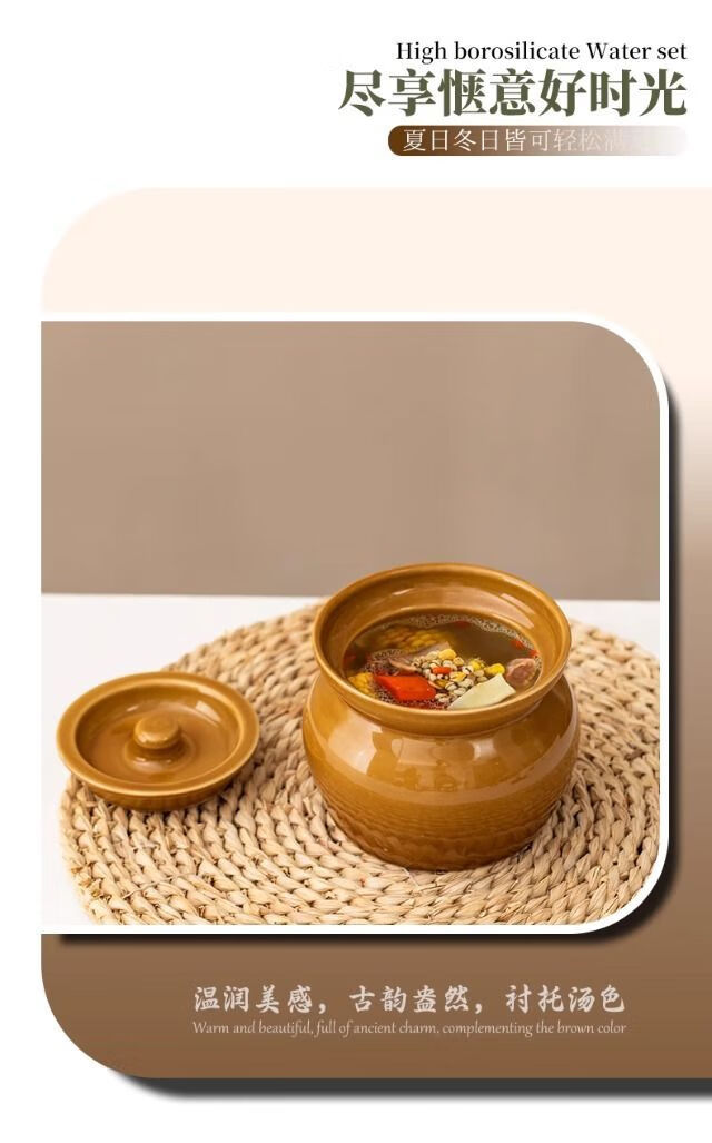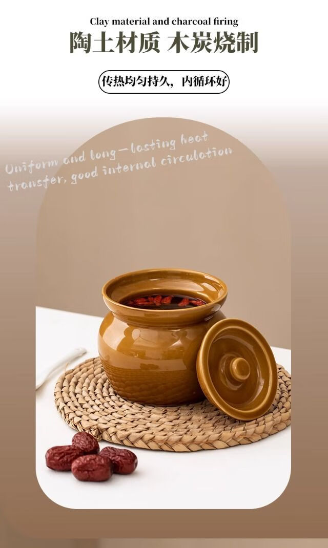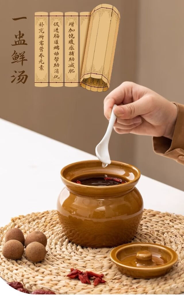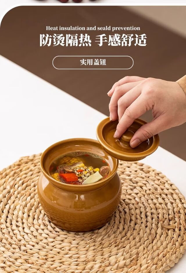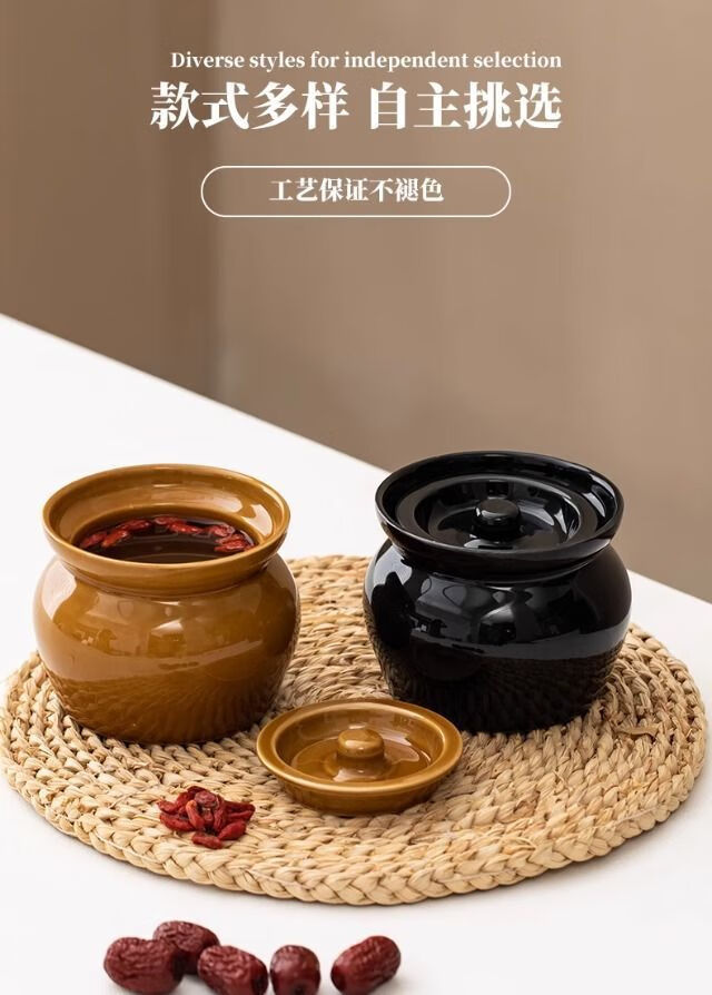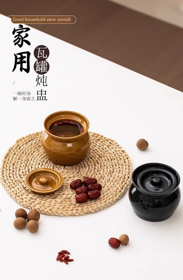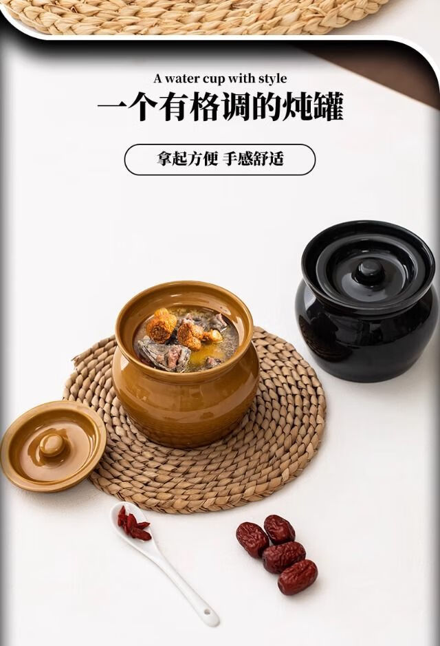 简漾瓦罐煨汤加厚炖盅家用商用隔水炖一人蒸蛋炖罐沙县小吃陶瓷煲汤罐 白加黑加厚 1ml 瓦罐送食谱