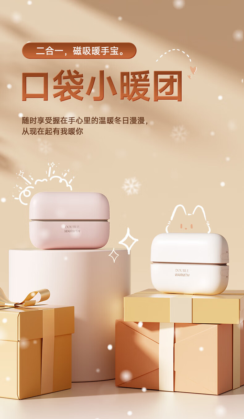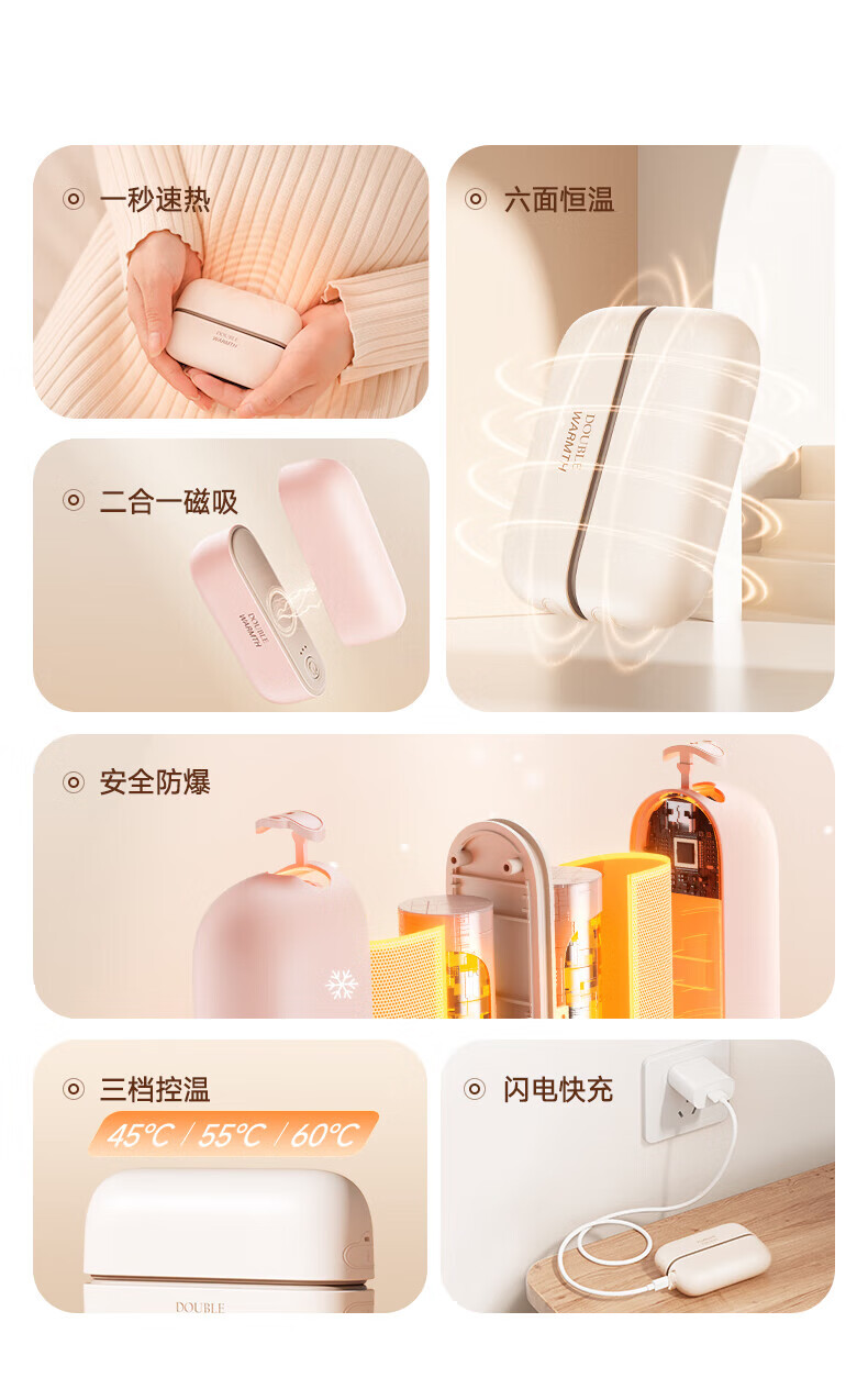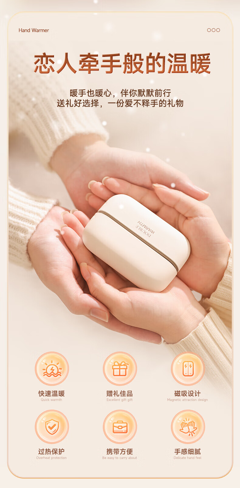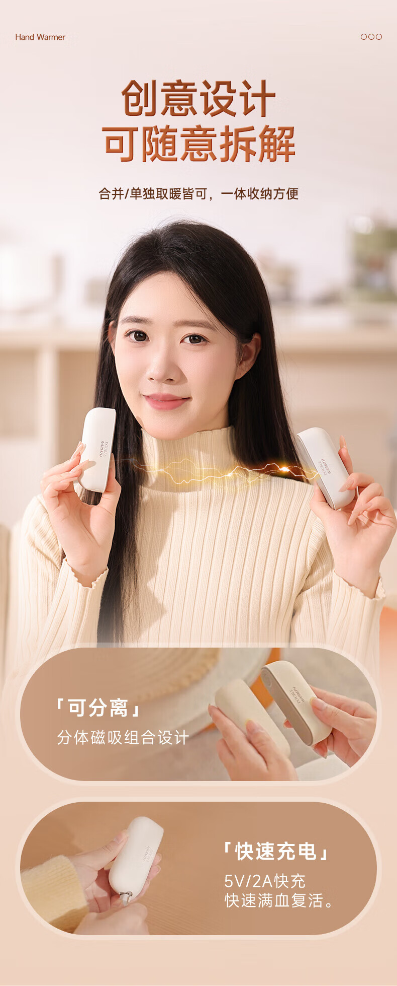 艾勒丝汀【2025新款丨磁吸暖手宝】二合一充电迷你女生暖宝宝分离手握式电热发热宝生日礼物送女友取暖神器 【珍珠白】2025新款丨磁吸分体2合1 【5000mA】3秒速热+安全防爆丨三档控温