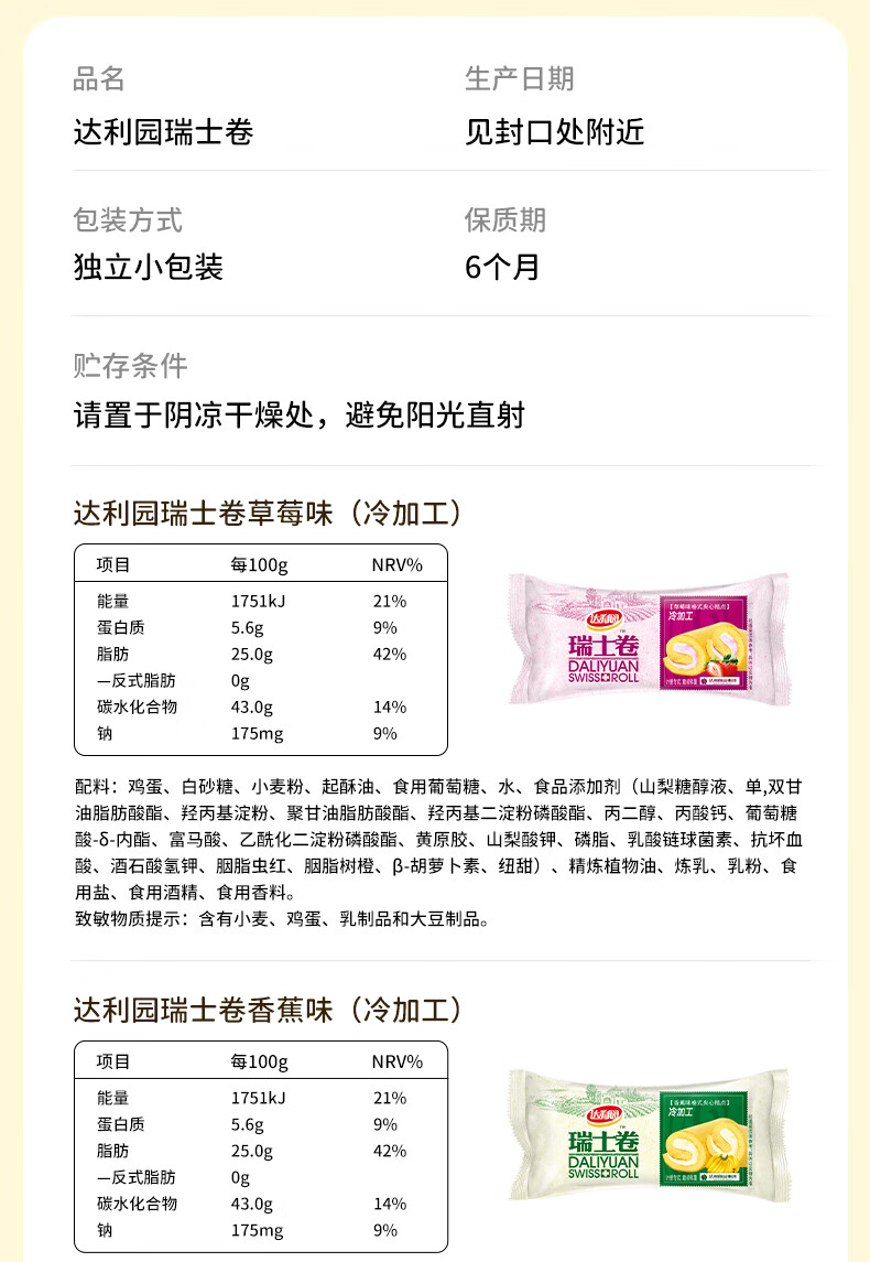 达利园瑞士卷香蕉味3斤整箱独立包装零食早餐面包充饥蛋糕卷