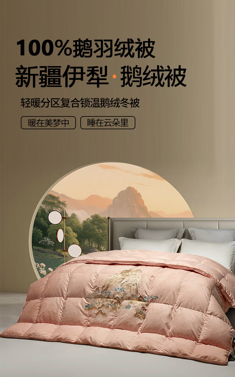 元族(7A级100%鹅羽绒被)静音保暖抗菌除螨冬被加厚双人高蓬松羽绒被 蝶羽-灰 220*240cm冬被 (填充1500g白鹅绒)