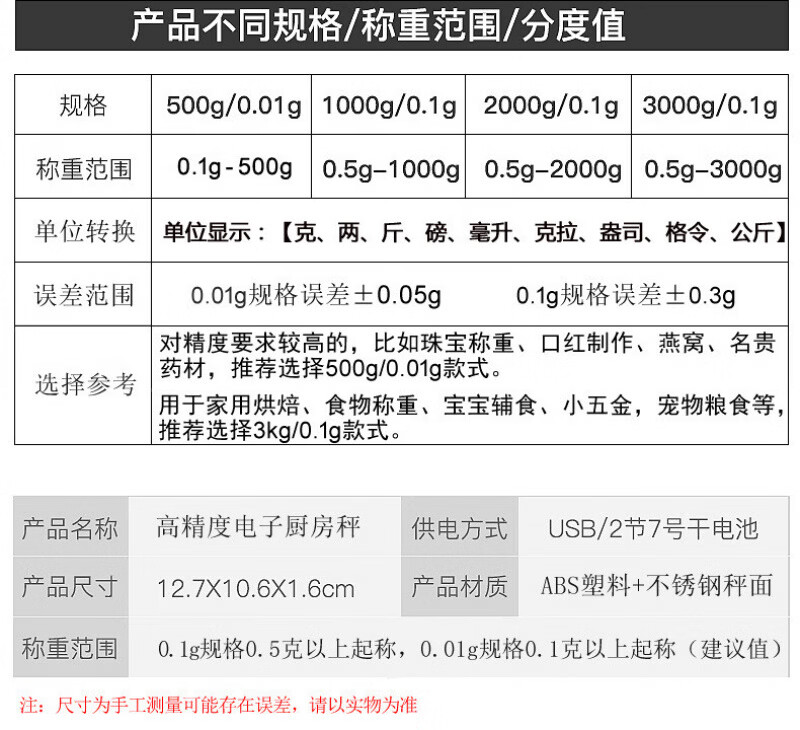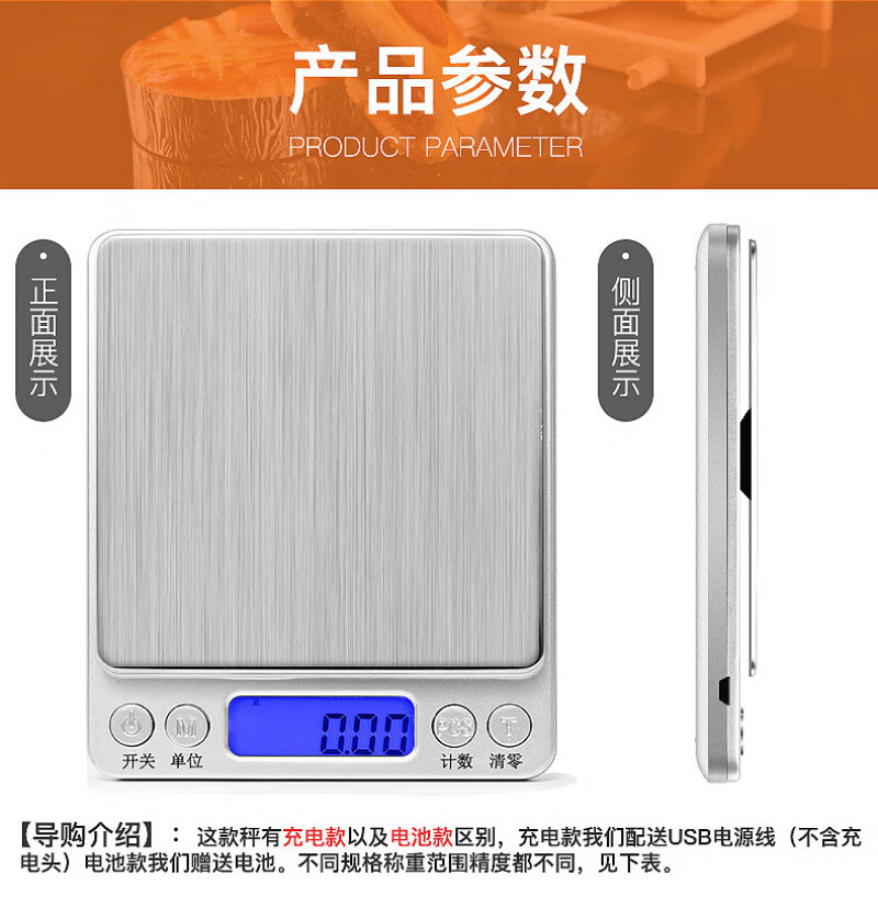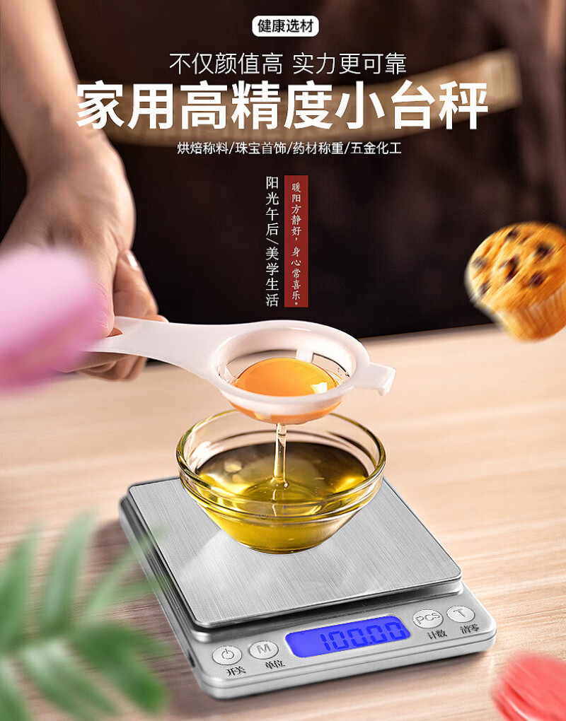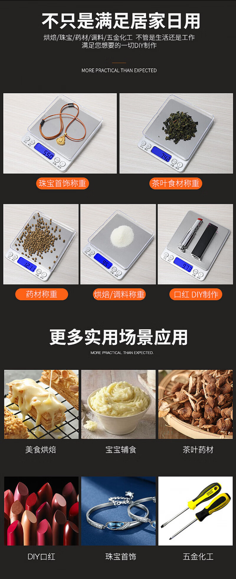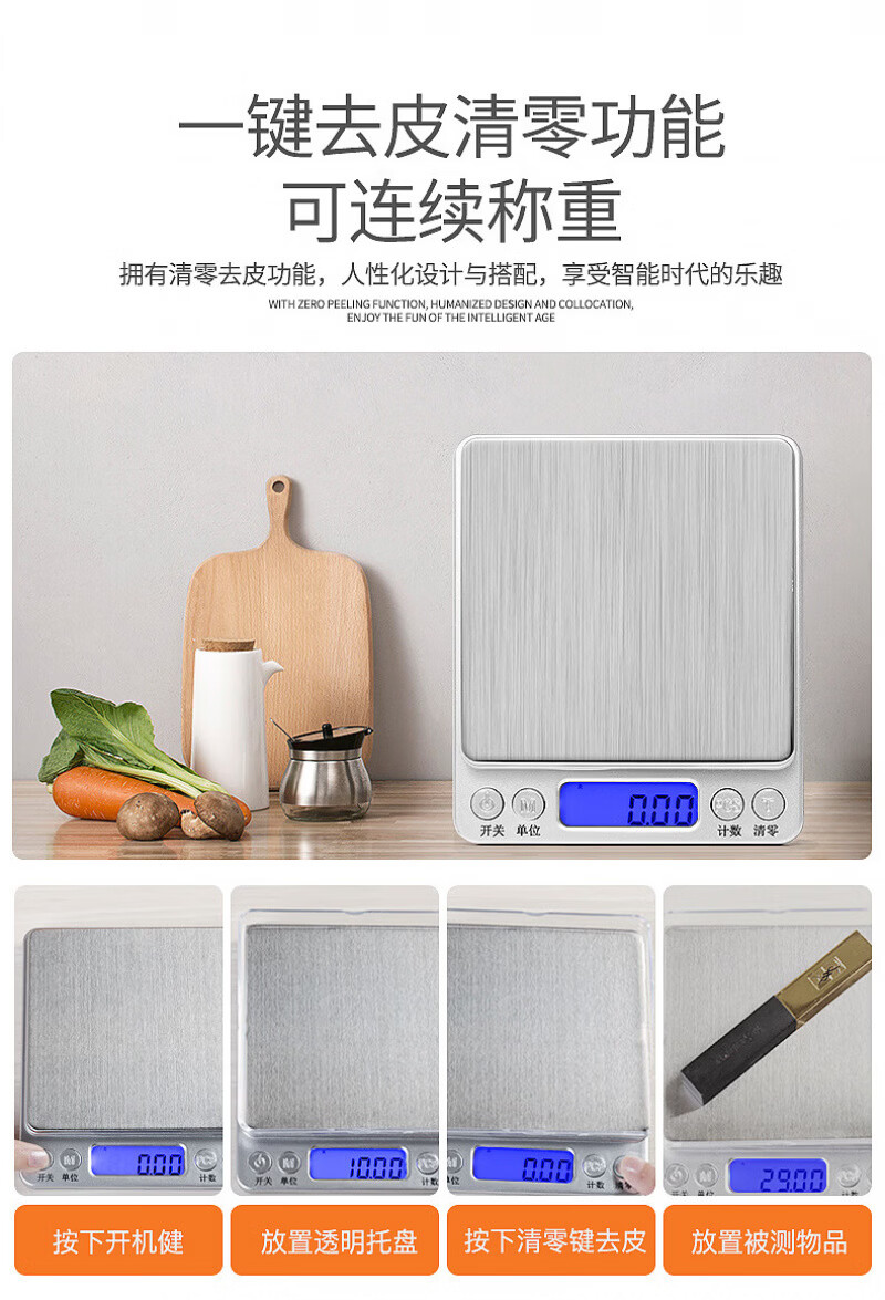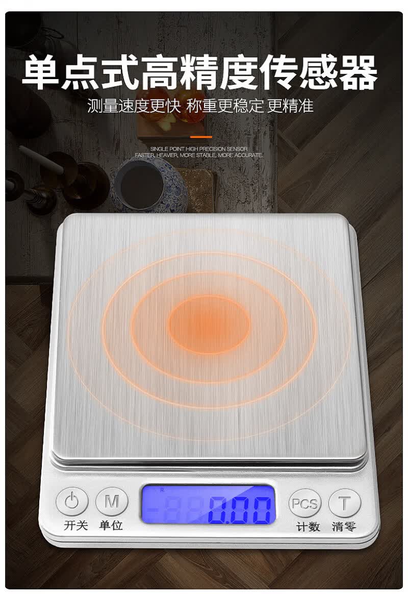 Lovefamily德国精工小型家用电子秤高精度厨房秤精准中药克称烘焙食物黄金秤 三用款【500g/0.01g】