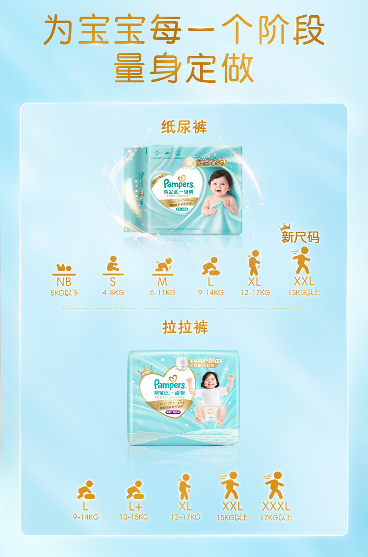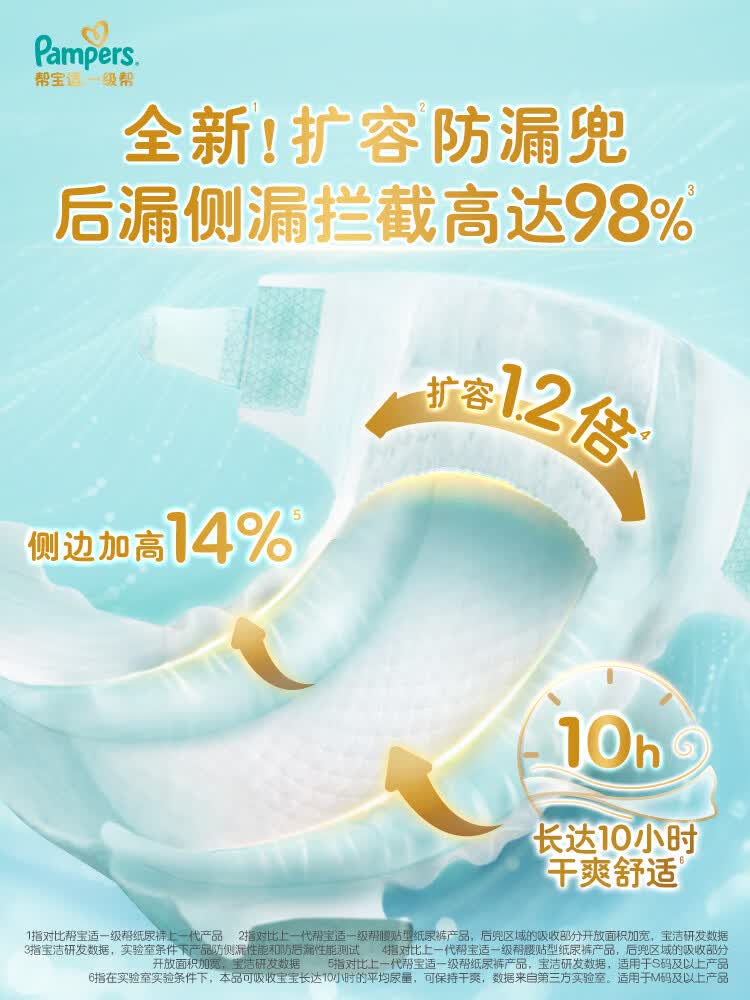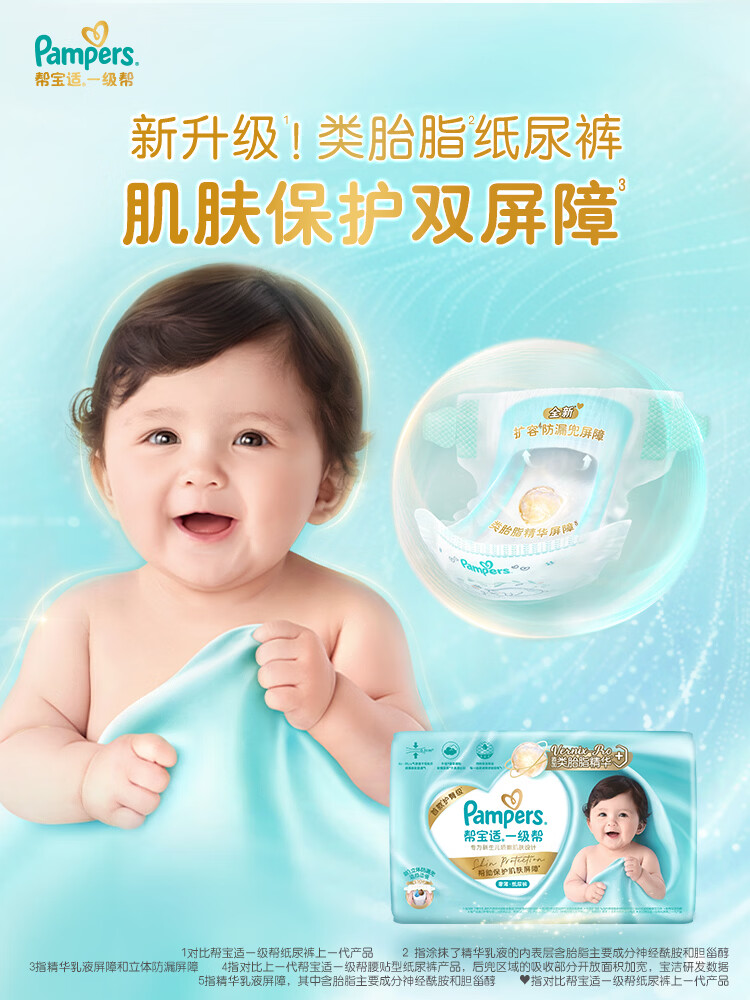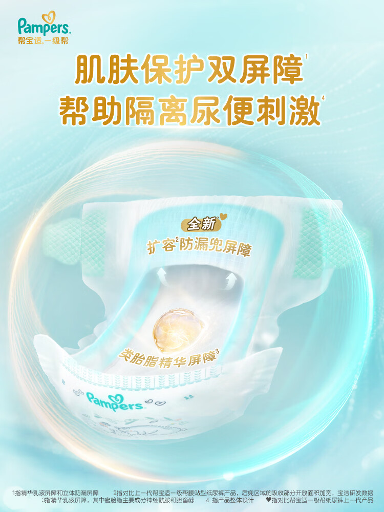 帮宝适【类胎脂】新一级帮新生儿防漏超薄纸尿裤 婴儿尿不湿尿裤尿片 【超值箱装】M92片(6-11kg) 常规款