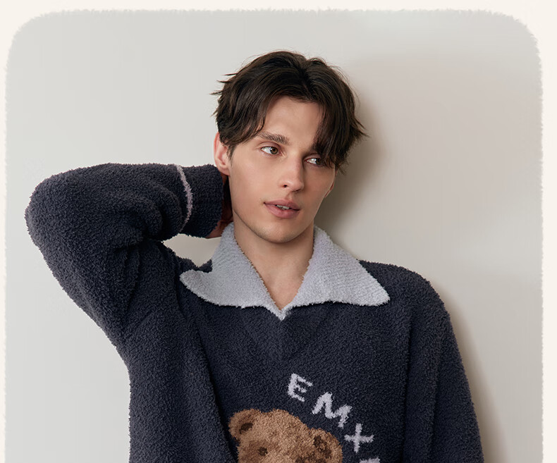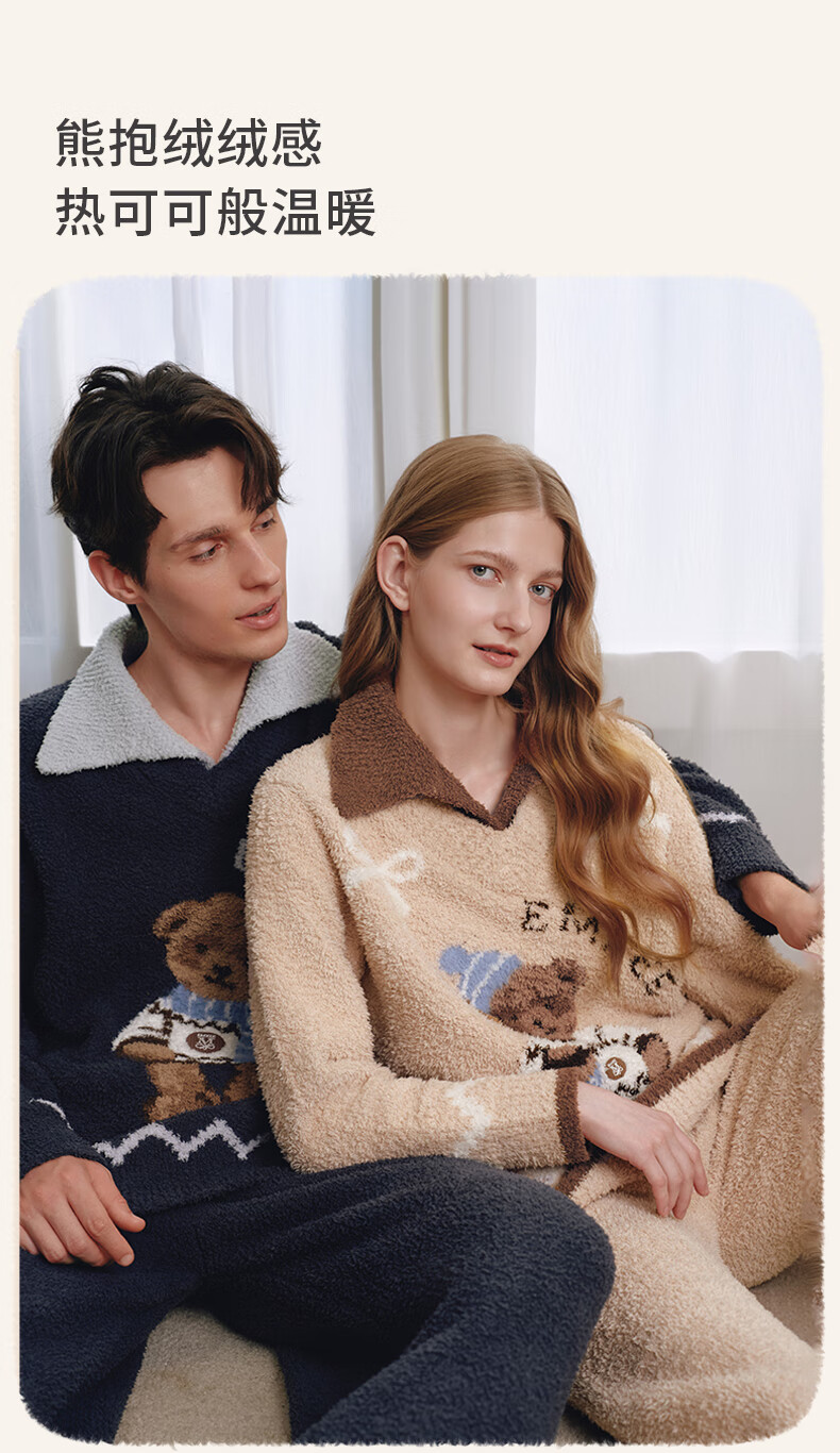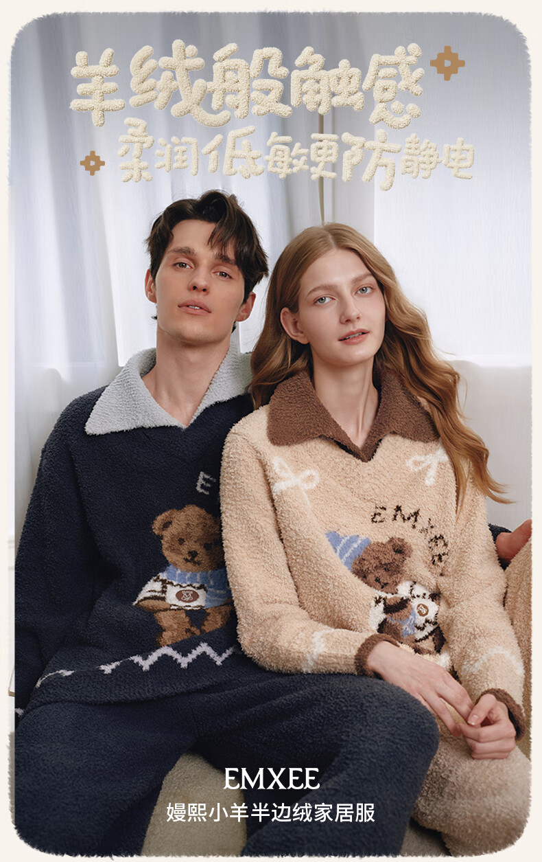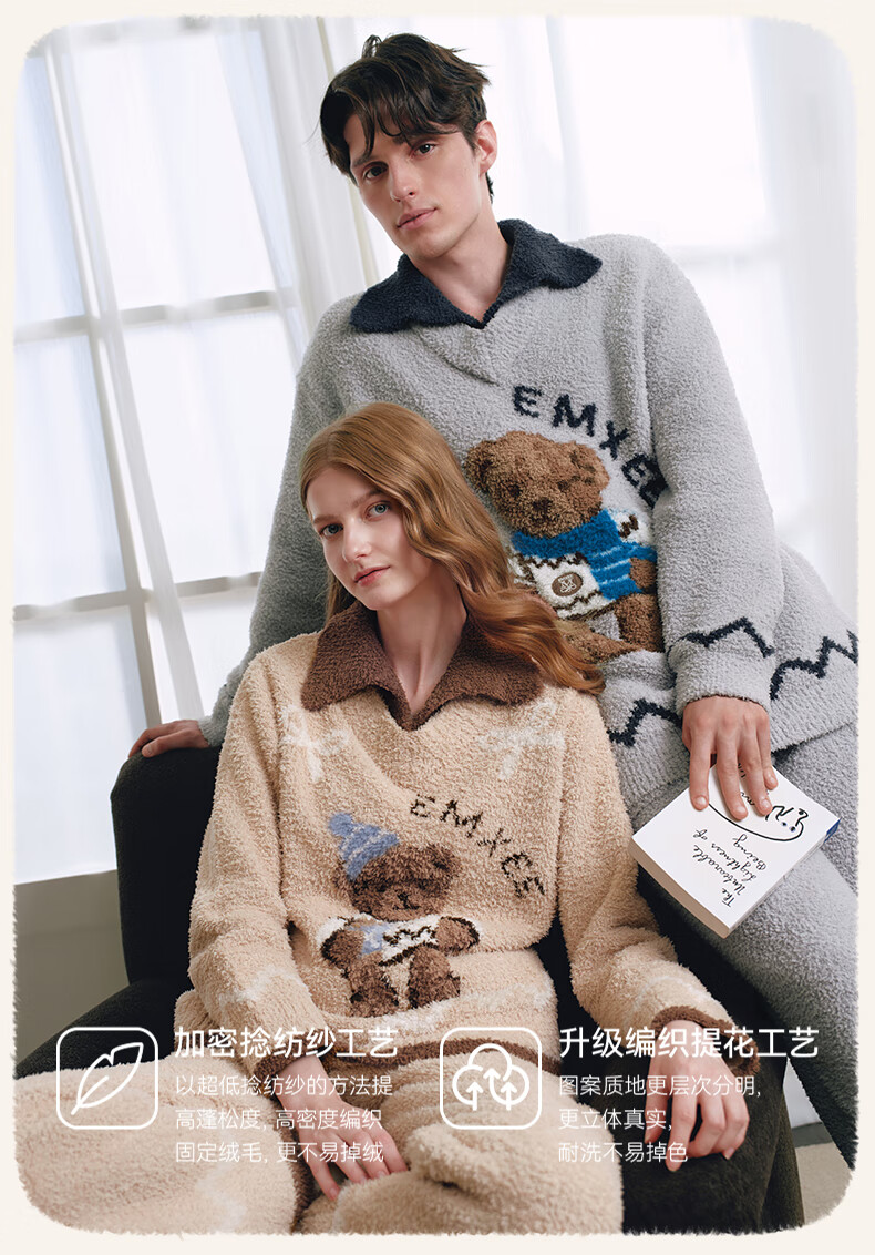 嫚熙(EMXEE)秋冬季牛油果半边绒孕妇睡衣侣保暖加厚家居服女士套装2025新款 暗雾灰 XXL (男款)