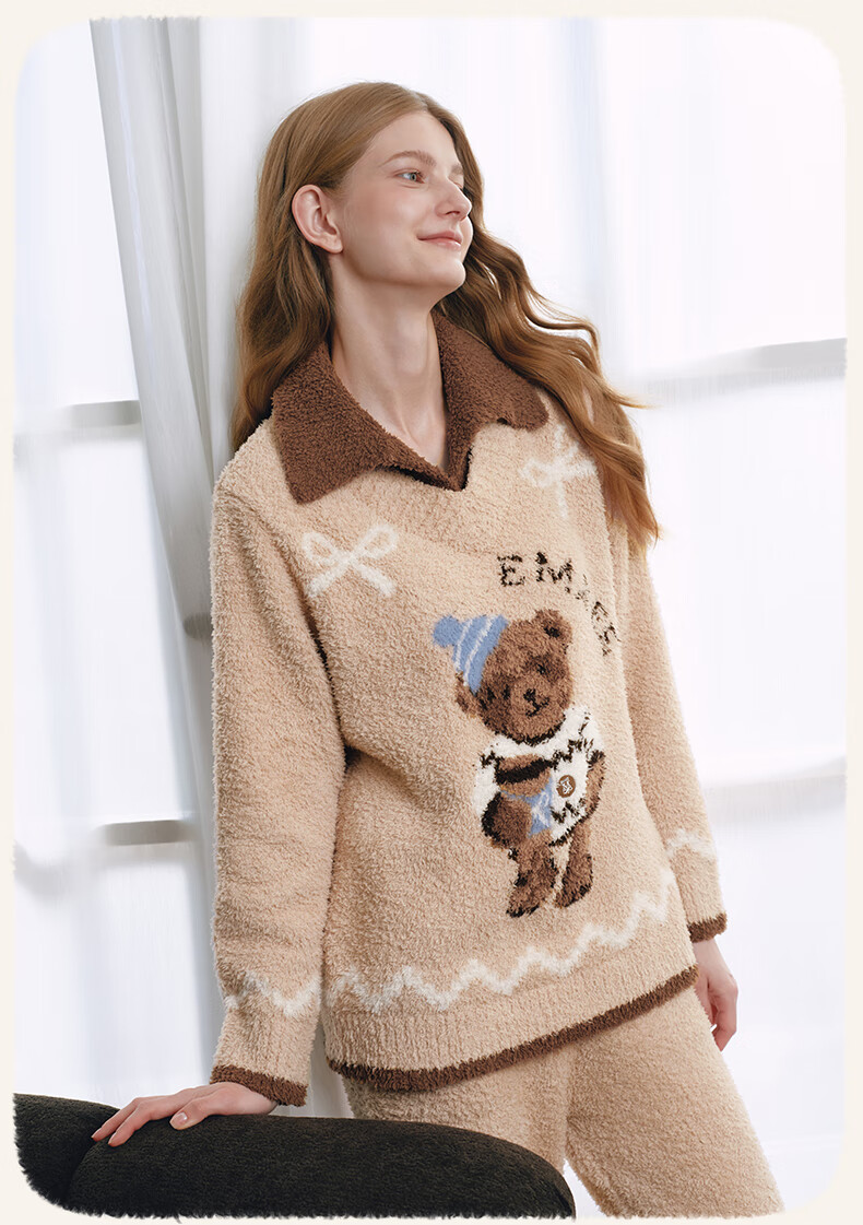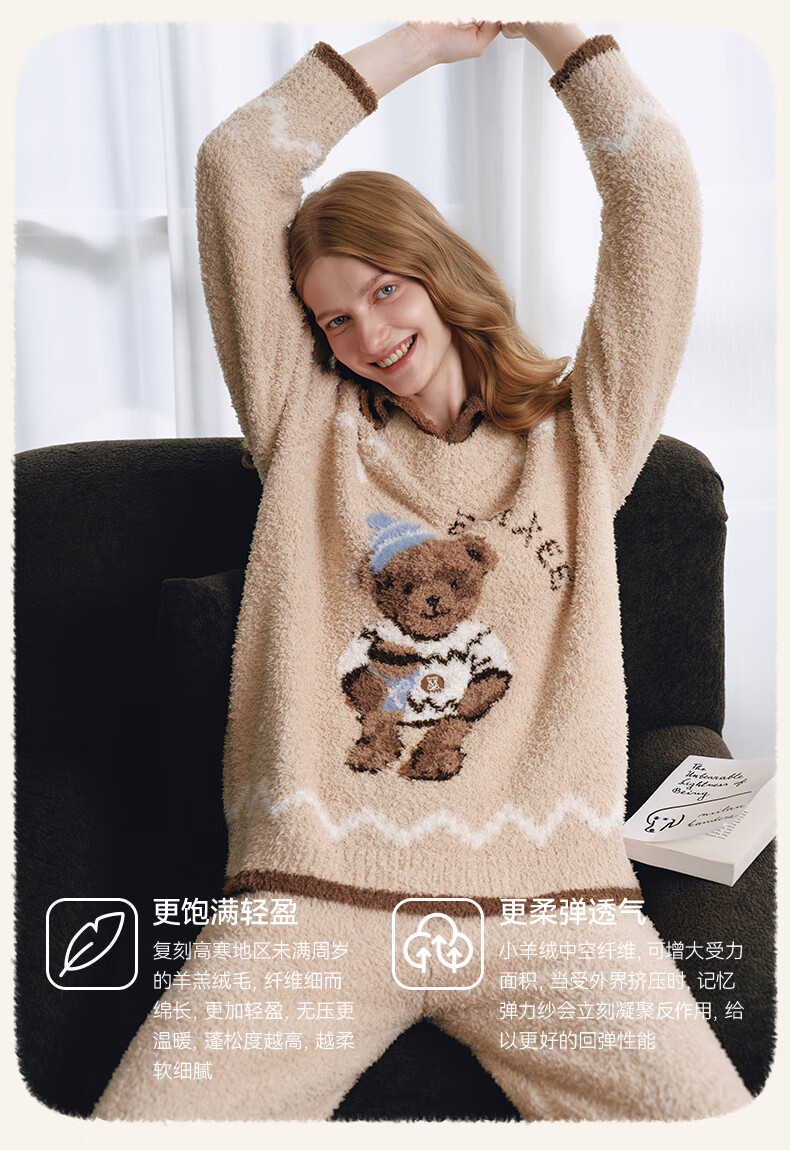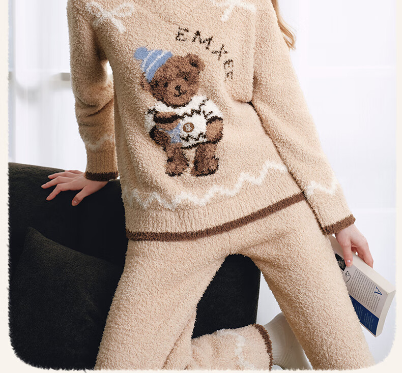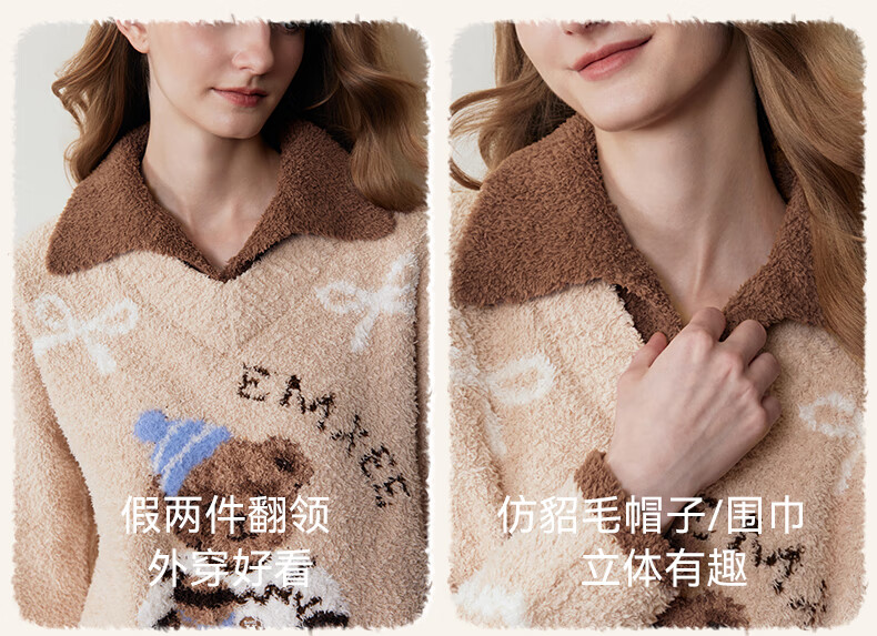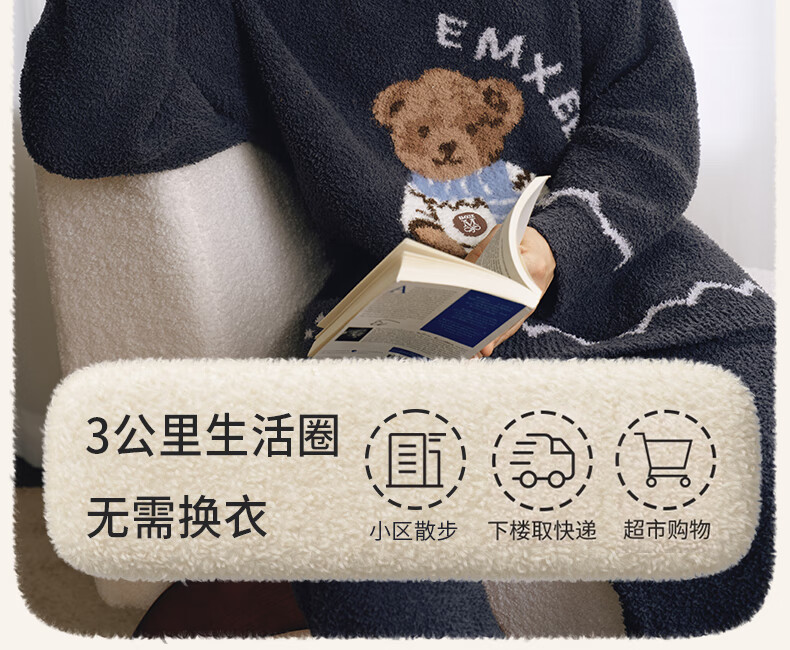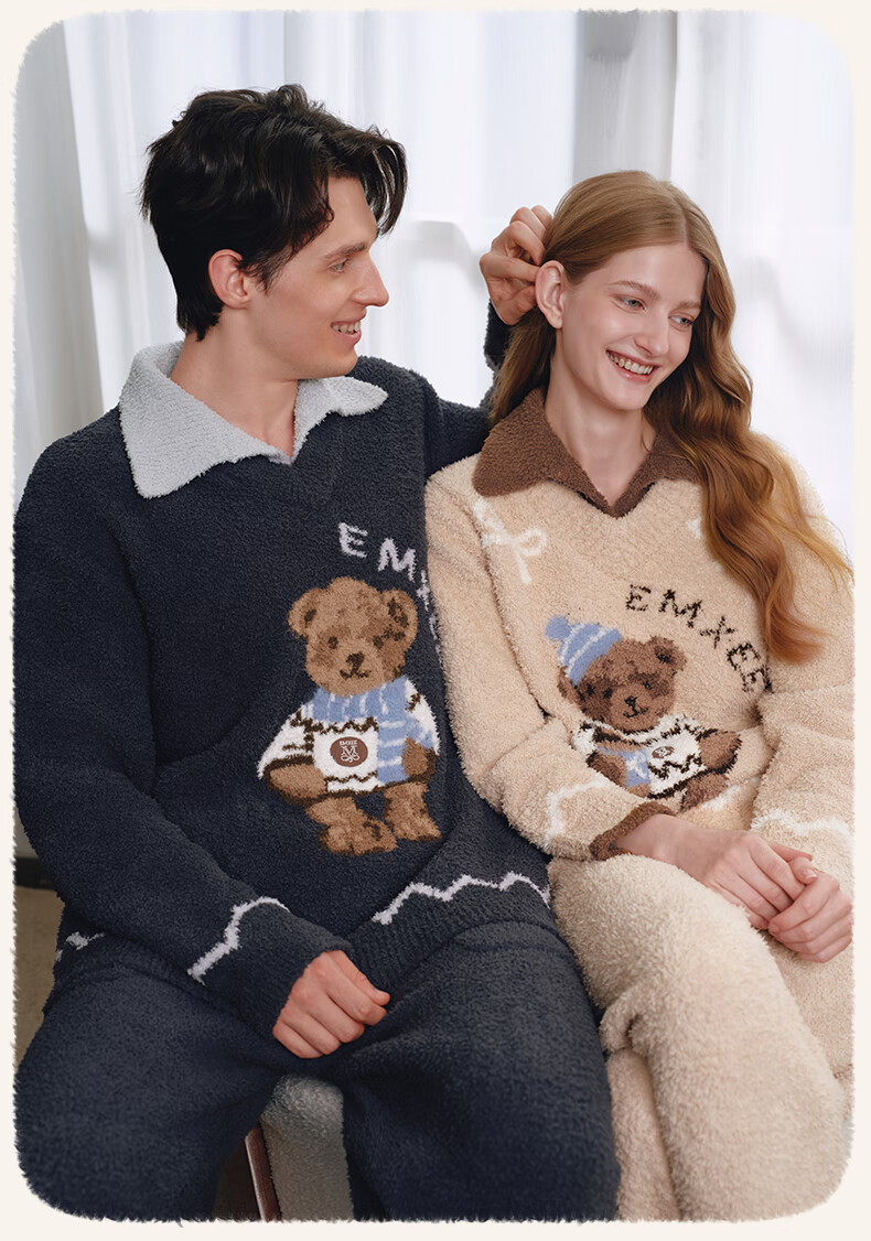 嫚熙(EMXEE)秋冬季牛油果半边绒孕妇睡衣侣保暖加厚家居服女士套装2025新款 暗雾灰 XXL (男款)