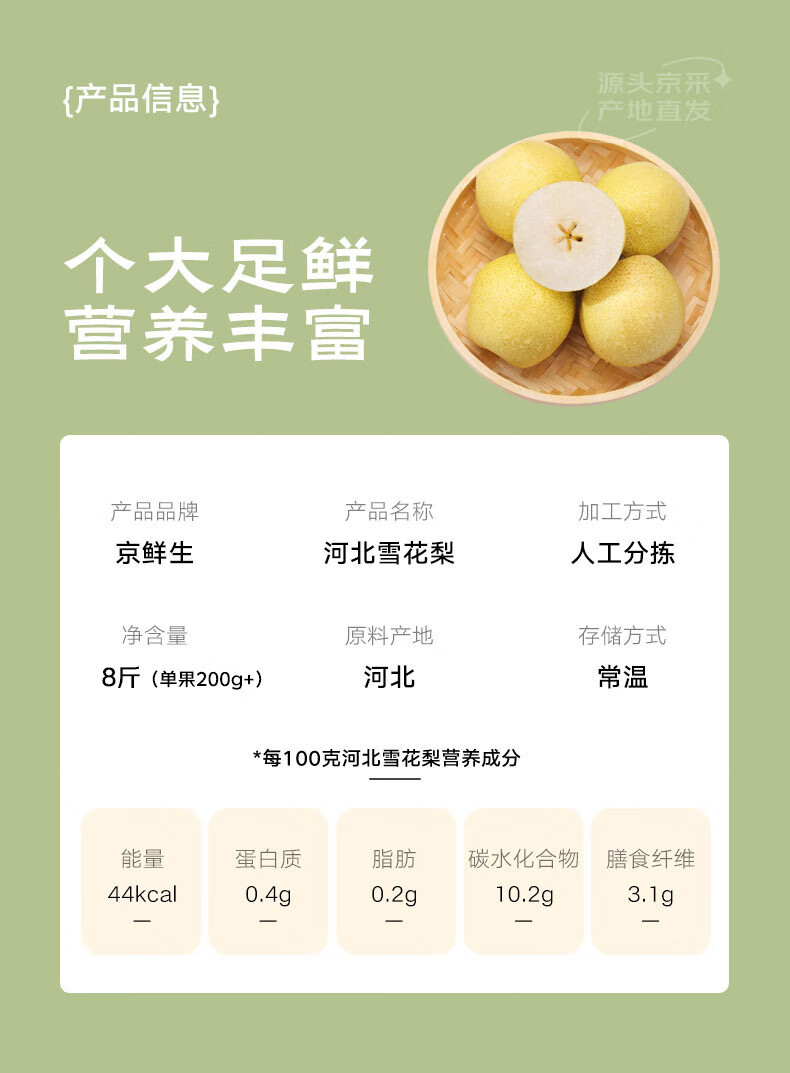 京鲜生 河北雪花梨 净重8斤 单果200g+ 生鲜水果 源头直发 包邮