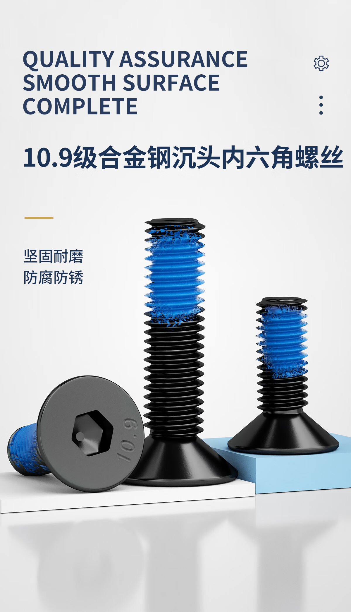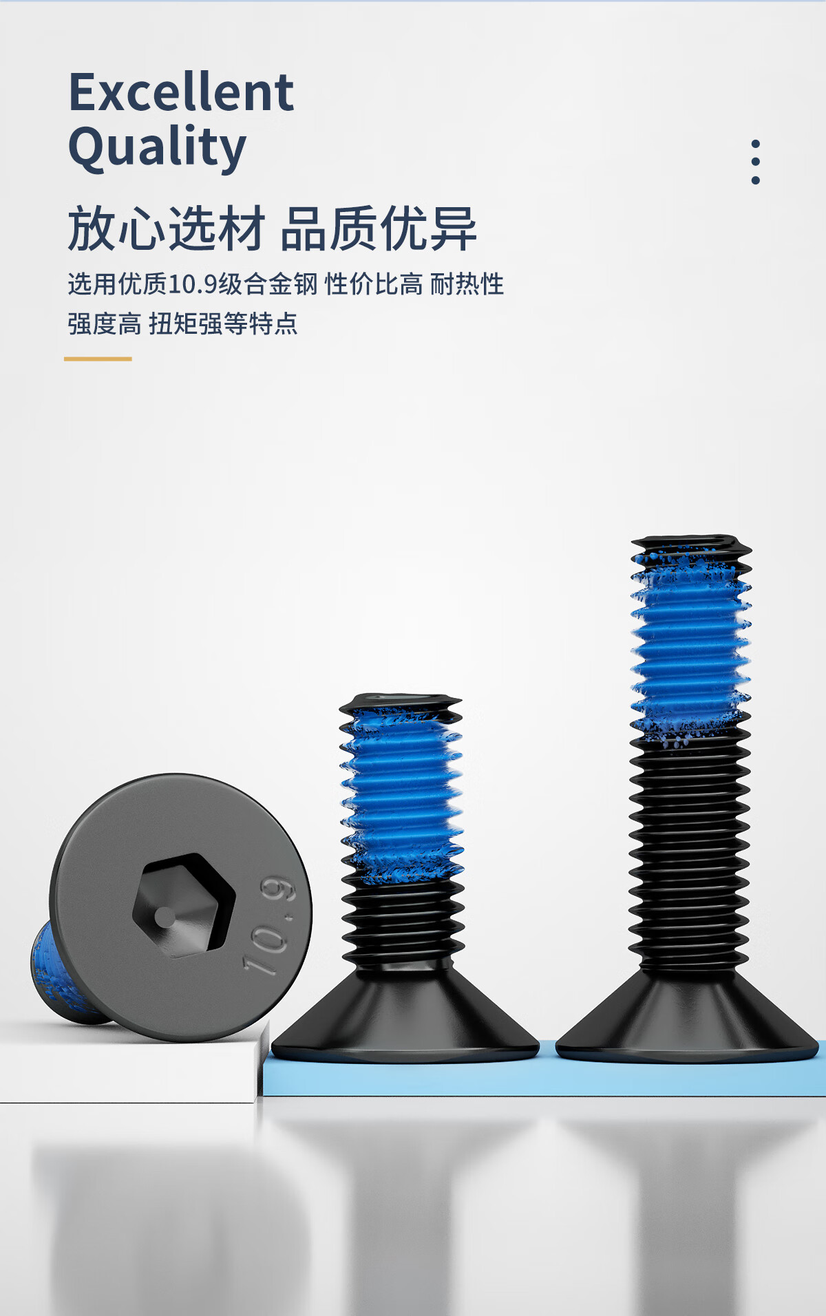 固万基(GUWANJI)10.9级高强度点胶沉头平头内六角螺丝钉平杯螺栓M2M3M4M5M6M8 M2x4[200只]