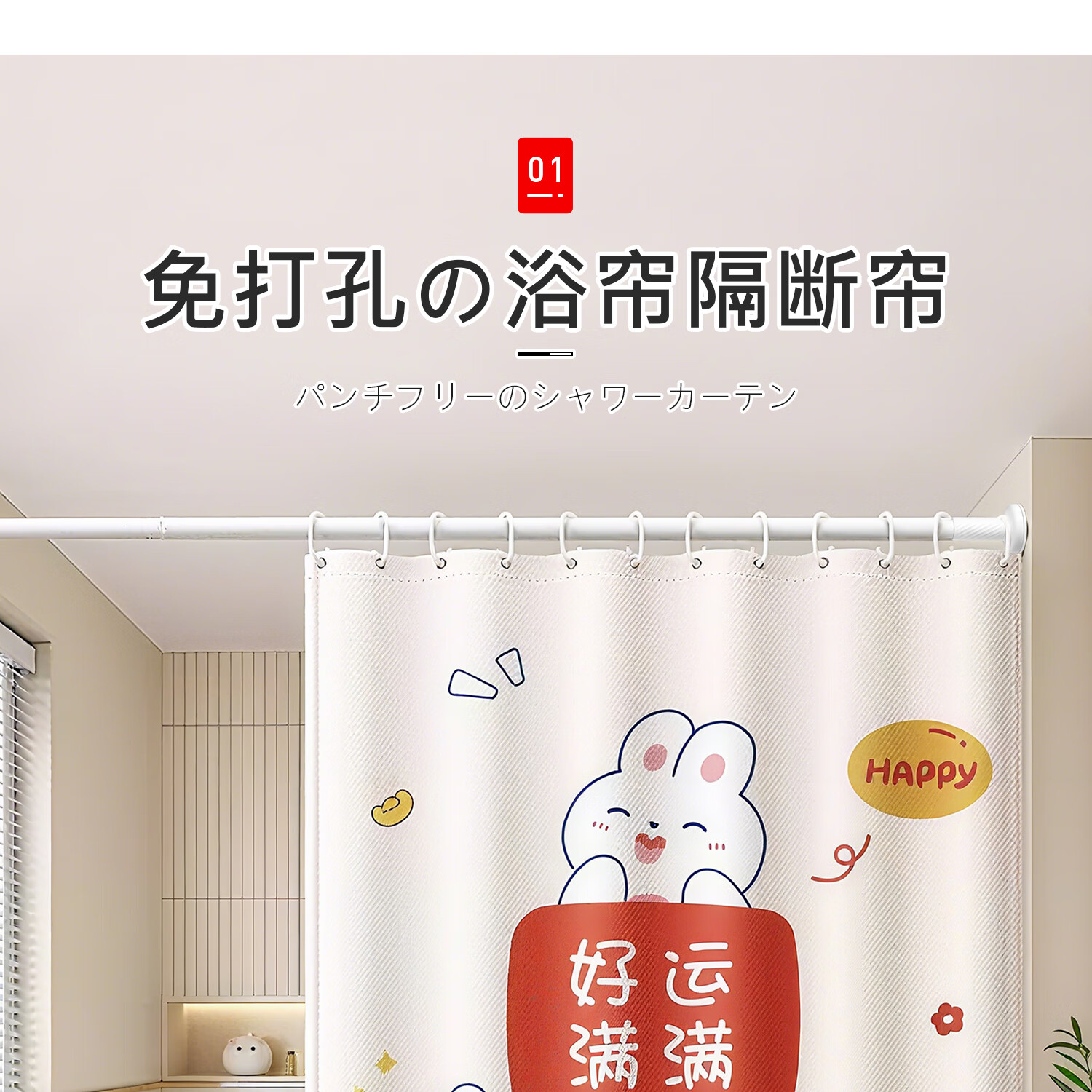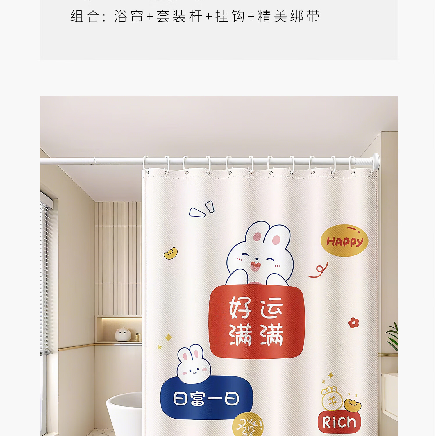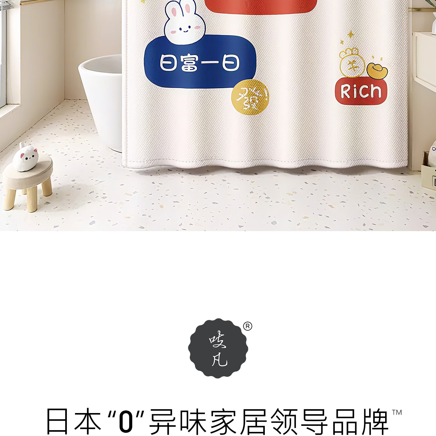 吱凡日本浴帘隔断帘防水高档卫生间干湿分离浴室洗澡防霉免打孔窗帘布 动物派对【160克加厚款】 【帘+杆】帘宽180x200+伸缩杆长110-200