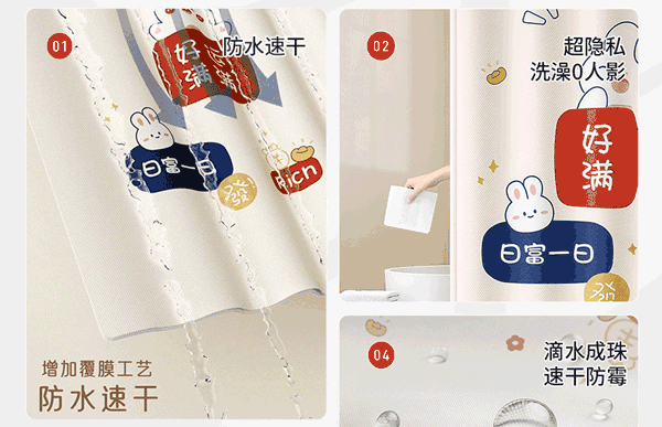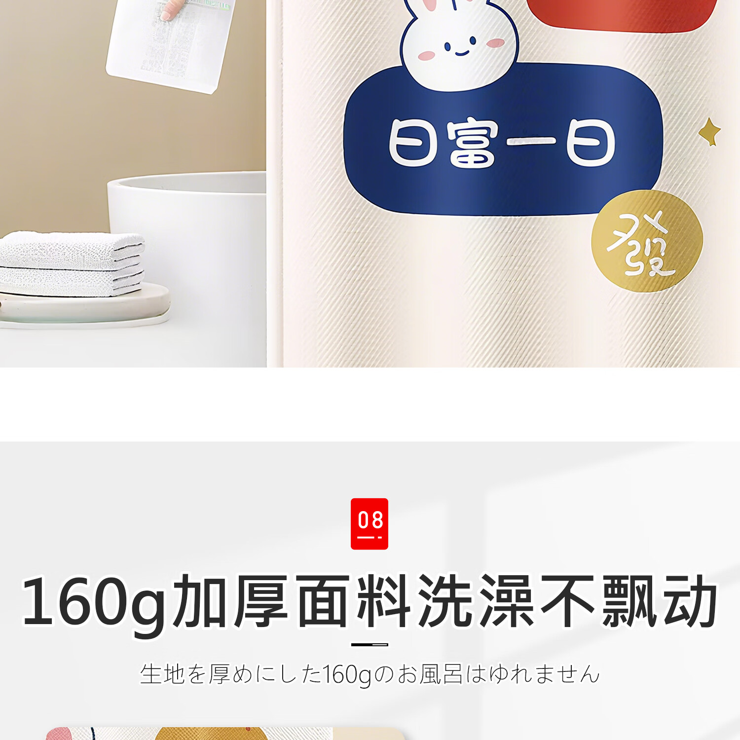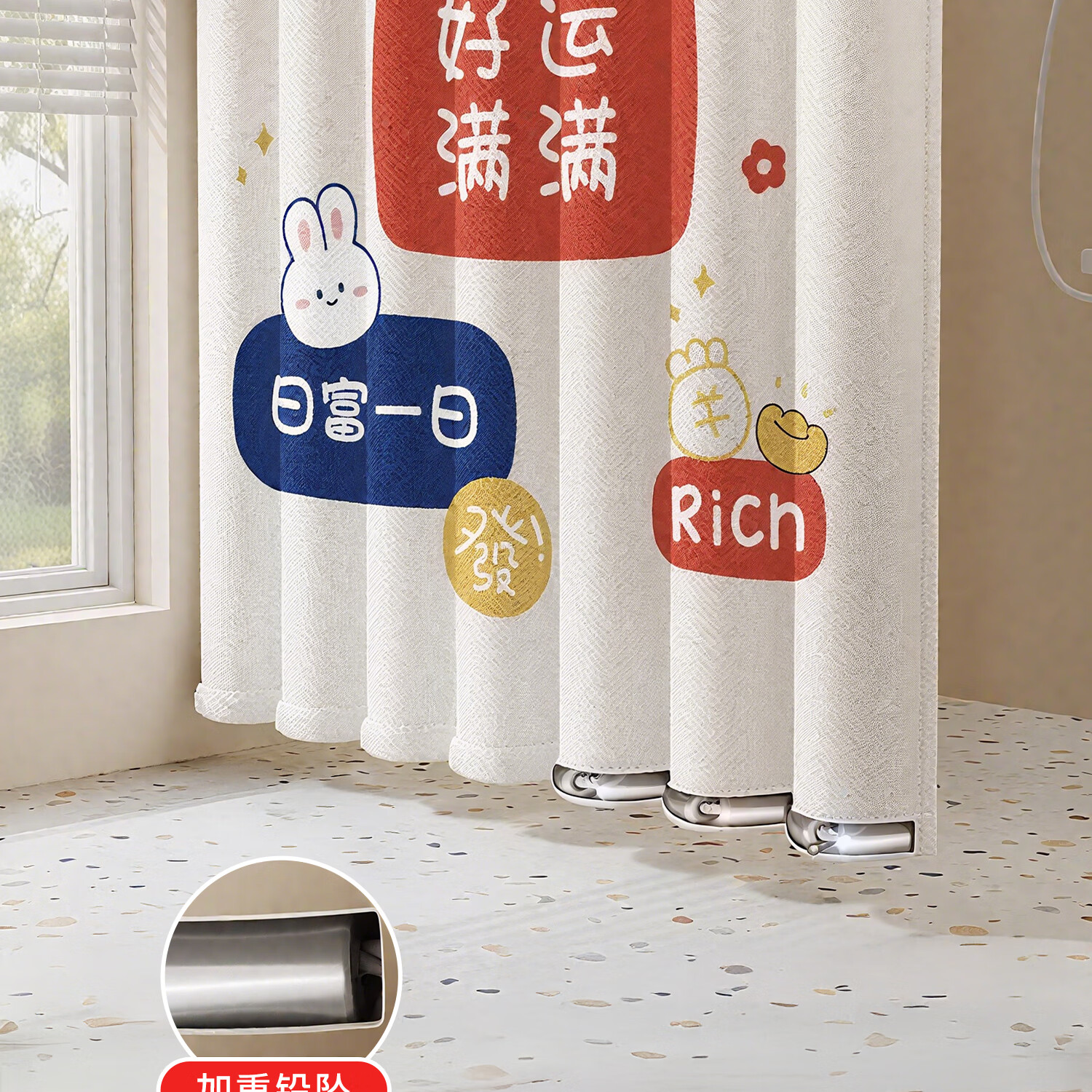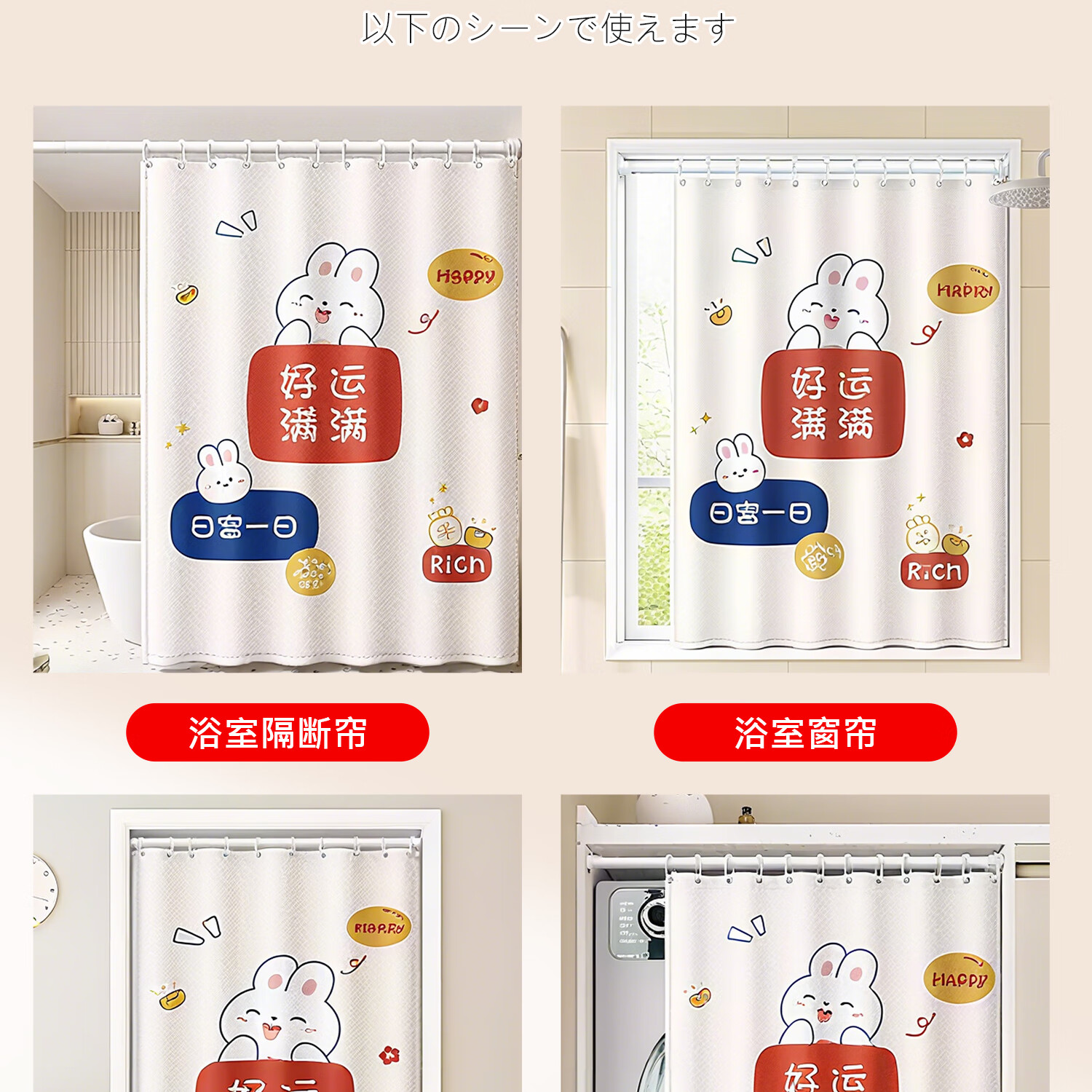 吱凡日本浴帘隔断帘防水高档卫生间干湿分离浴室洗澡防霉免打孔窗帘布 动物派对【160克加厚款】 【帘+杆】帘宽180x200+伸缩杆长110-200