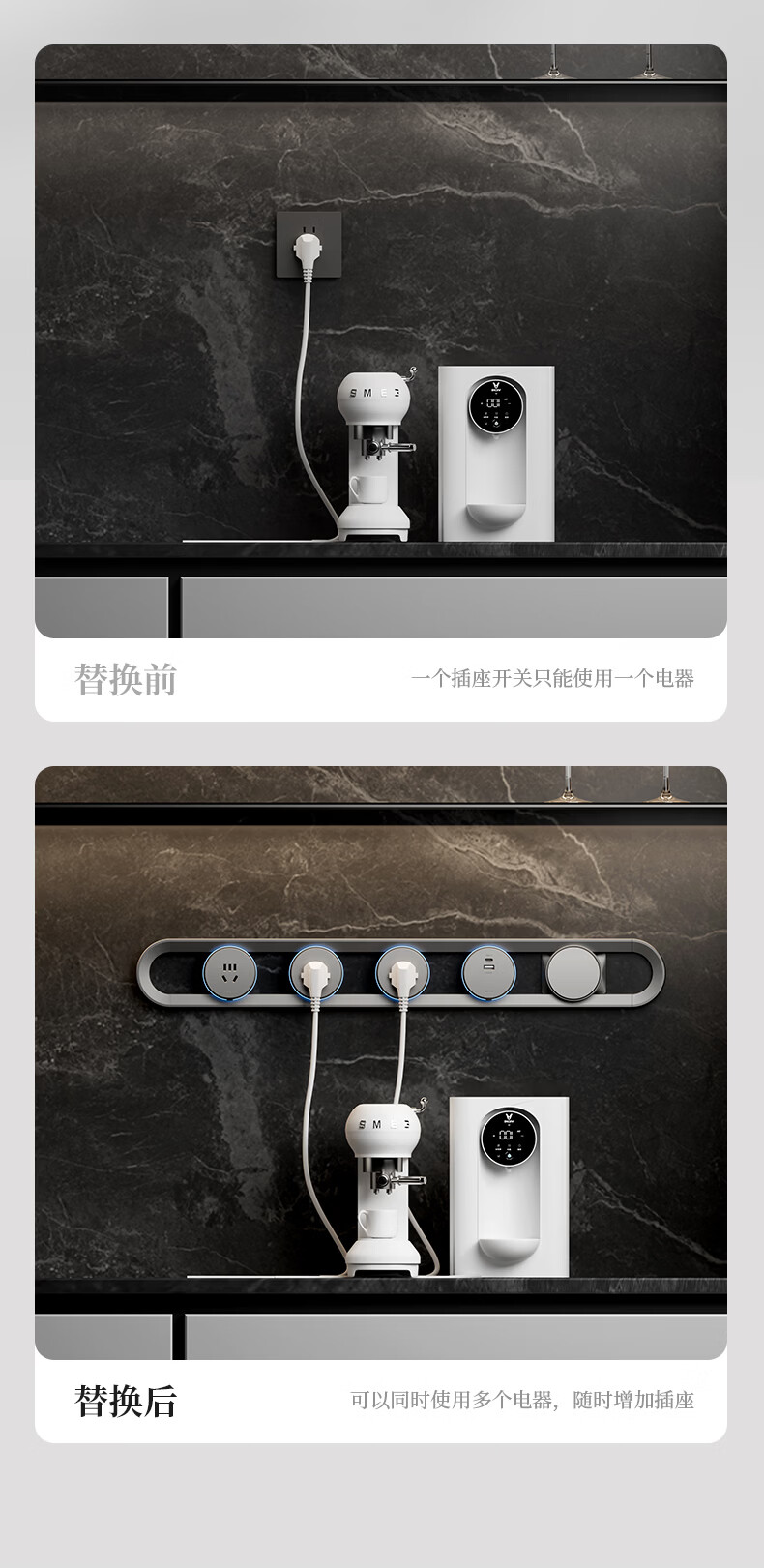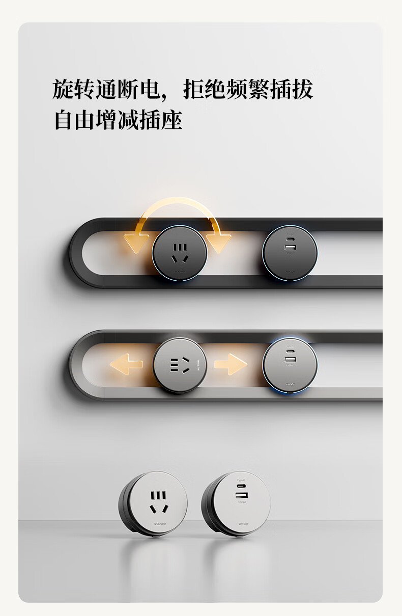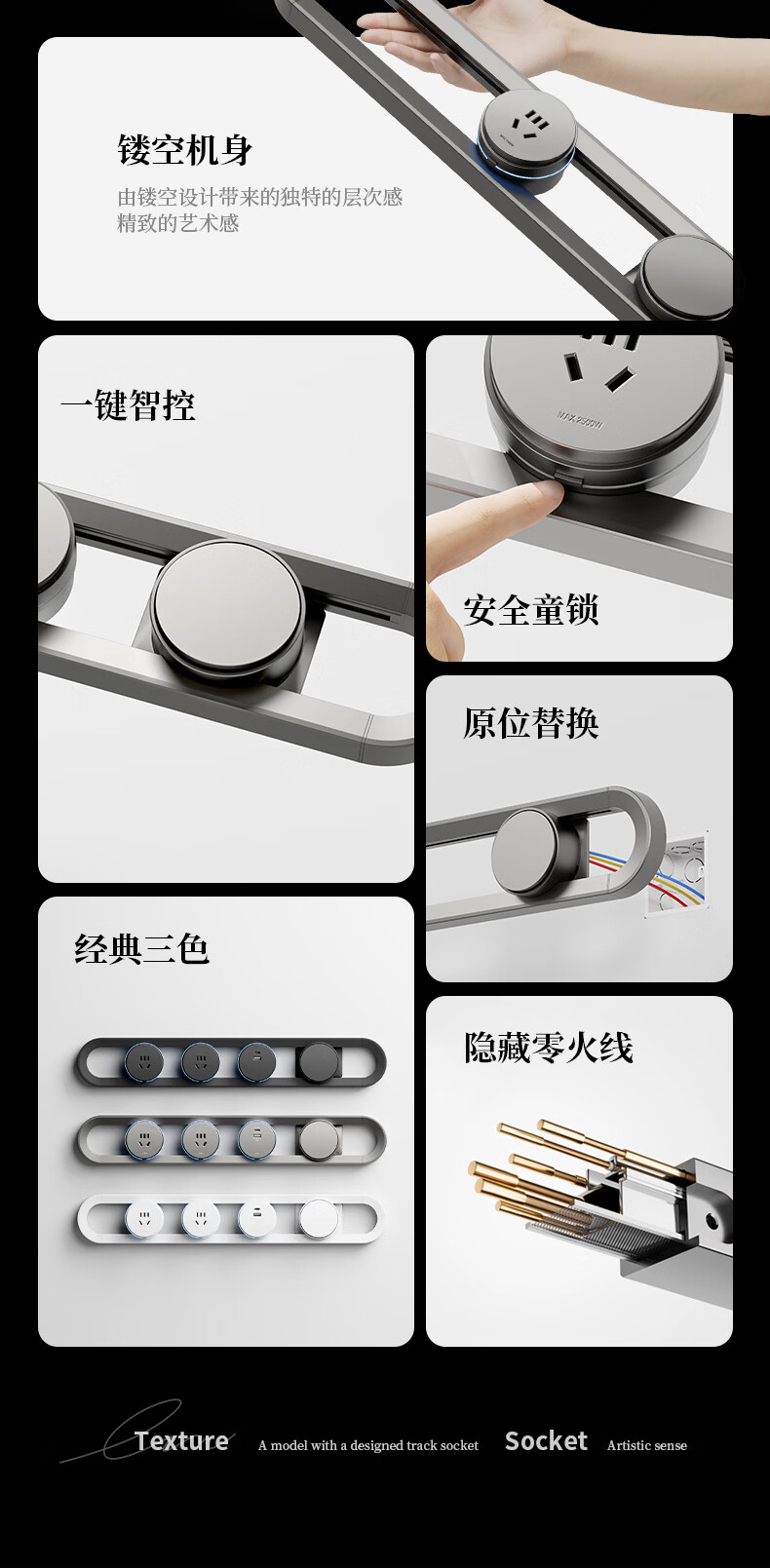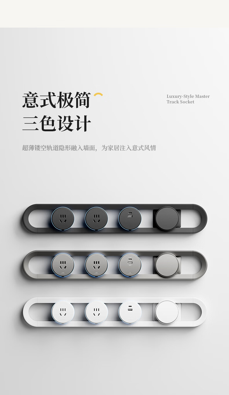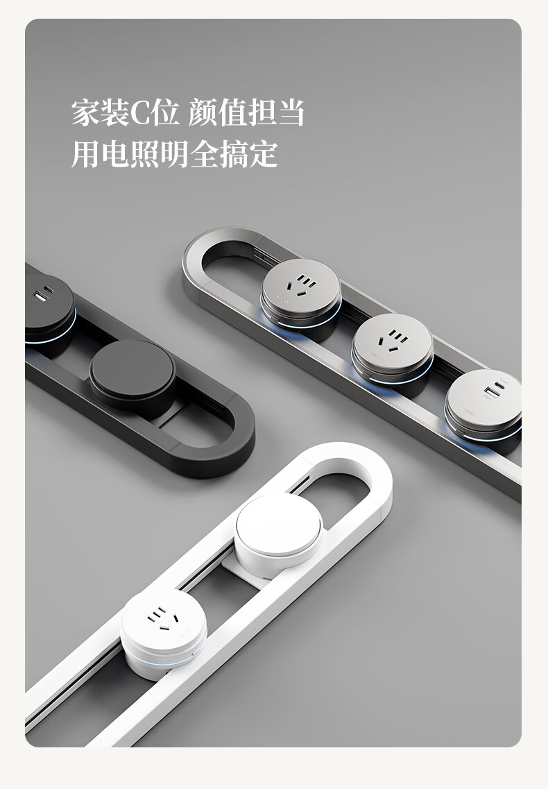 国际电工镂空轨道插座带开关移动轨道插排极简家用厨房餐边柜过载保护插板 灰色-单个USB/Type-C适配器