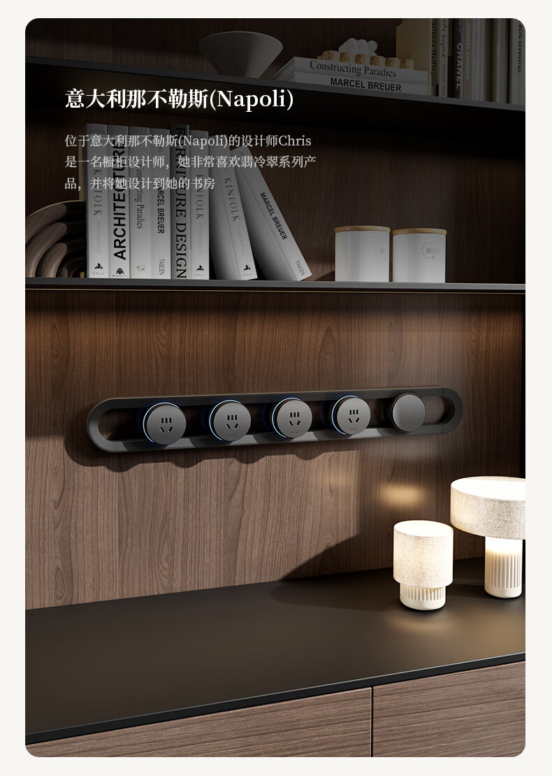 ABB开关插座面板 德典系列皓月灰 磨砂哑光奶油风 无边框 86型电源 斜五孔插座
