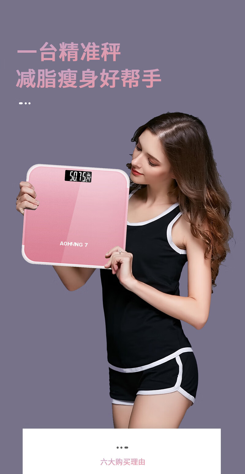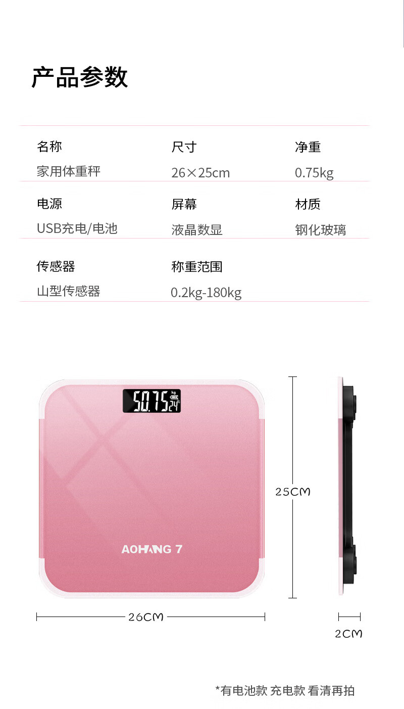 美极【厂家直供】家用体重秤精准称体重秤成人健康人体称重体重秤 26*26cm亮黑色7(1个装) 电池款