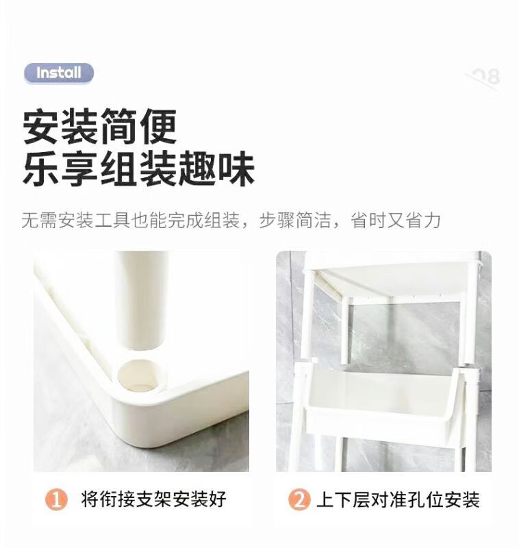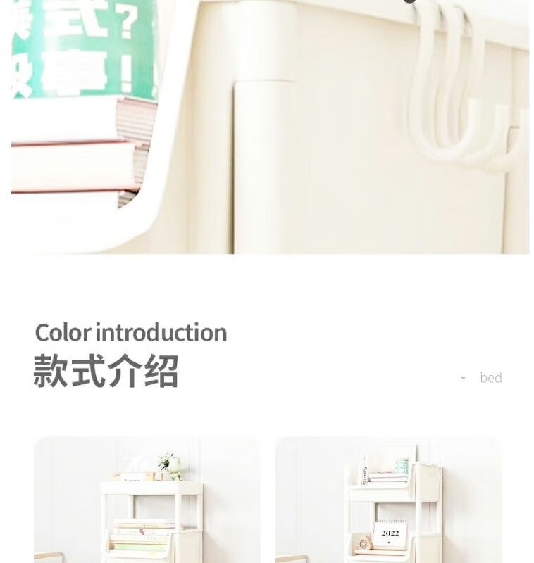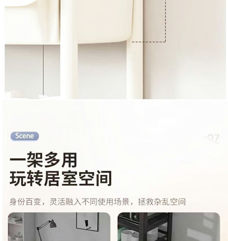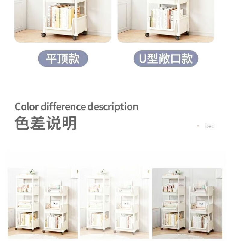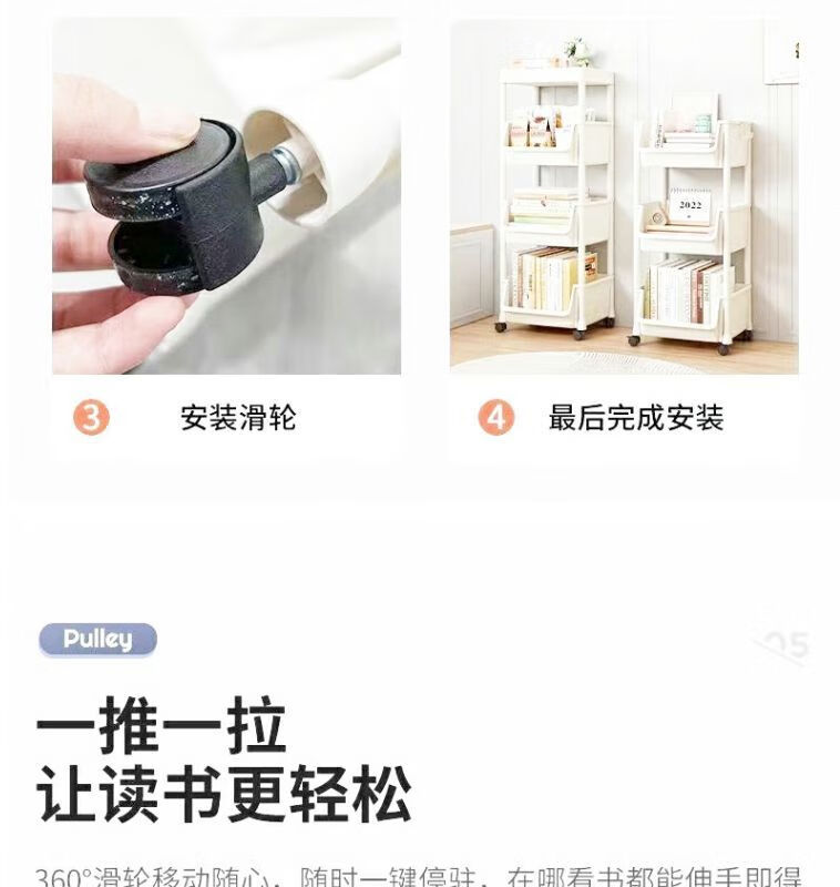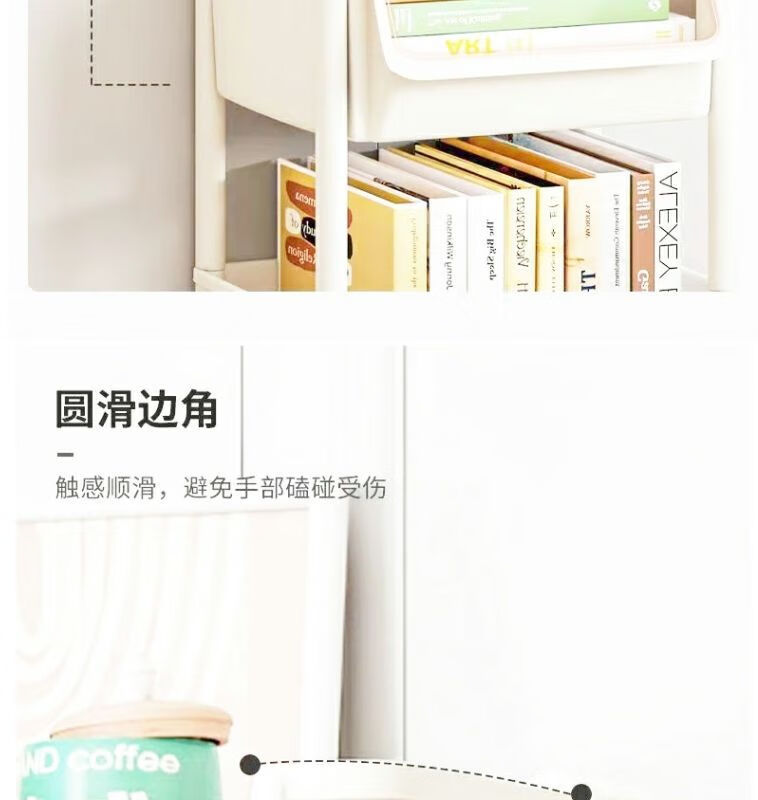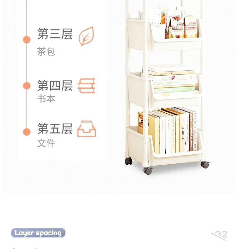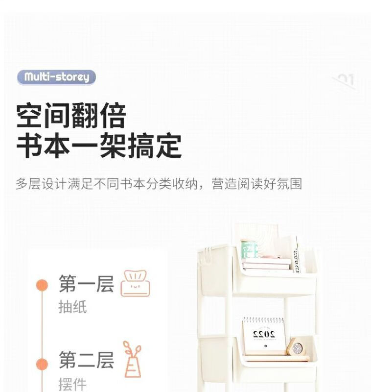 小推车置物架家用零食落地多层客厅收纳书架移动厨房果蔬菜篮架子 3层白-开口款【带挂钩+滑轮】 现货