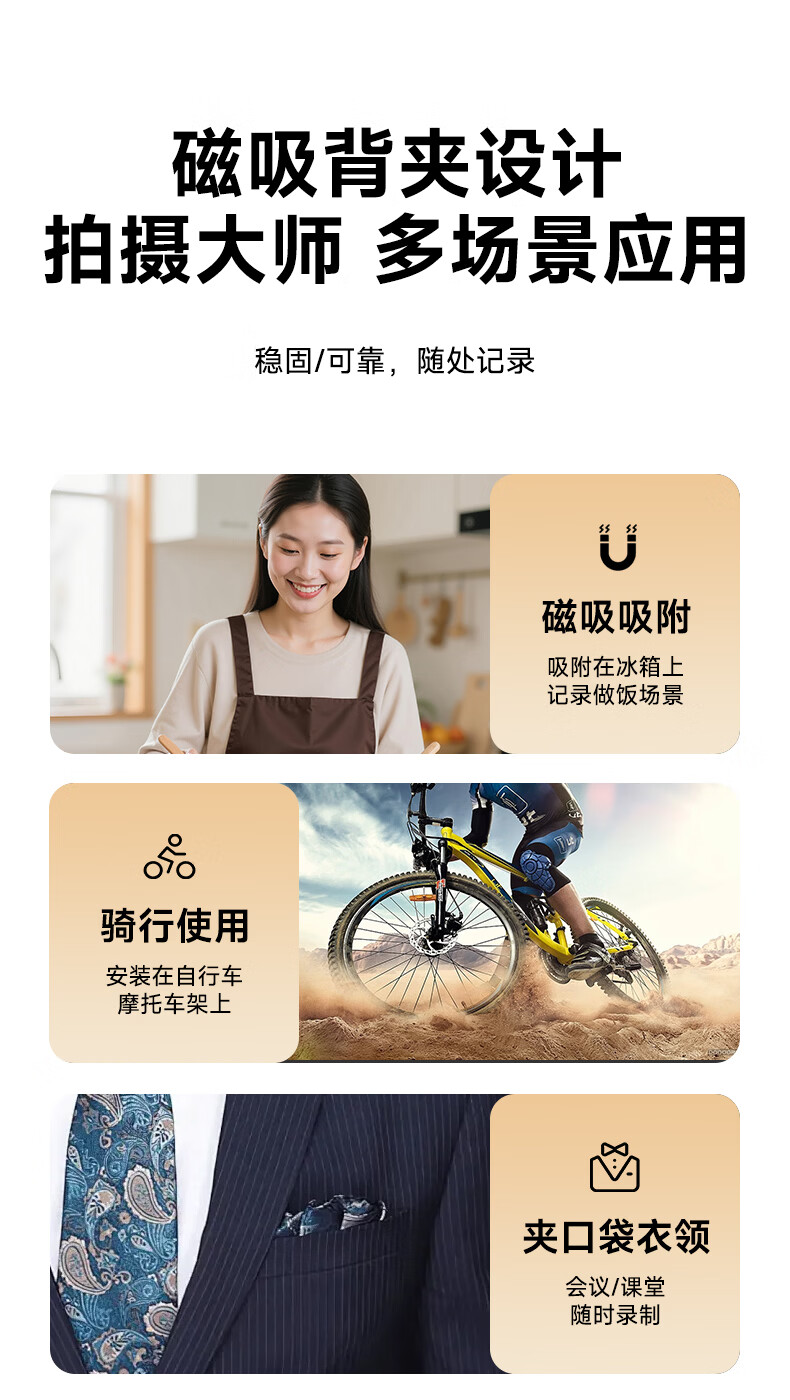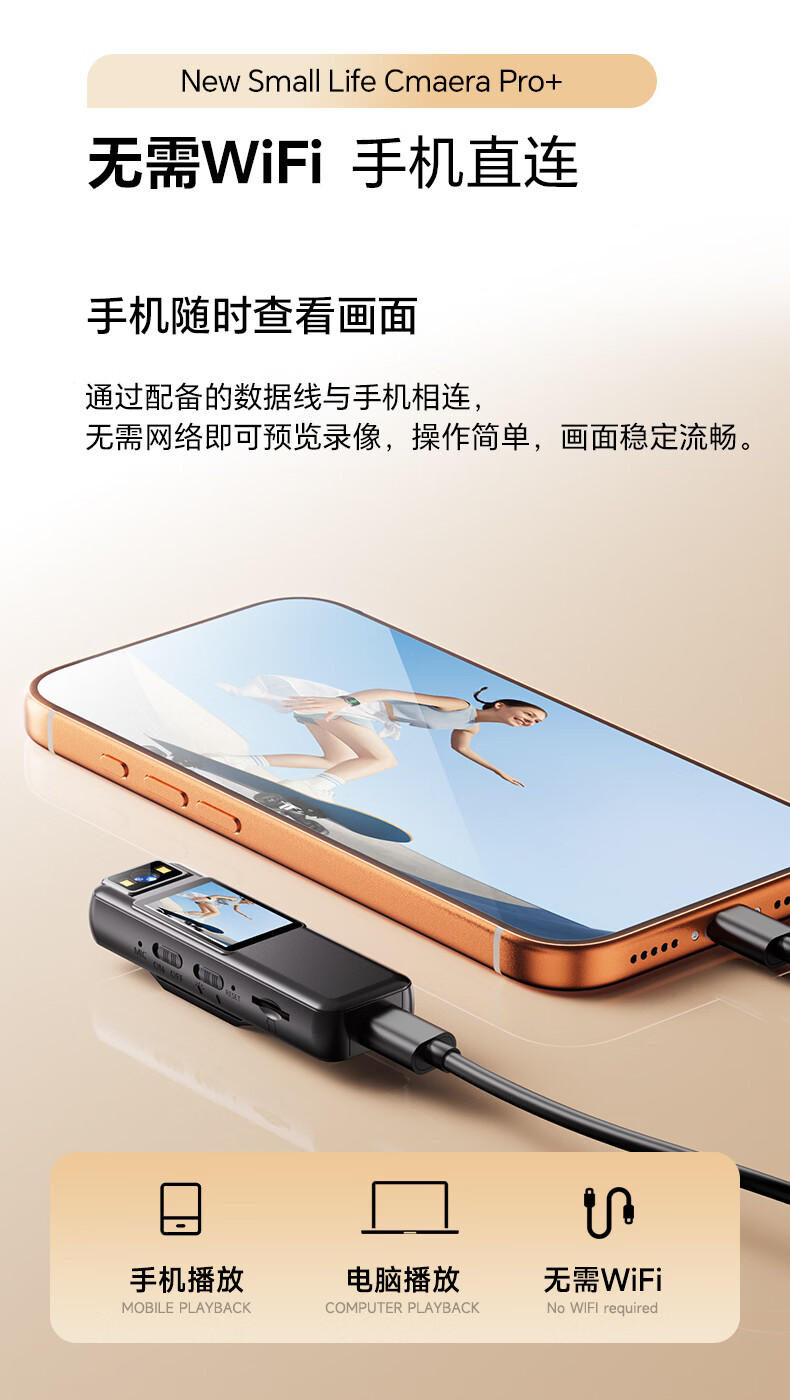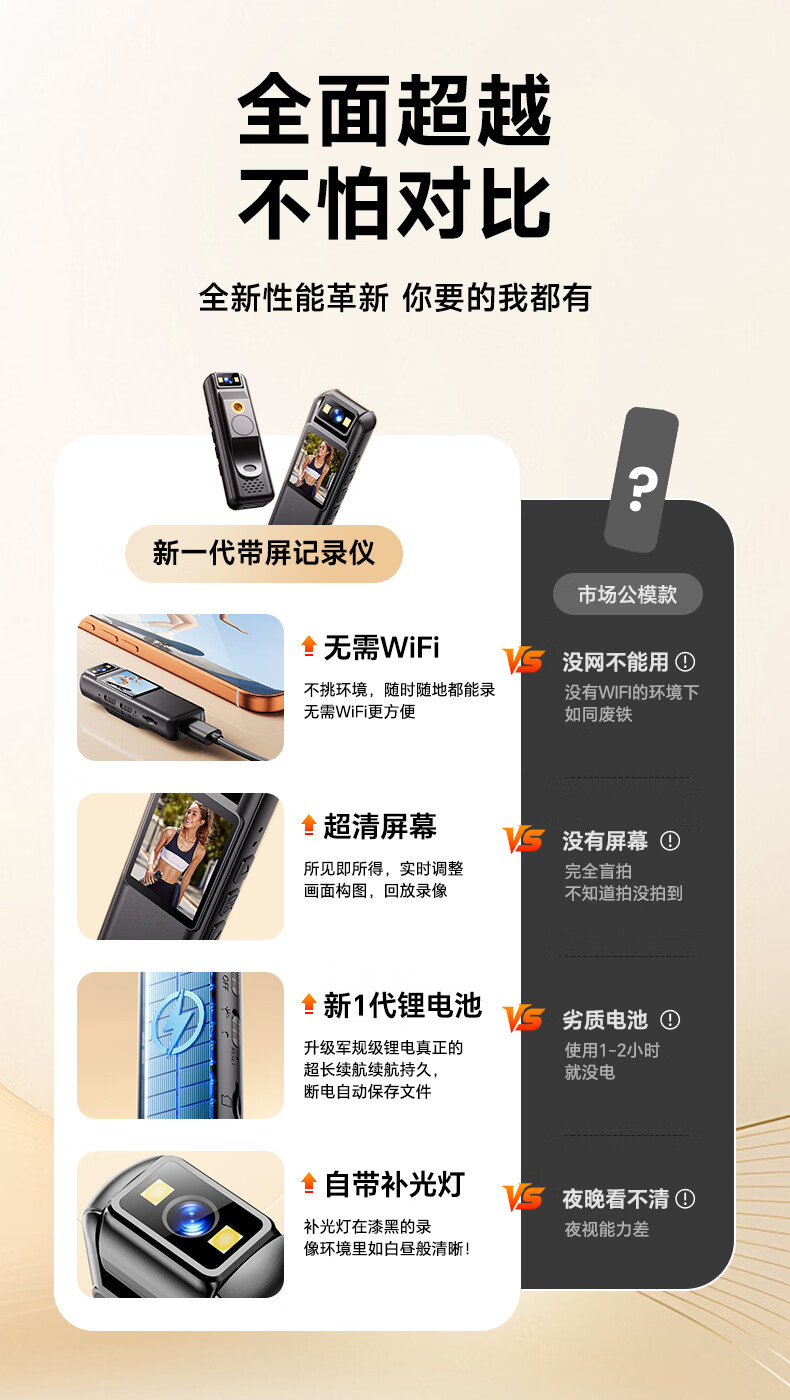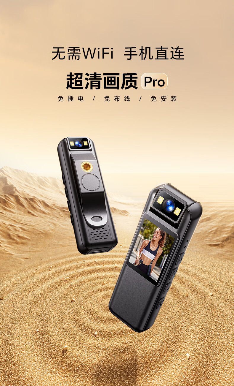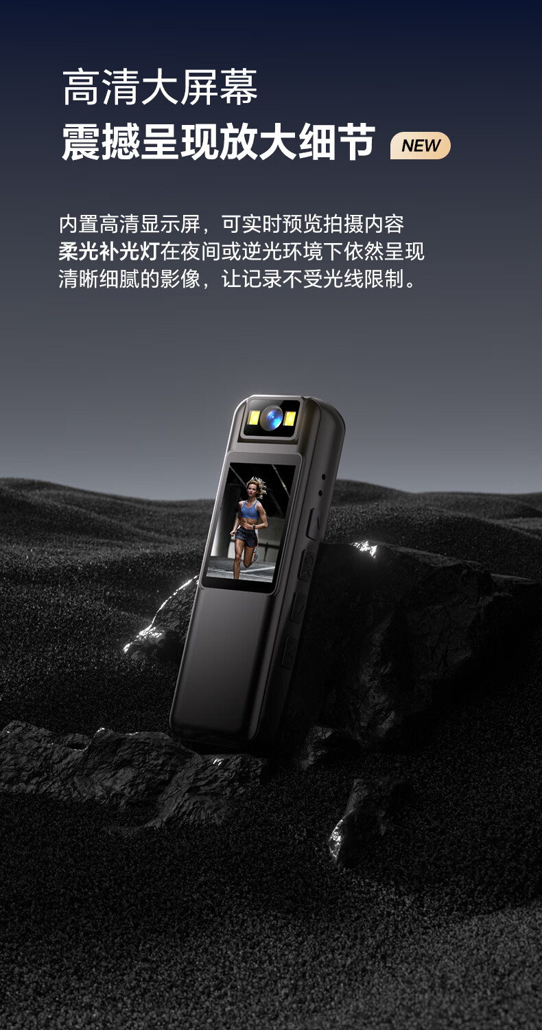 九目高清会议记录仪DV摄像机摄像头高清2K监控户外随身便携式录像机穿戴带屏监控录像 实时大屏播放+手机互连+行车支架 64GB卡
