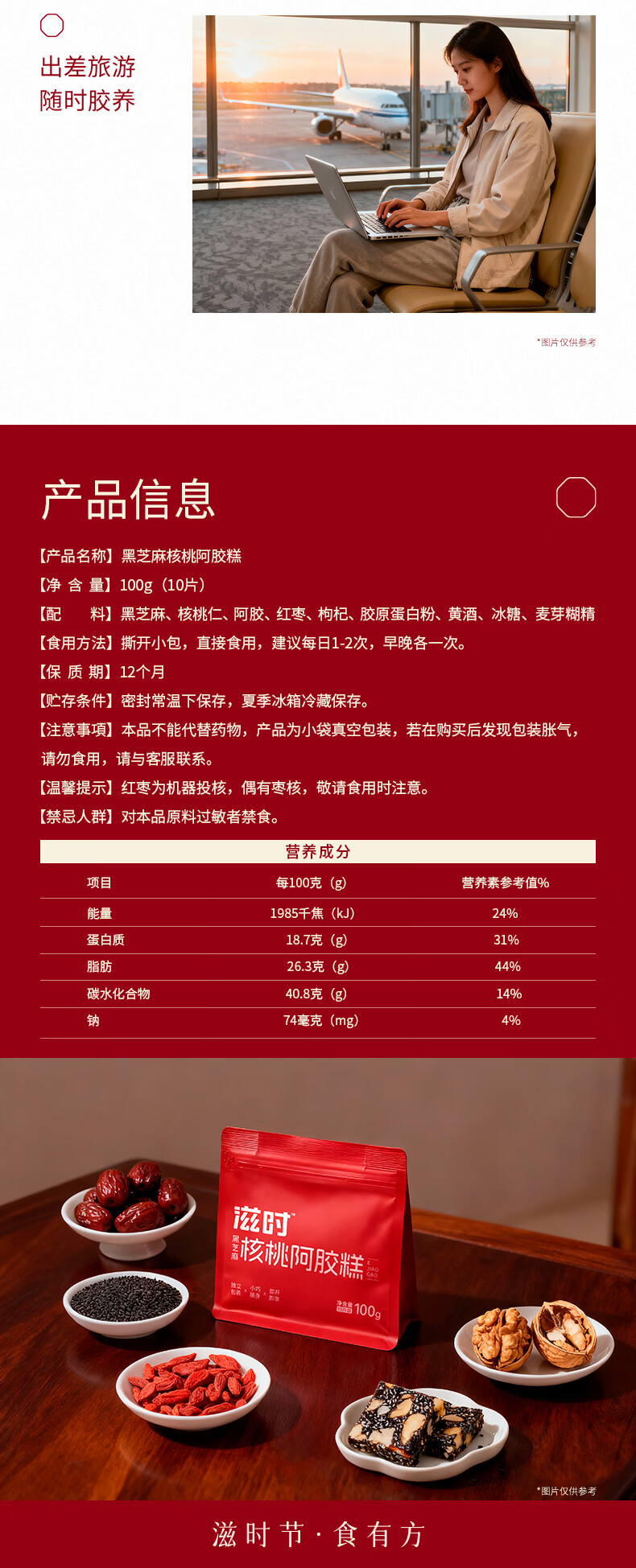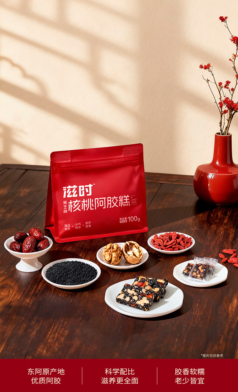 滋时黑芝麻核桃阿胶糕 补气血营养品 滋补阿胶糕食品阿胶块滋补品 鲜炖阿胶 30g*10瓶 (礼盒装)