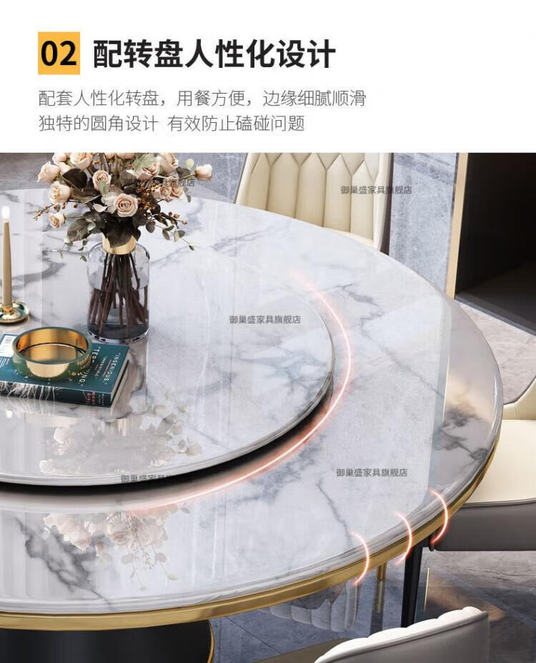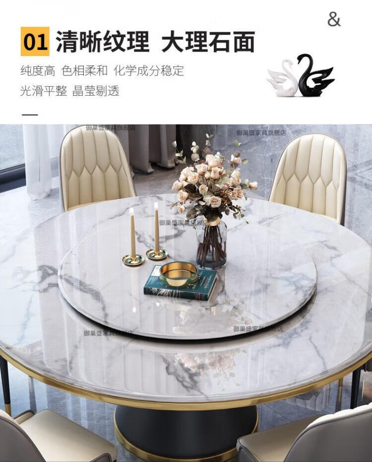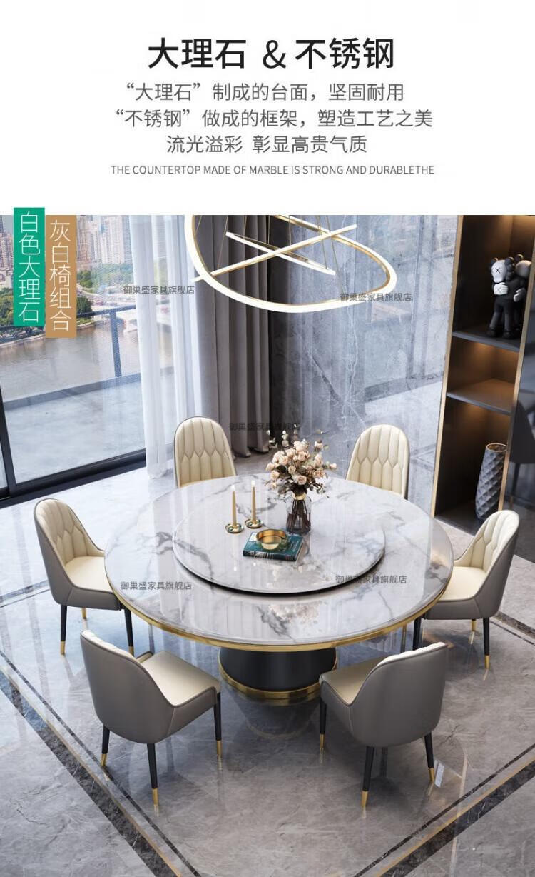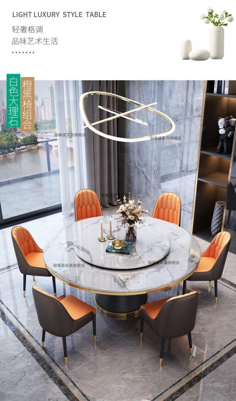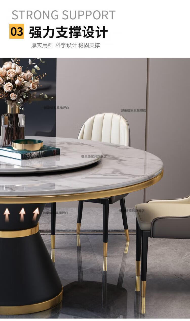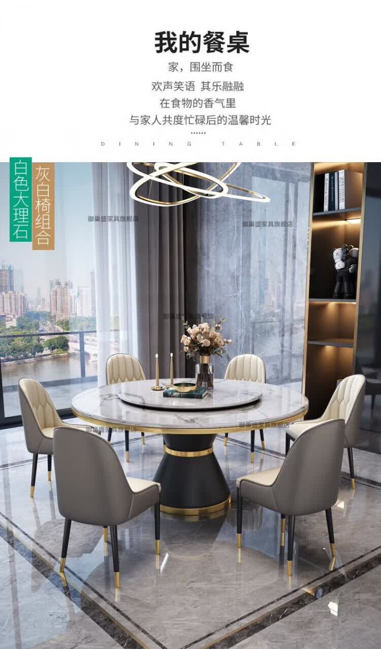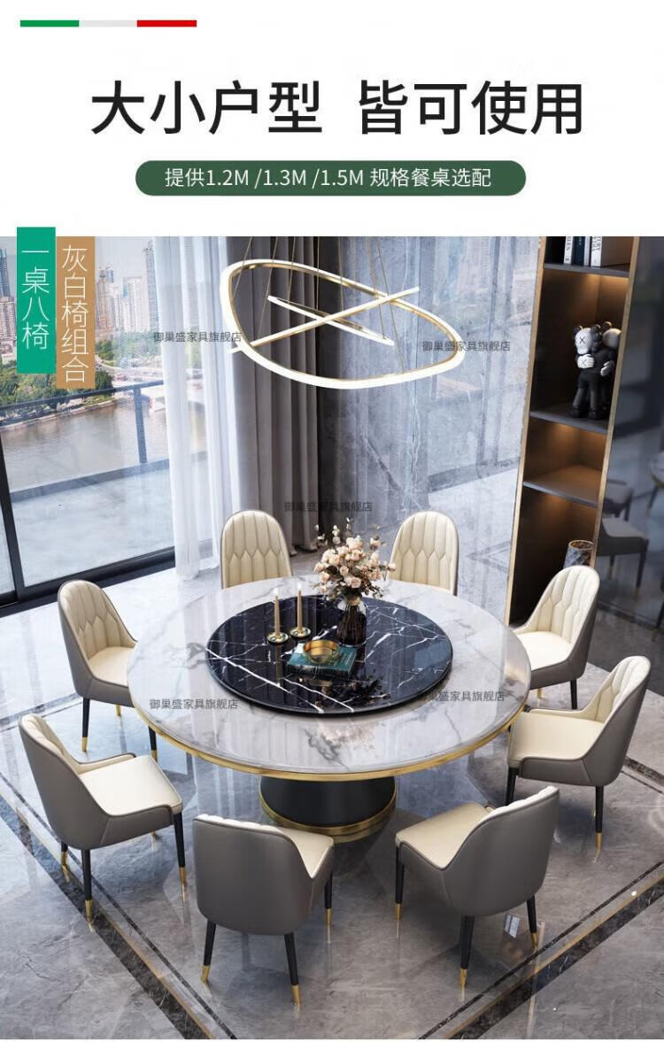 御巢盛2026新款大理石餐桌椅组合圆桌现代轻奢简约圆形家用小户型带转盘 轻奢大理石【带金圈】 1.2m +4椅【送转盘 包送装】