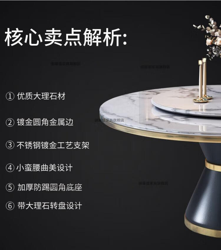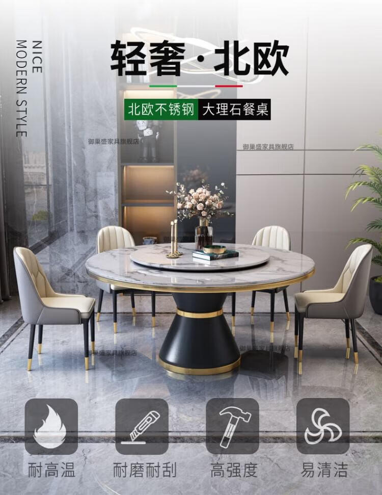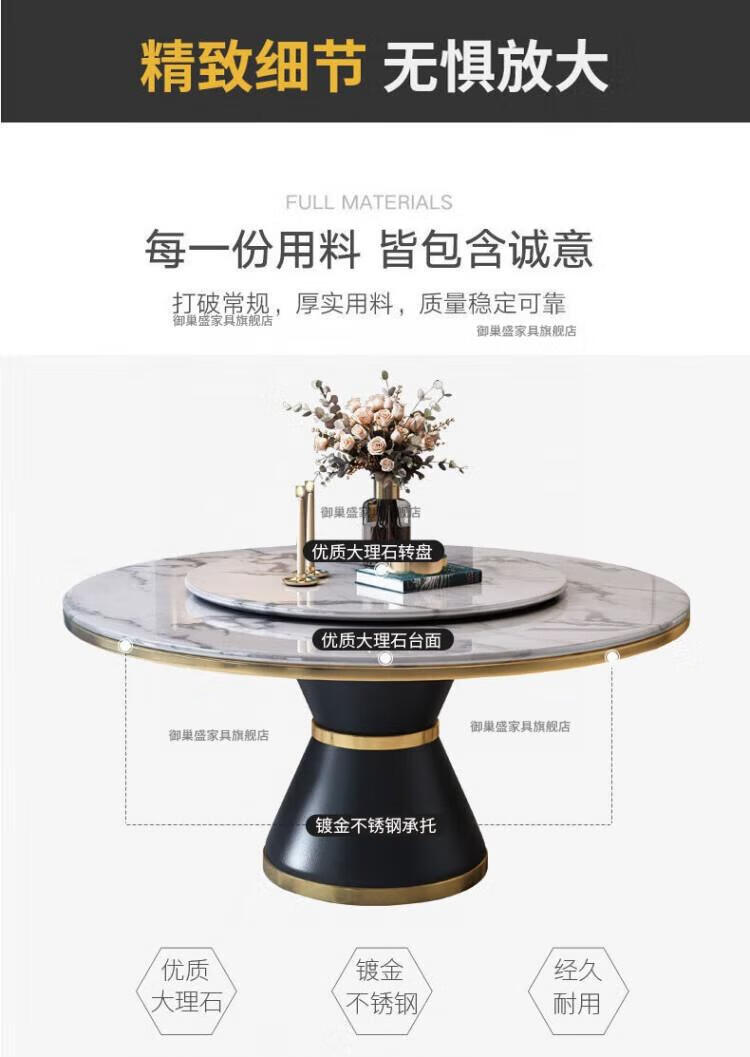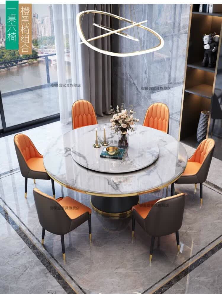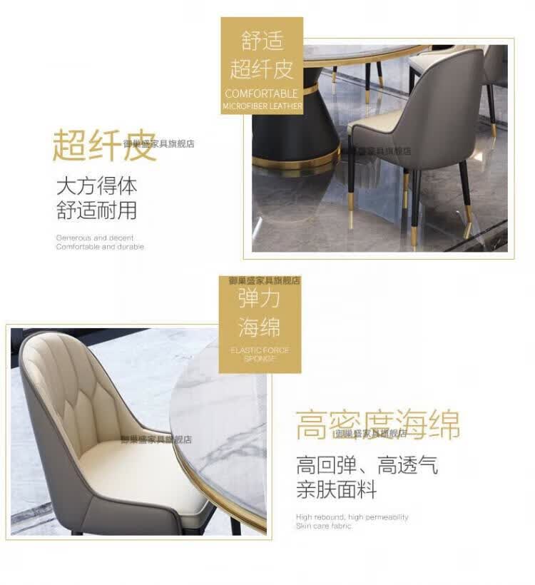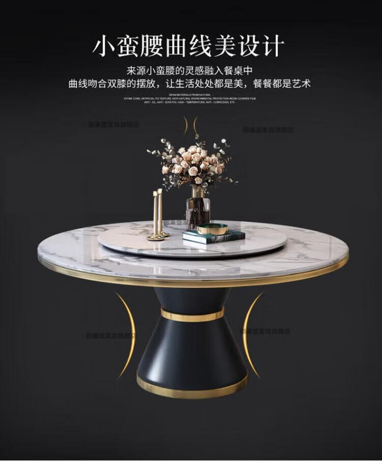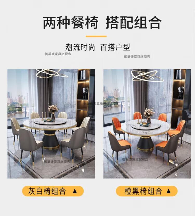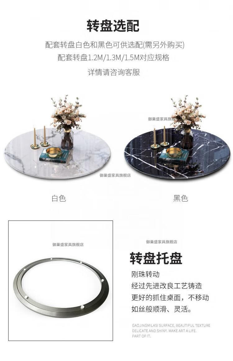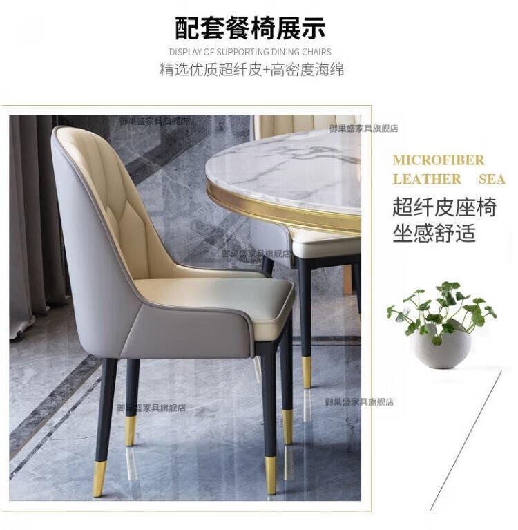御巢盛2026新款大理石餐桌椅组合圆桌现代轻奢简约圆形家用小户型带转盘 轻奢大理石【带金圈】 1.2m +4椅【送转盘 包送装】