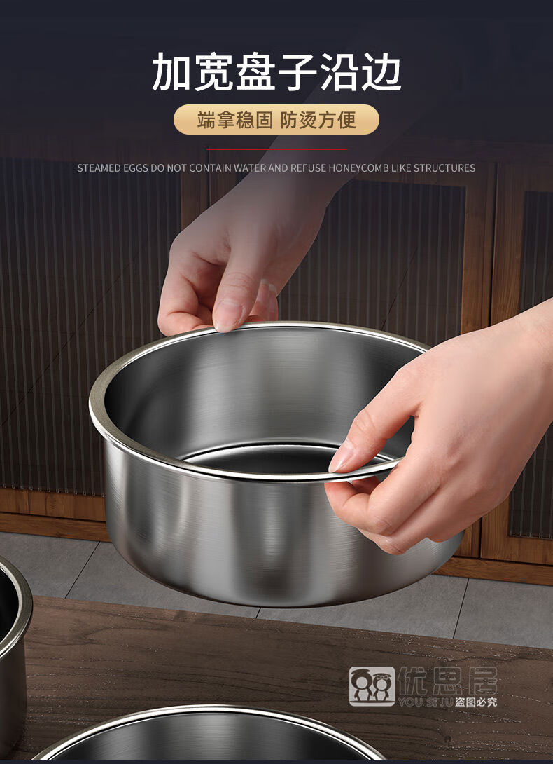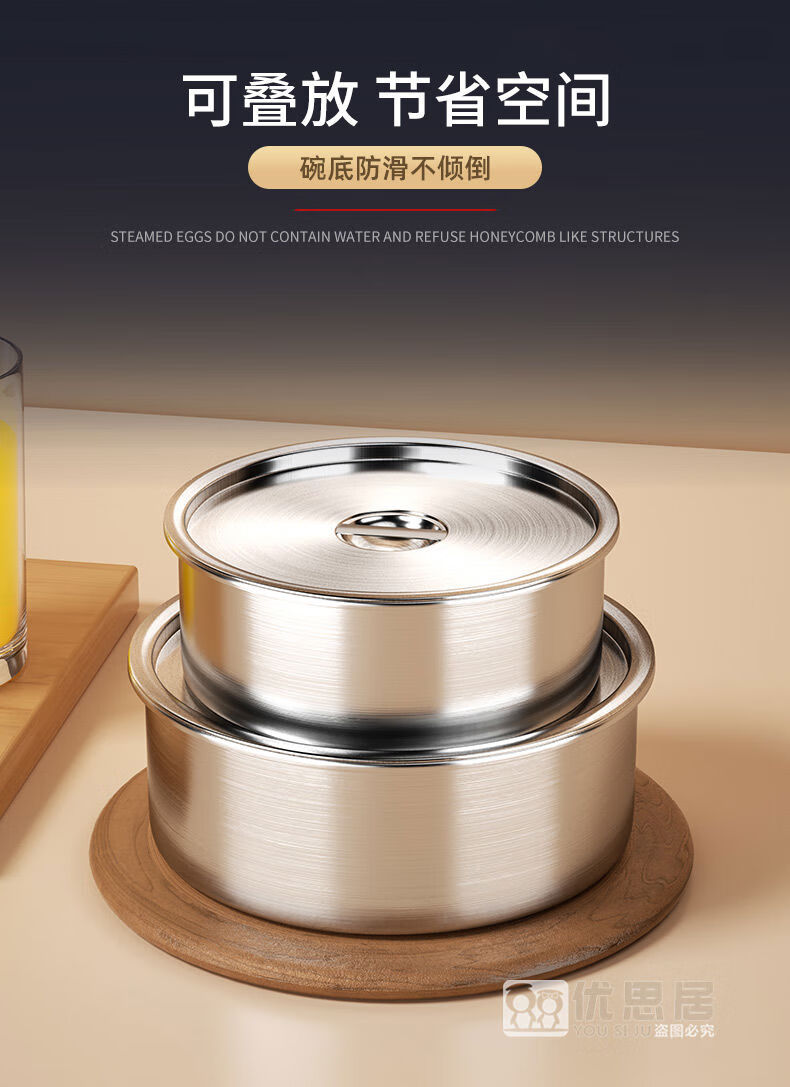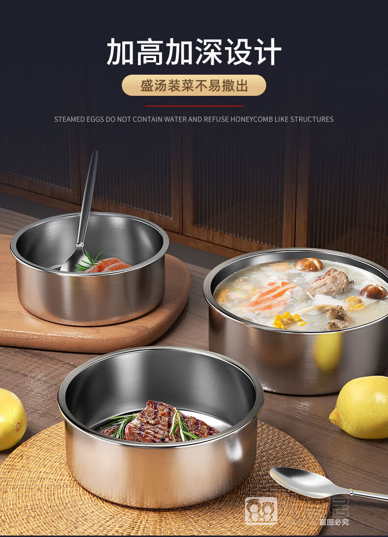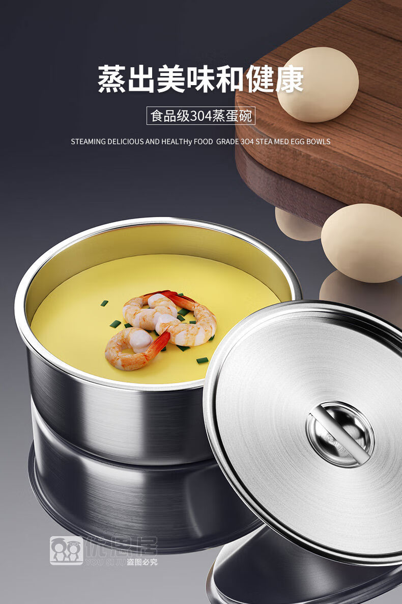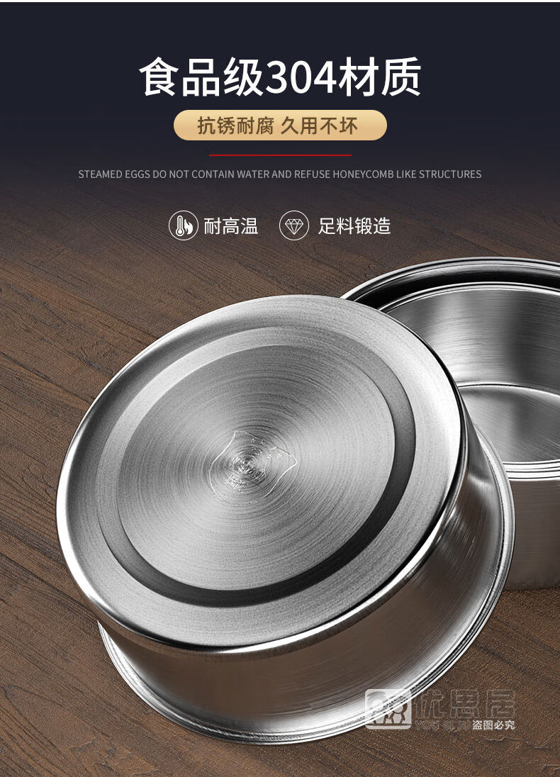 溥畔鸡蛋羹专用蒸蛋碗不锈钢蒸菜带盖炖盅耐高温婴儿蒸碗 中号+大号2个装带盖