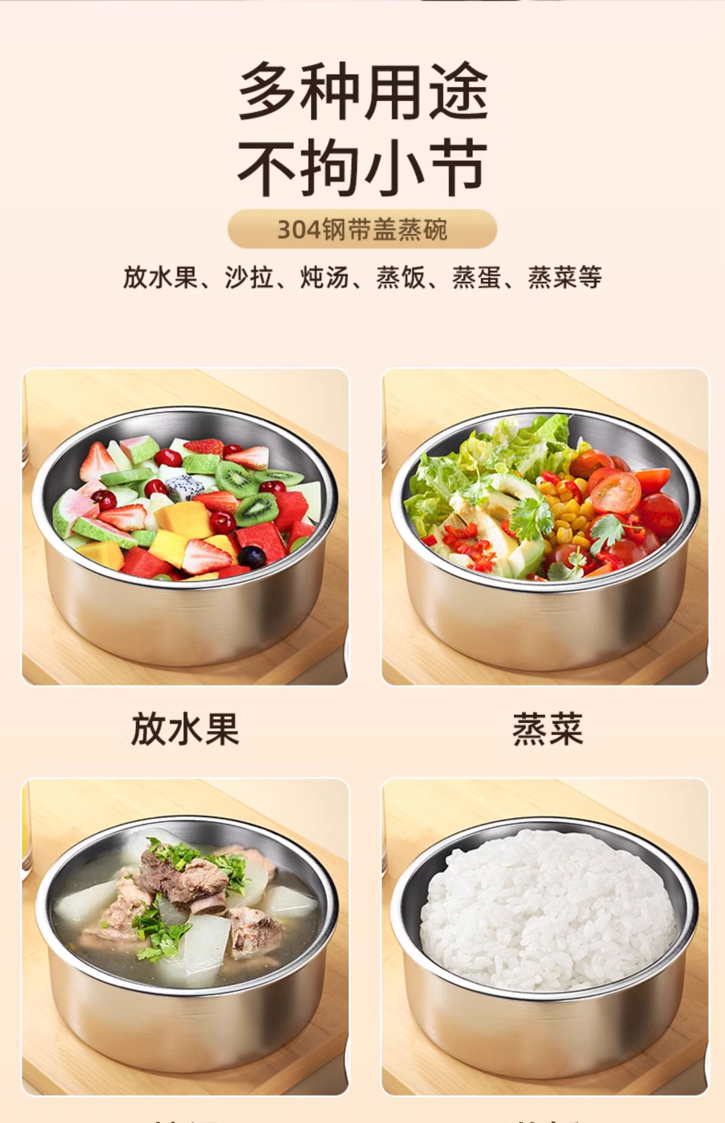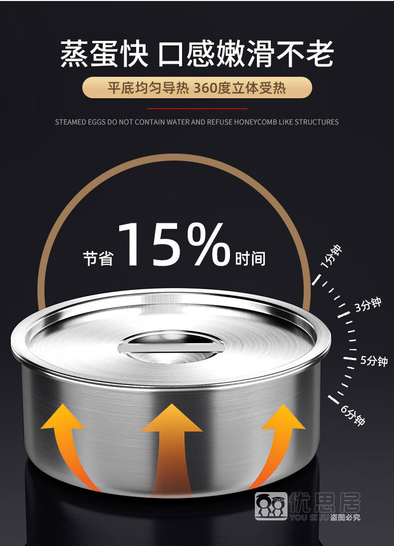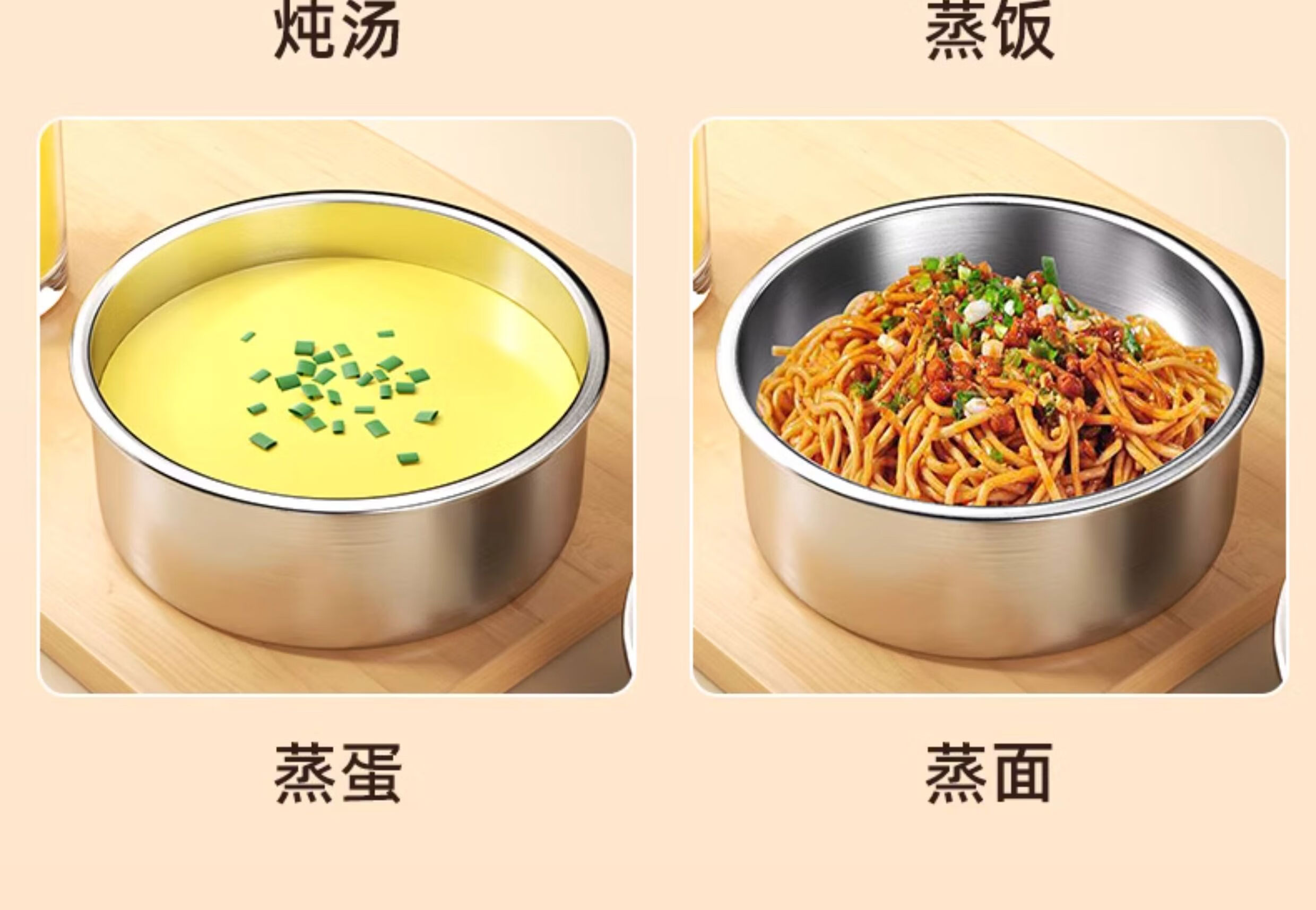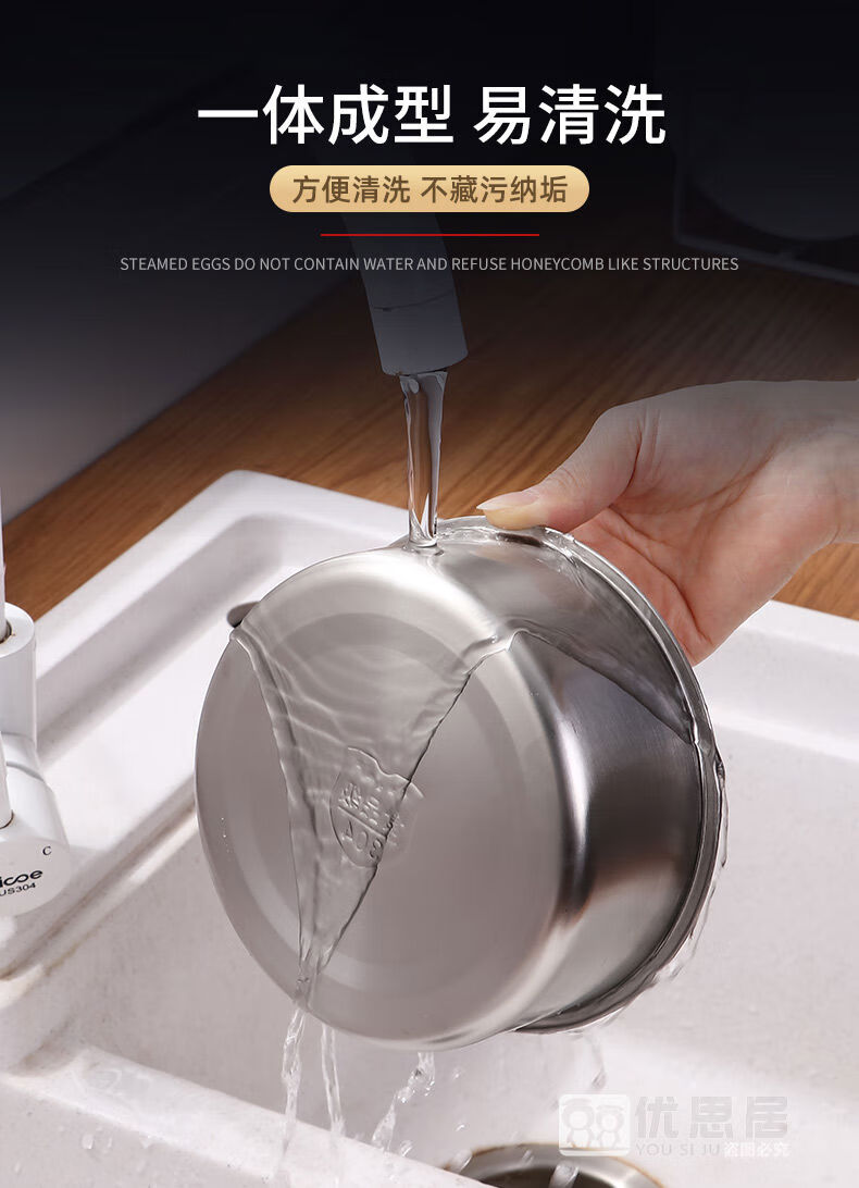 溥畔鸡蛋羹专用蒸蛋碗不锈钢蒸菜带盖炖盅耐高温婴儿蒸碗 中号+大号2个装带盖