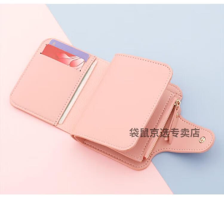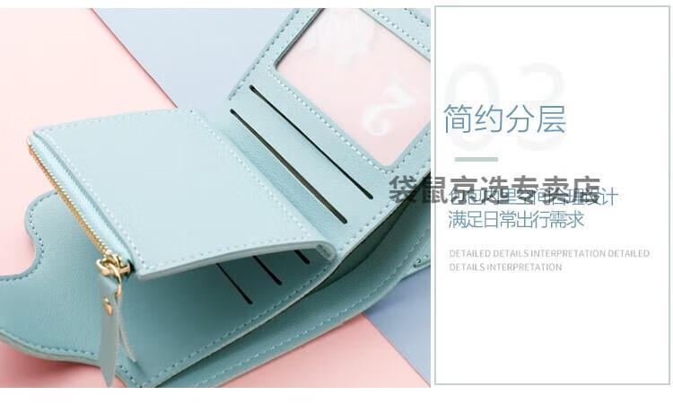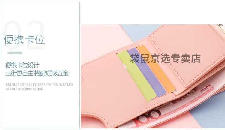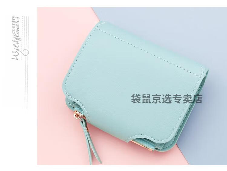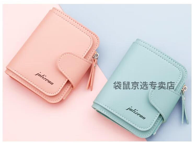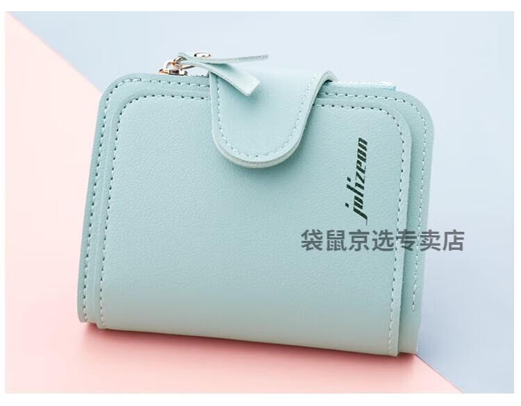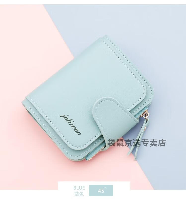 袋鼠轻奢品牌小钱包女简约短款女士小巧钱夹三折折叠多功能时尚竖款皮 073短款蓝色 8卡位1拉链1钞位