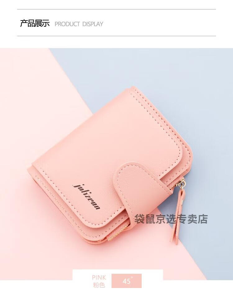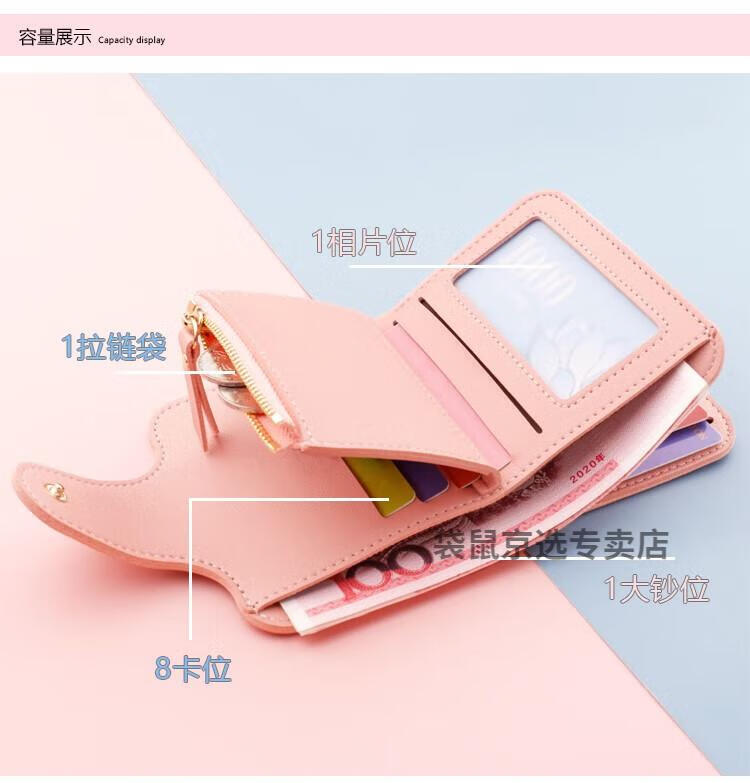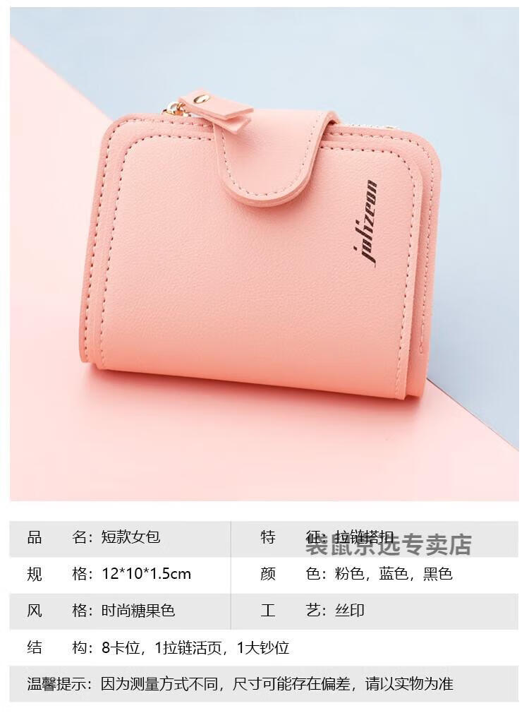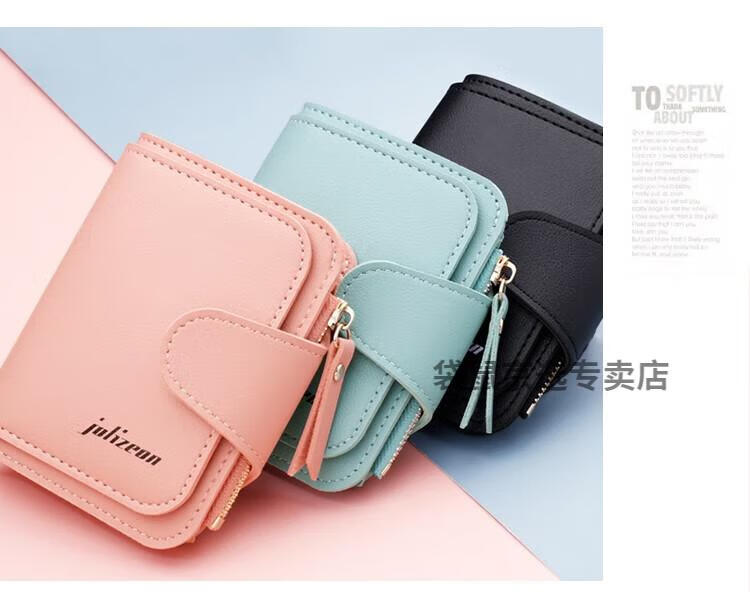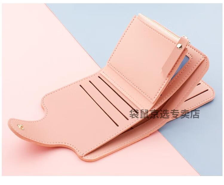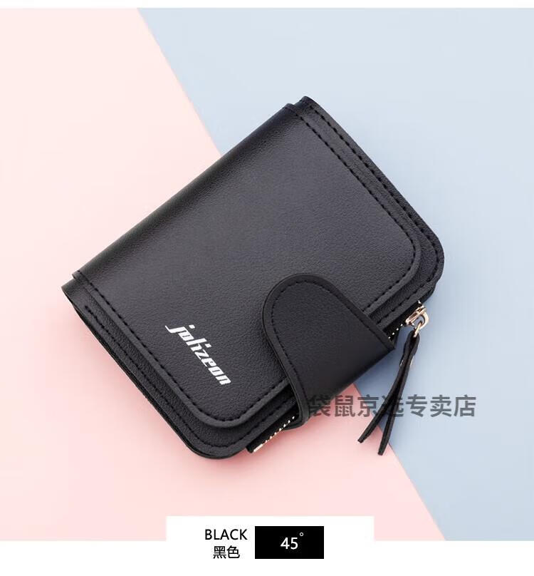 袋鼠轻奢品牌小钱包女简约短款女士小巧钱夹三折折叠多功能时尚竖款皮 073短款蓝色 8卡位1拉链1钞位