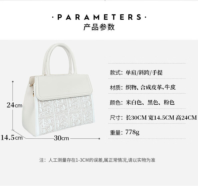 迪兰达尔【跨年礼物 送女友】刺绣轻奢原创设计气质斜挎手提女包x 黑色