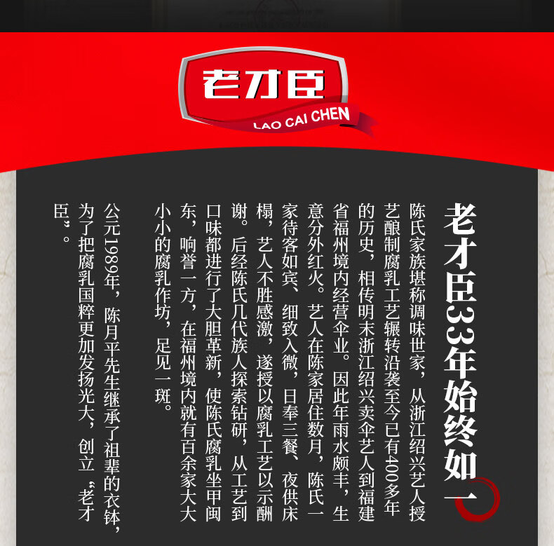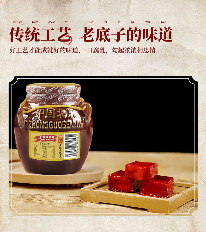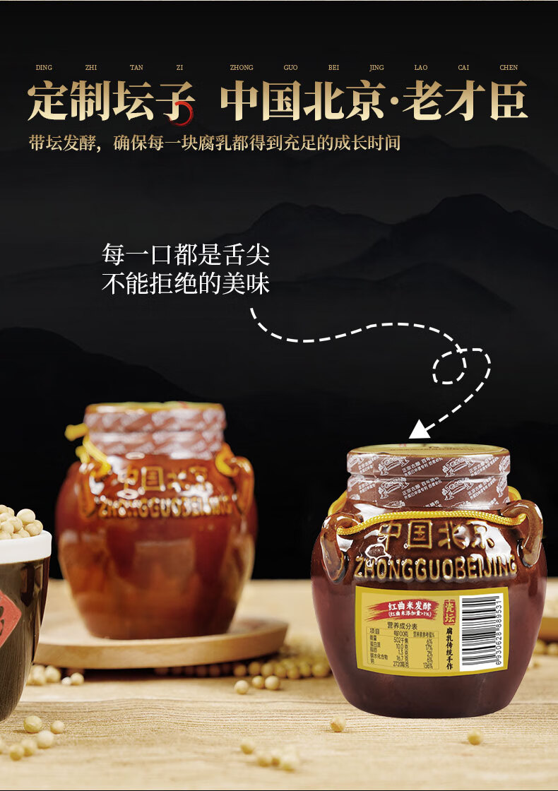 老才臣 酱豆腐350g乳瓷坛装 原味红腐乳 下饭菜佐餐 红腐乳350g*3坛