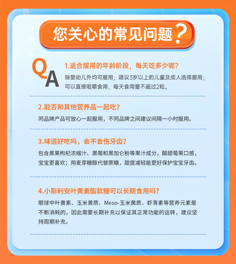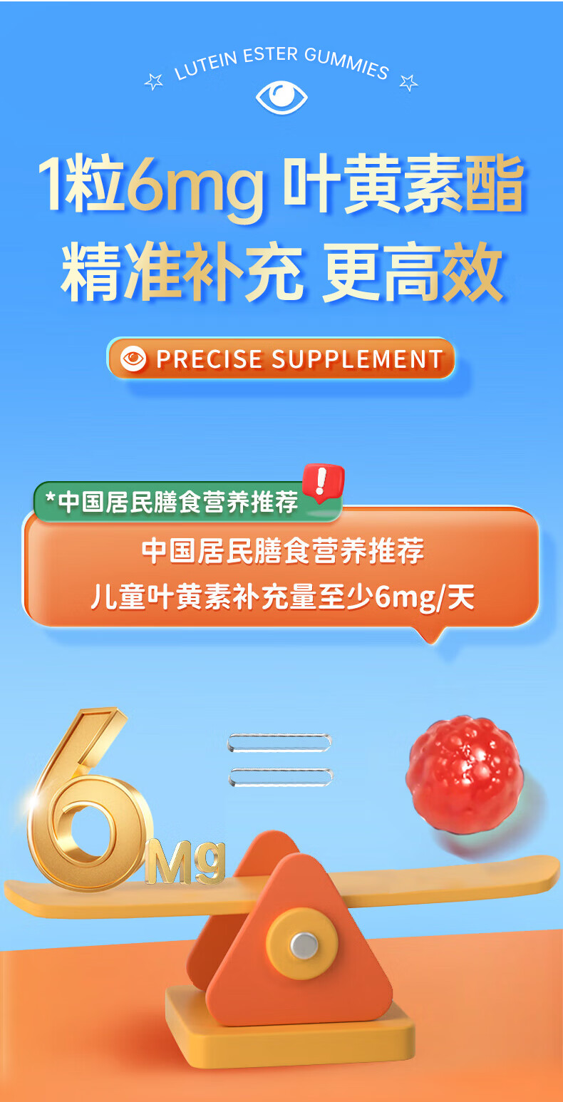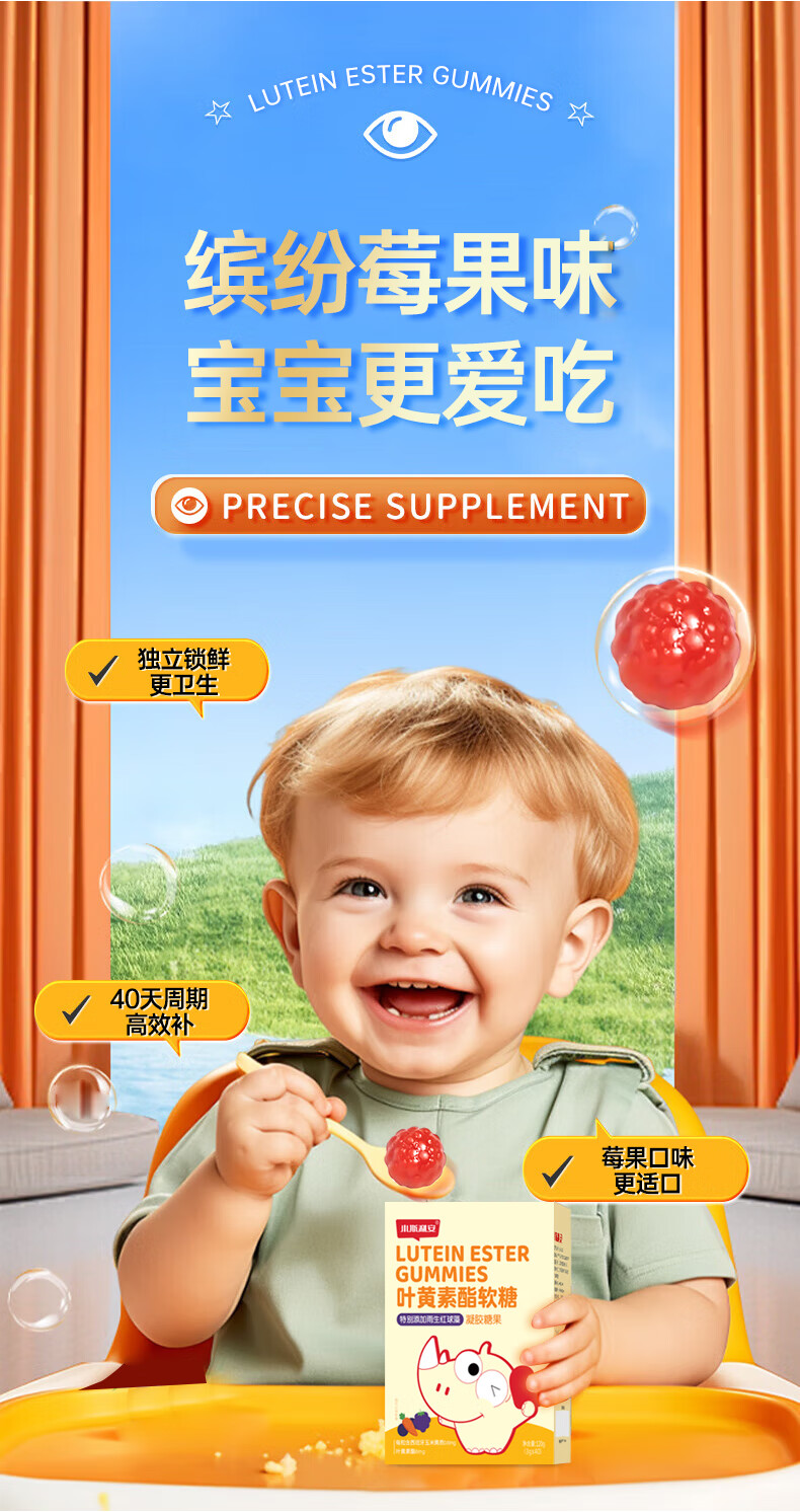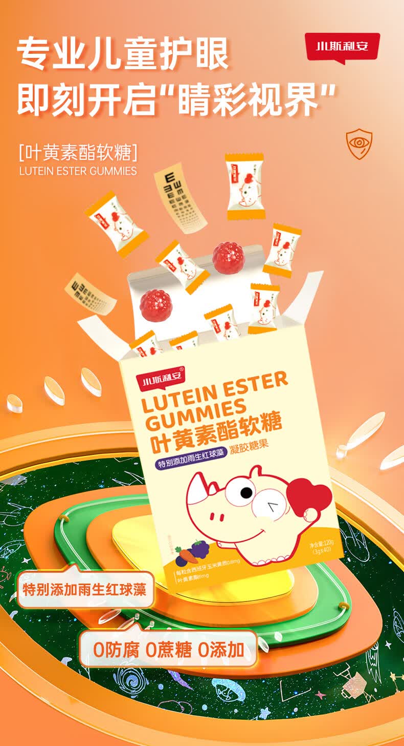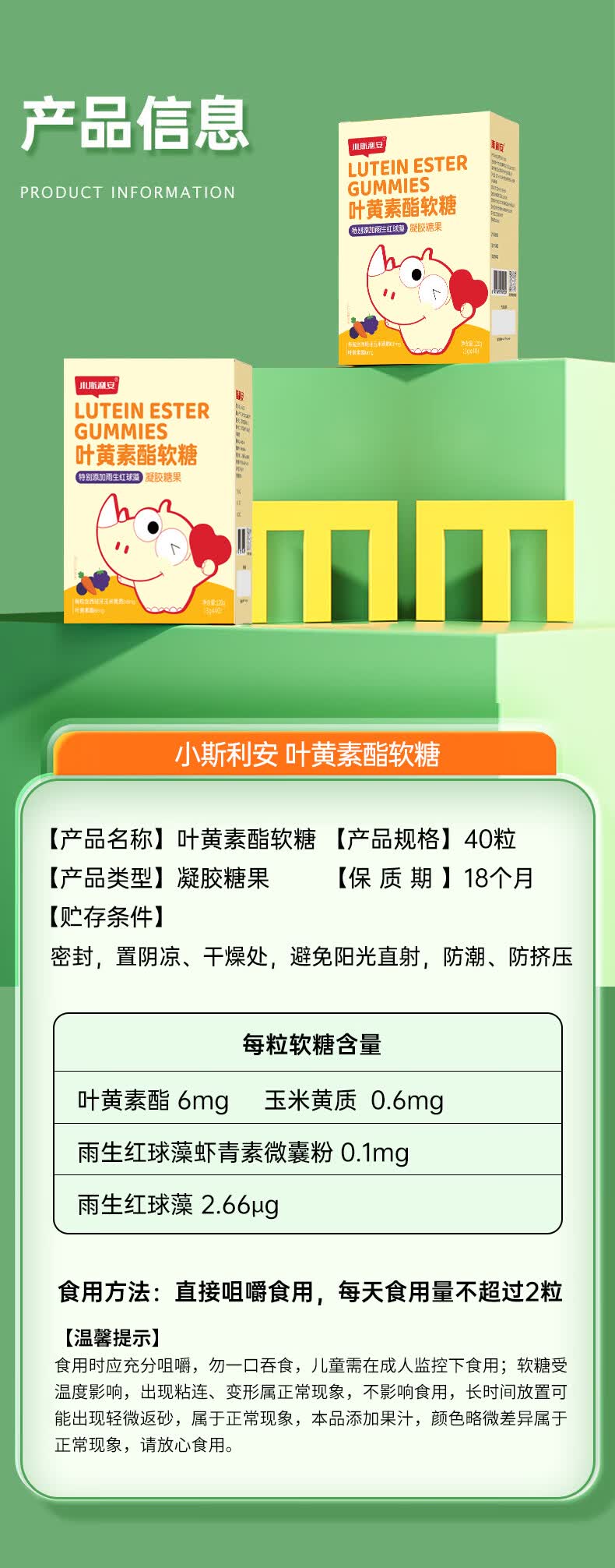 斯利安叶黄素儿童保护视力青少年学生护眼莓果味叶黄素软糖5:1专利 40粒
