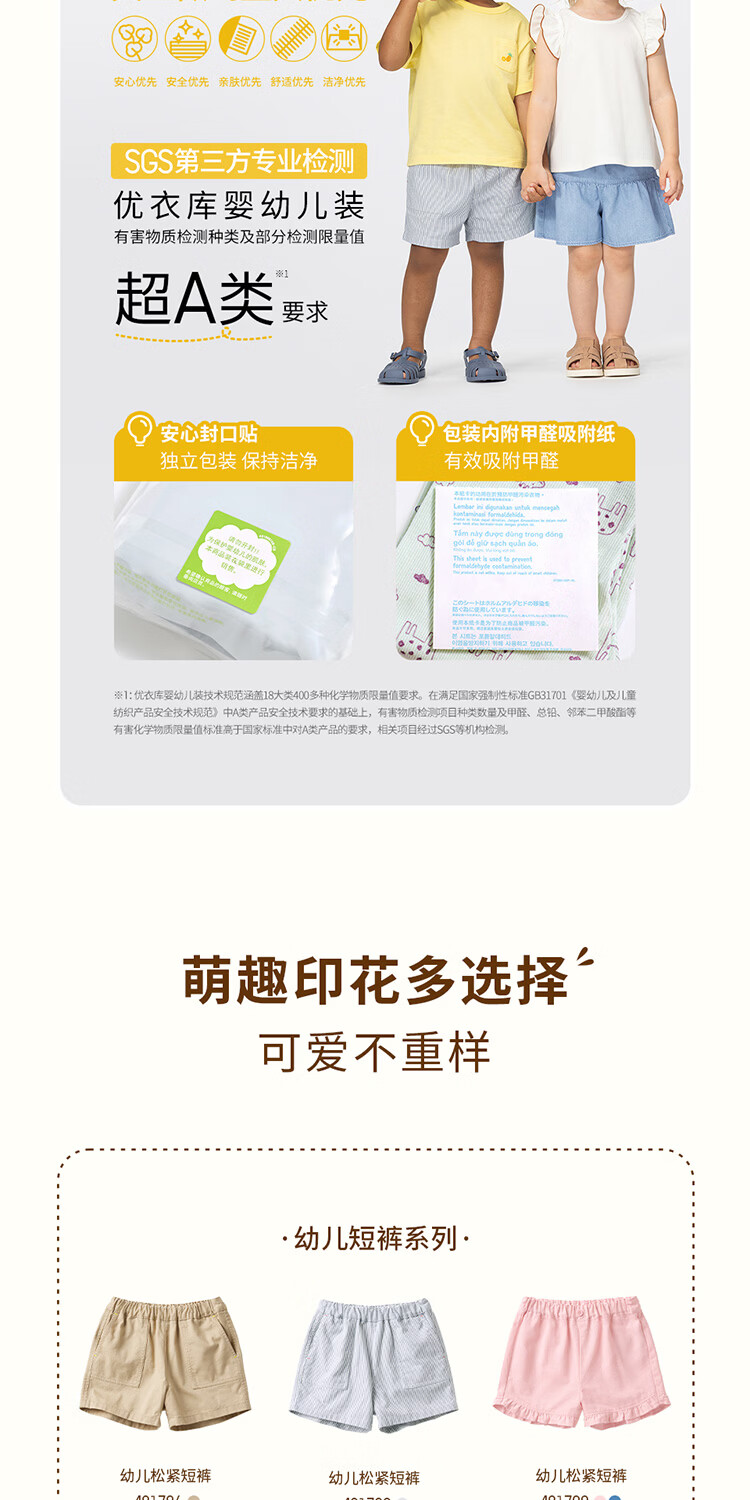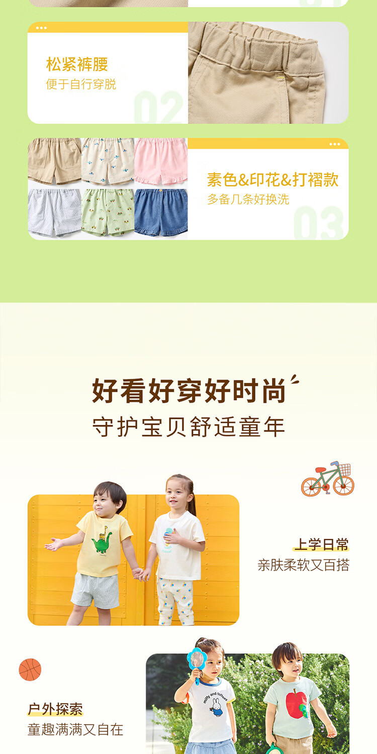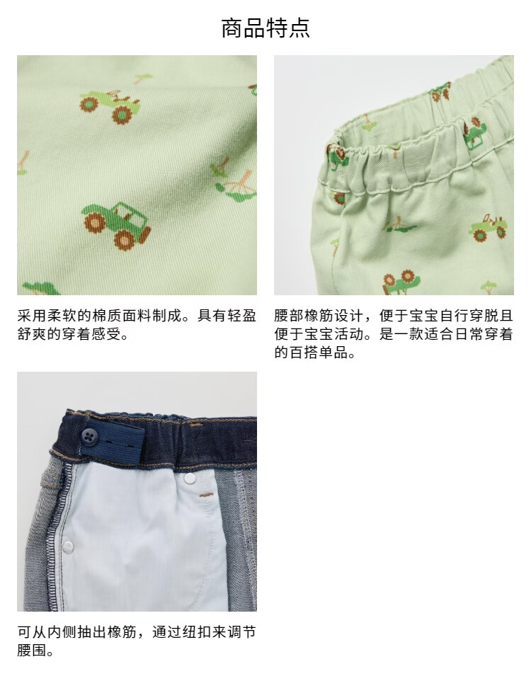 优衣库婴幼儿宝宝松紧短裤26春夏新款485322 51 嫩绿色 90