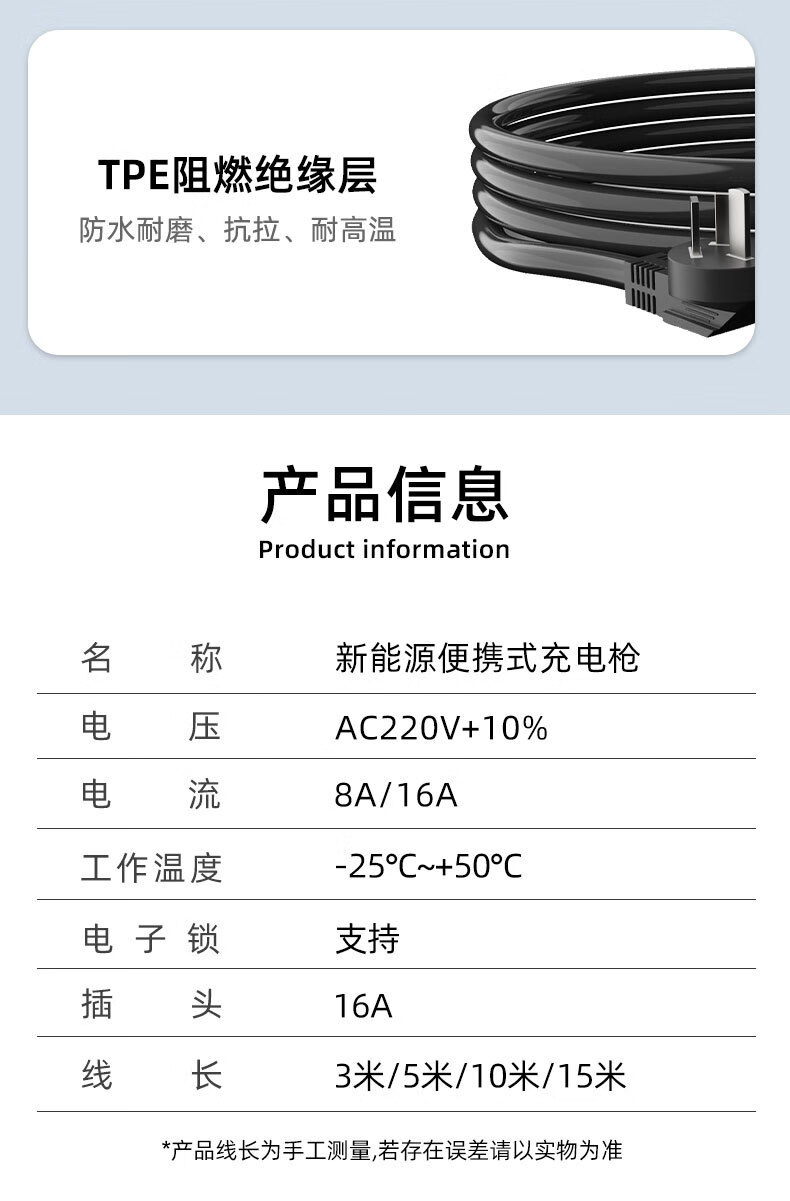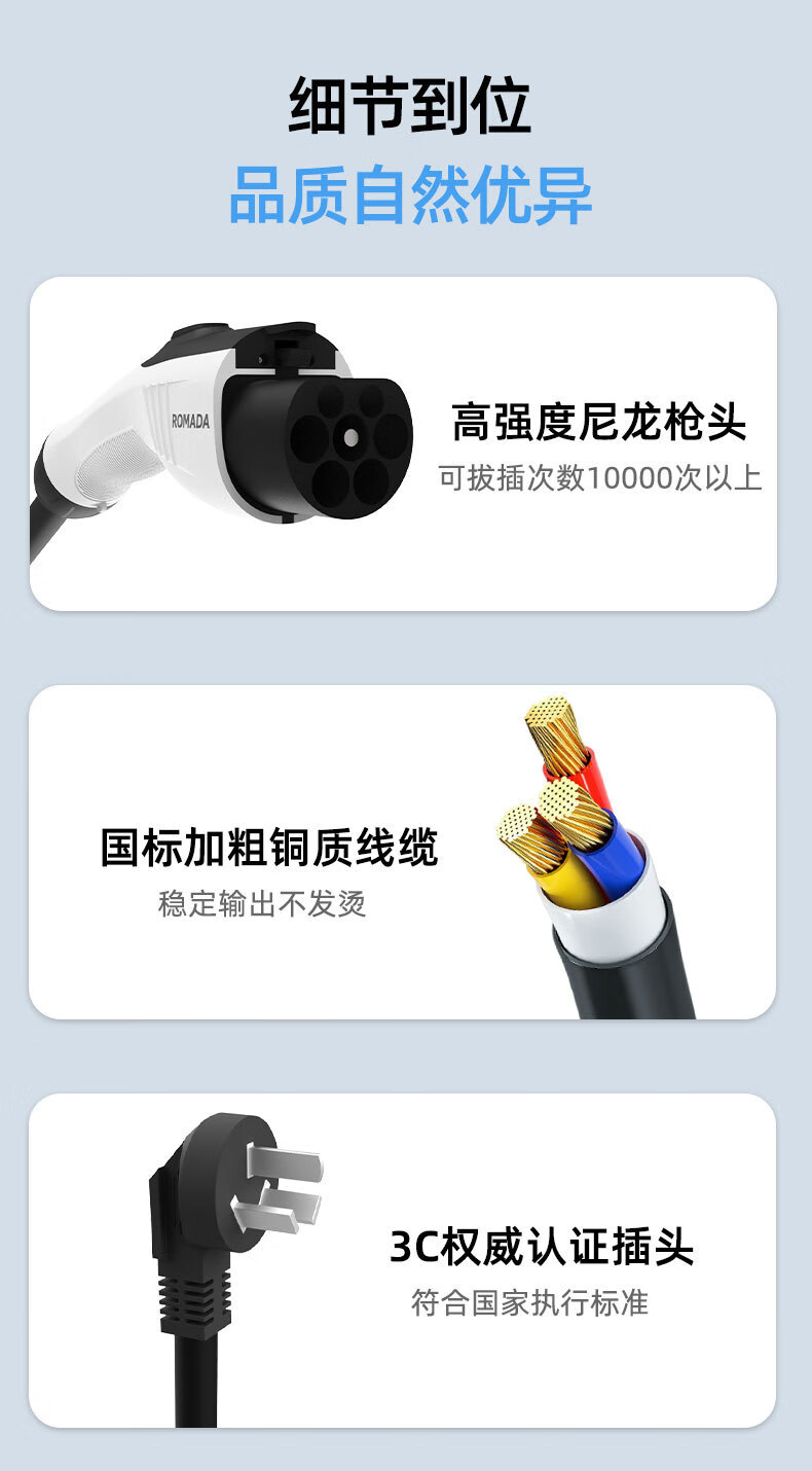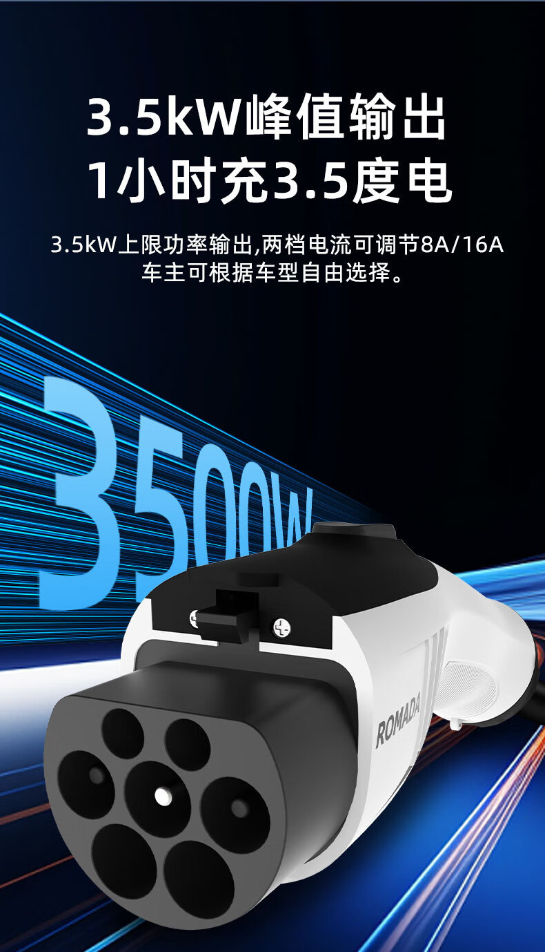 ROMADA适用奇瑞小蚂蚁充电枪qq冰淇淋星途新能源汽车充电器风云t9随车充 16A便携充电枪3.5KW/3米+转换插头