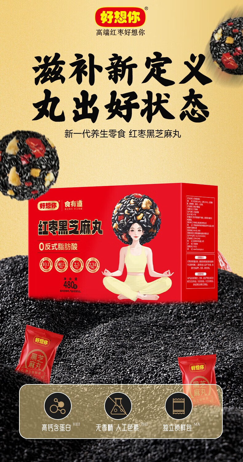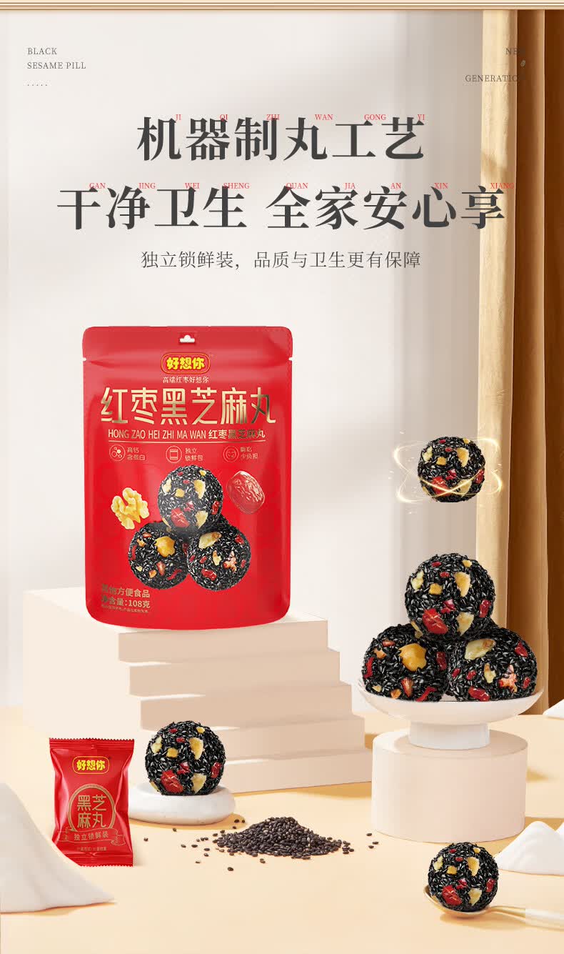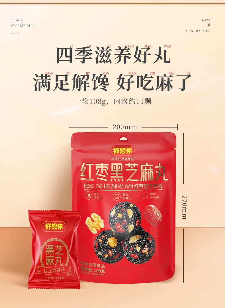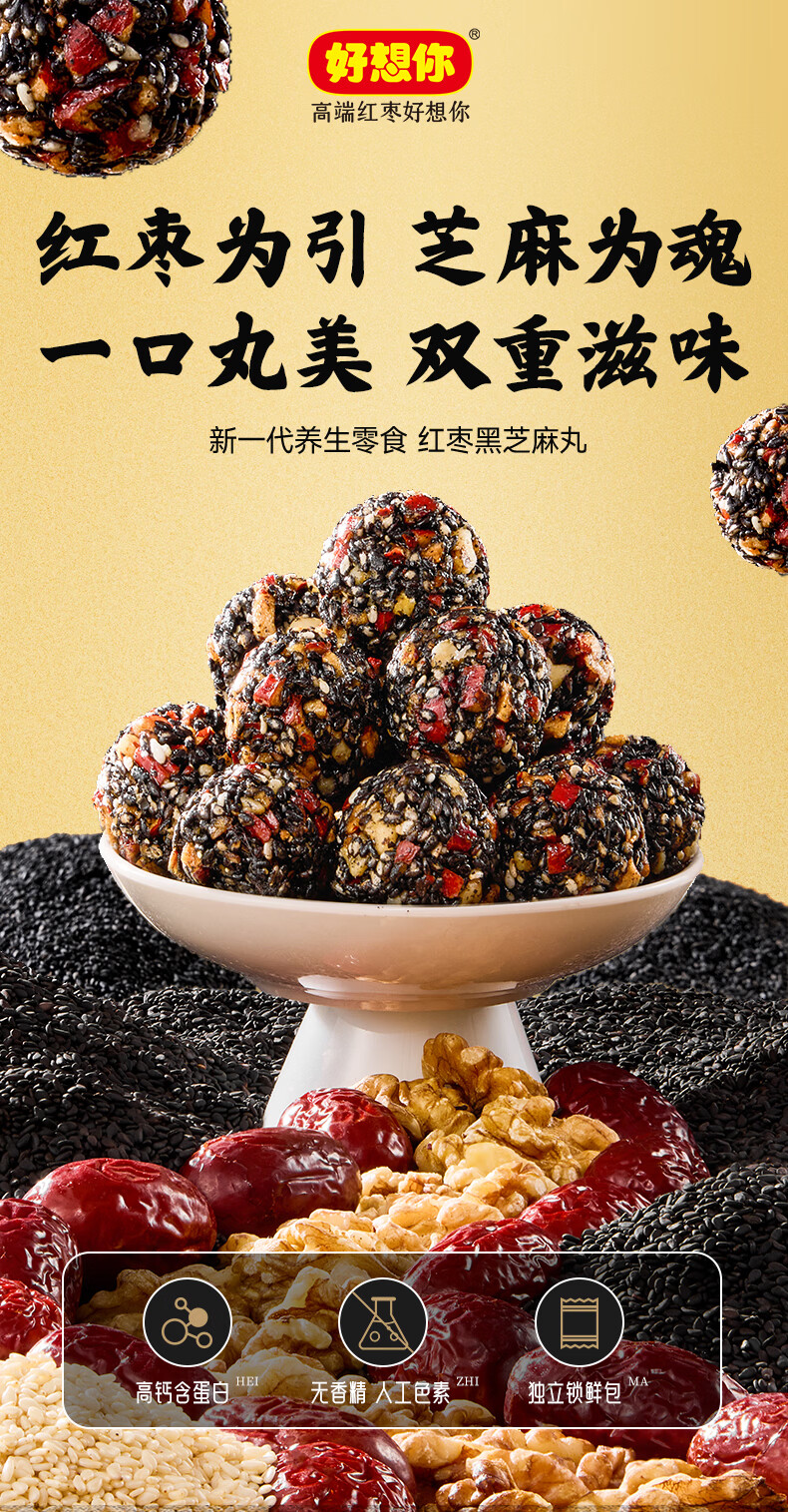 好想你_红枣黑芝麻丸 休闲零食高钙核桃灰枣蜜饯果干健康食品糕点 【约33包】红枣黑芝麻丸108g*3袋