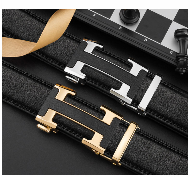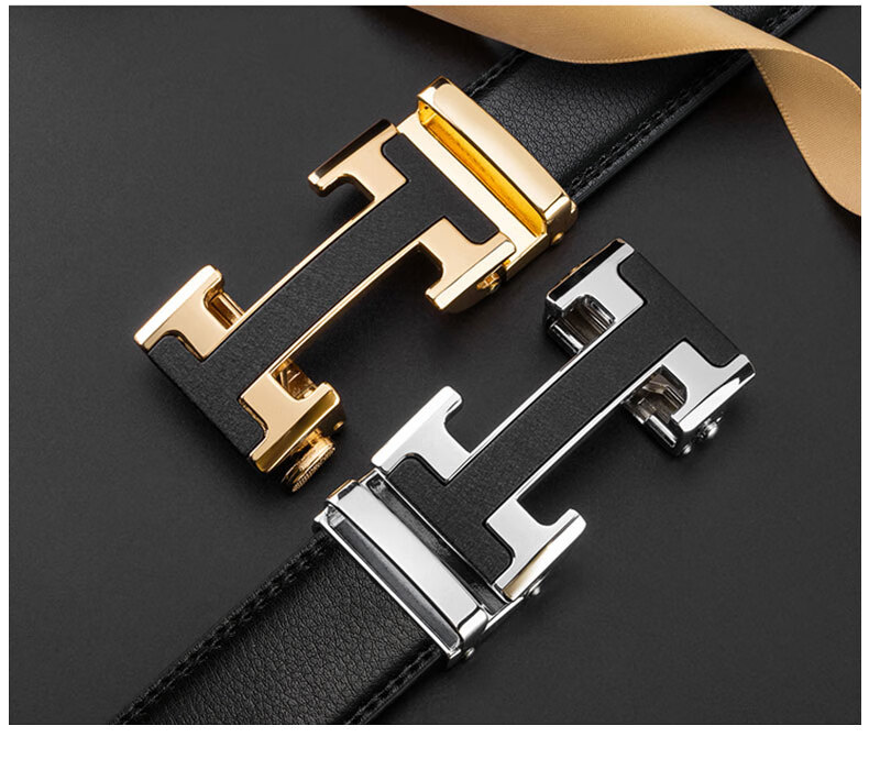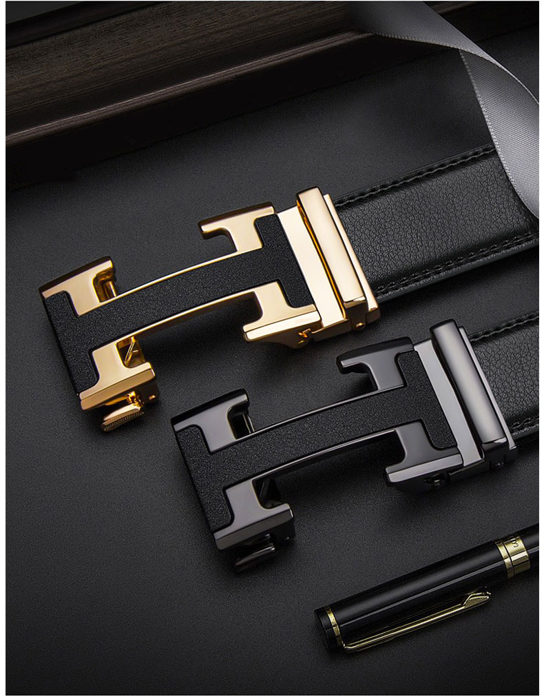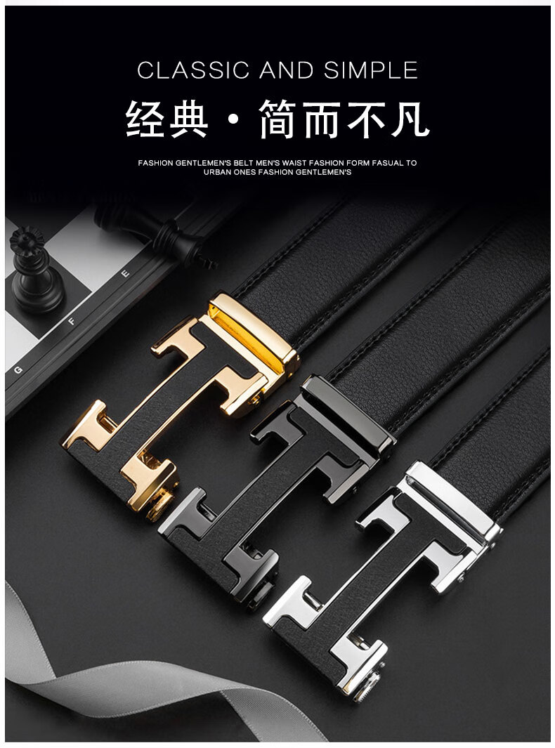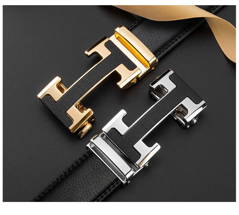 POACY男士皮带真牛皮 商务腰带男时尚裤带男款字母简约 礼物 大C02金色 115cm 【裤码35-37】
