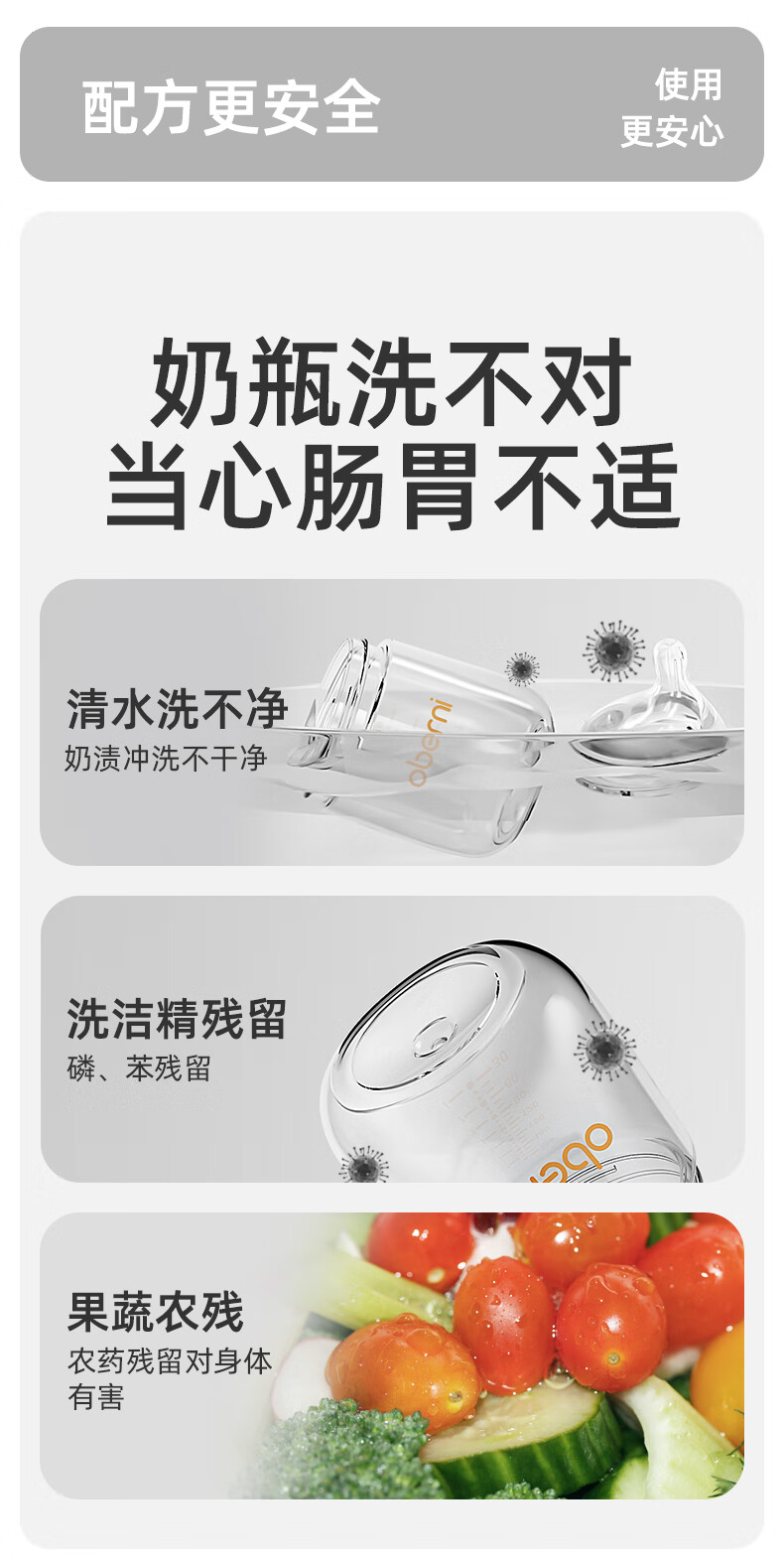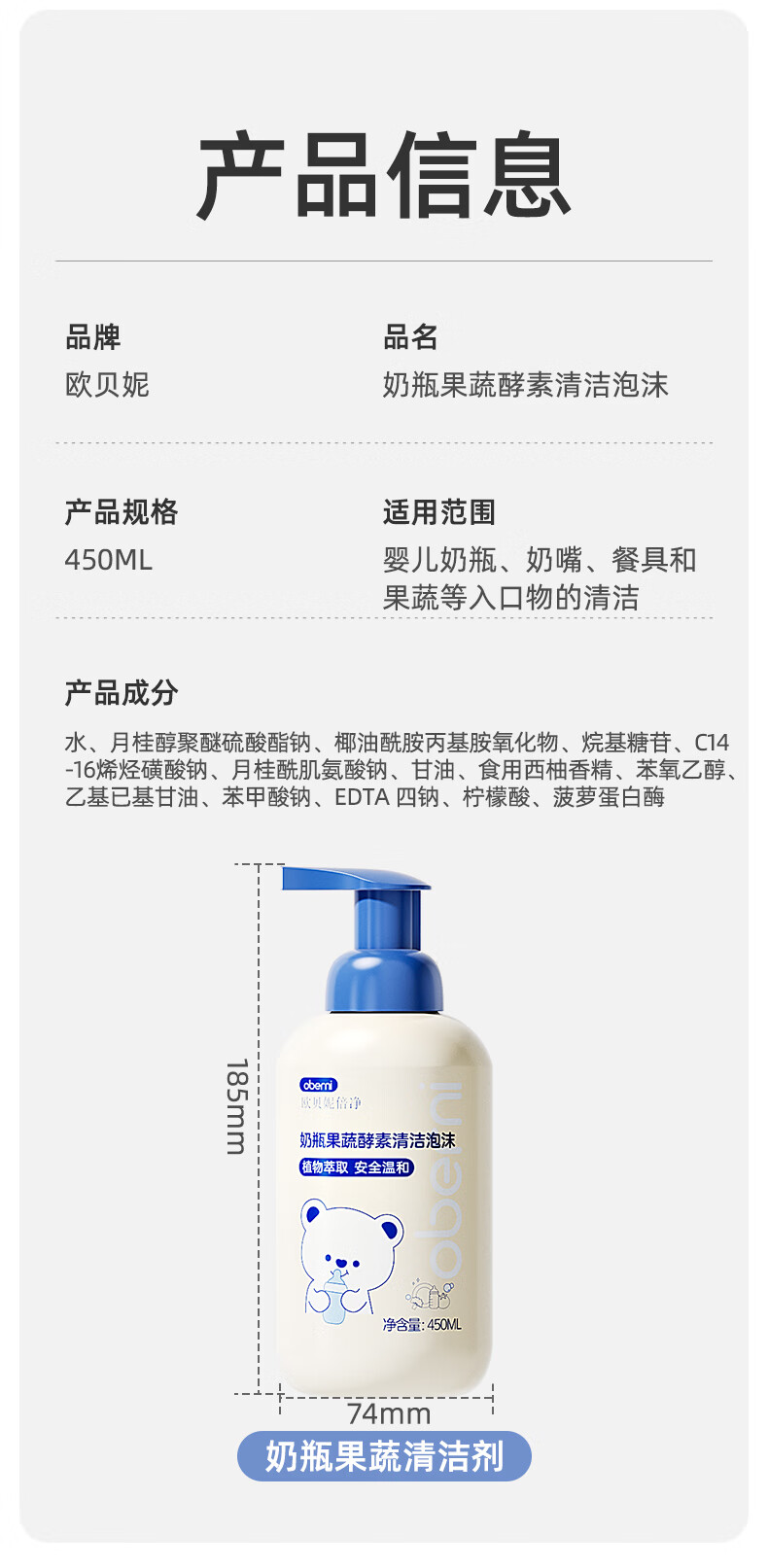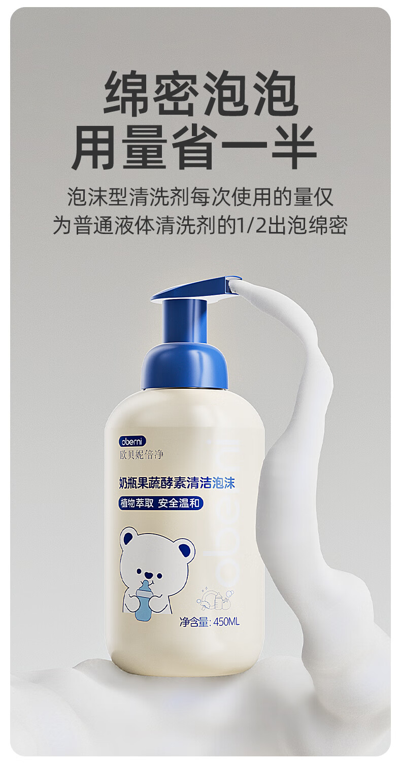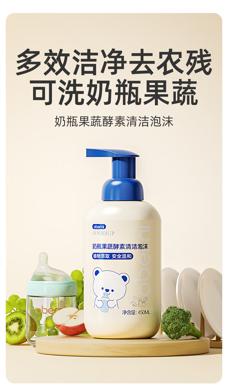 欧贝妮奶瓶清洗剂泡沫果蔬清洗婴儿宝宝专用洗奶瓶 450ml清洁剂(单瓶装)