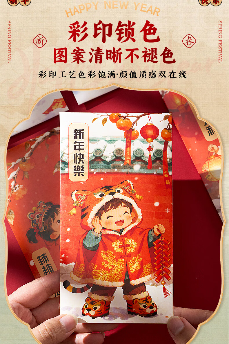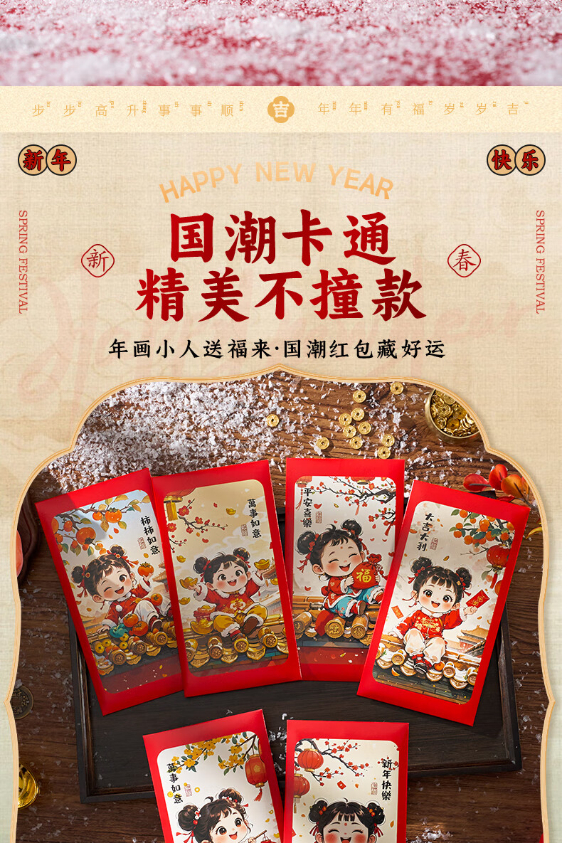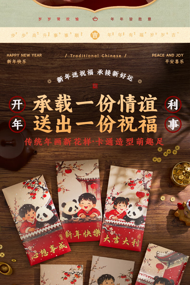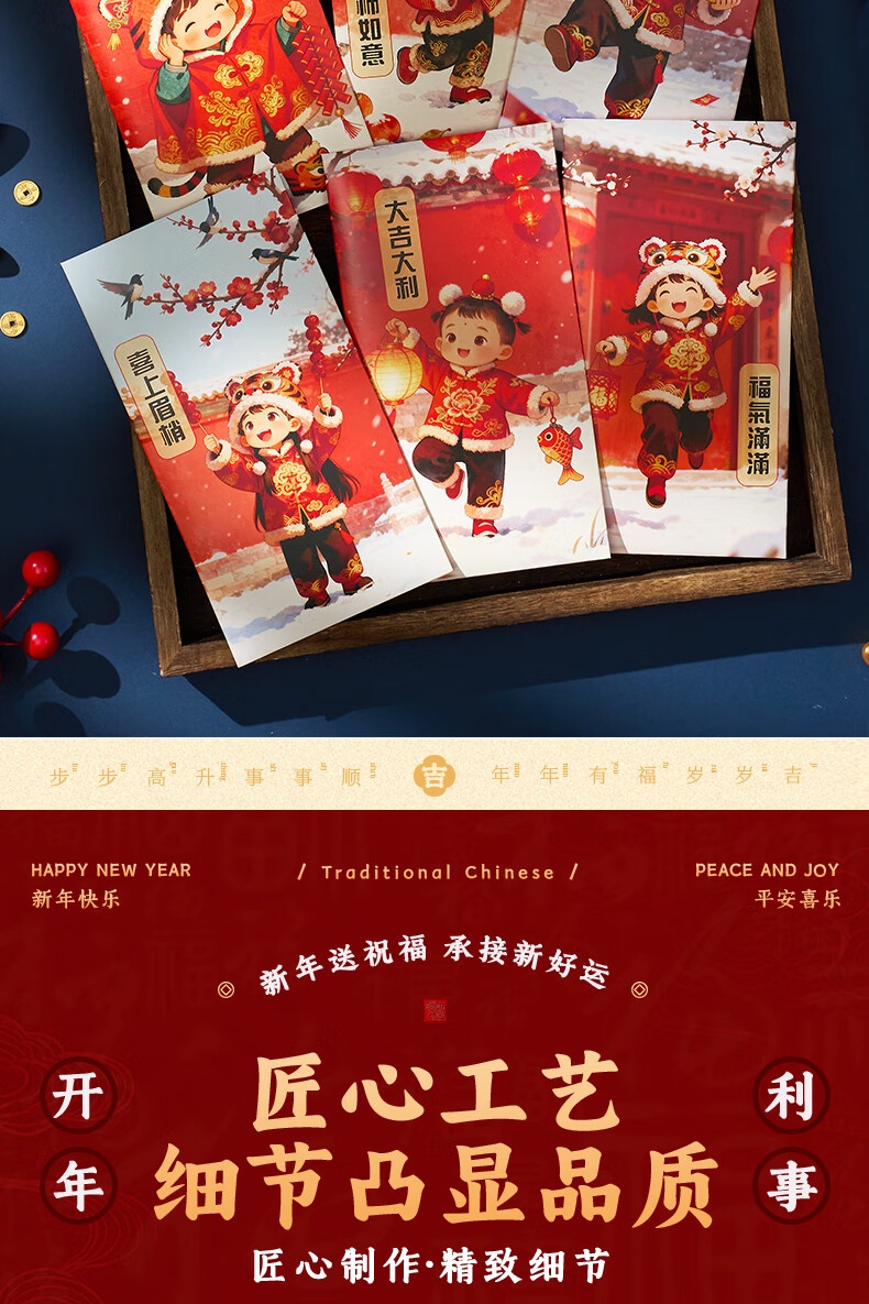 玖岩国潮国风福娃中式红包2026新款马年利是封新年春节压岁包送小孩子 萌宝送福来 6个装