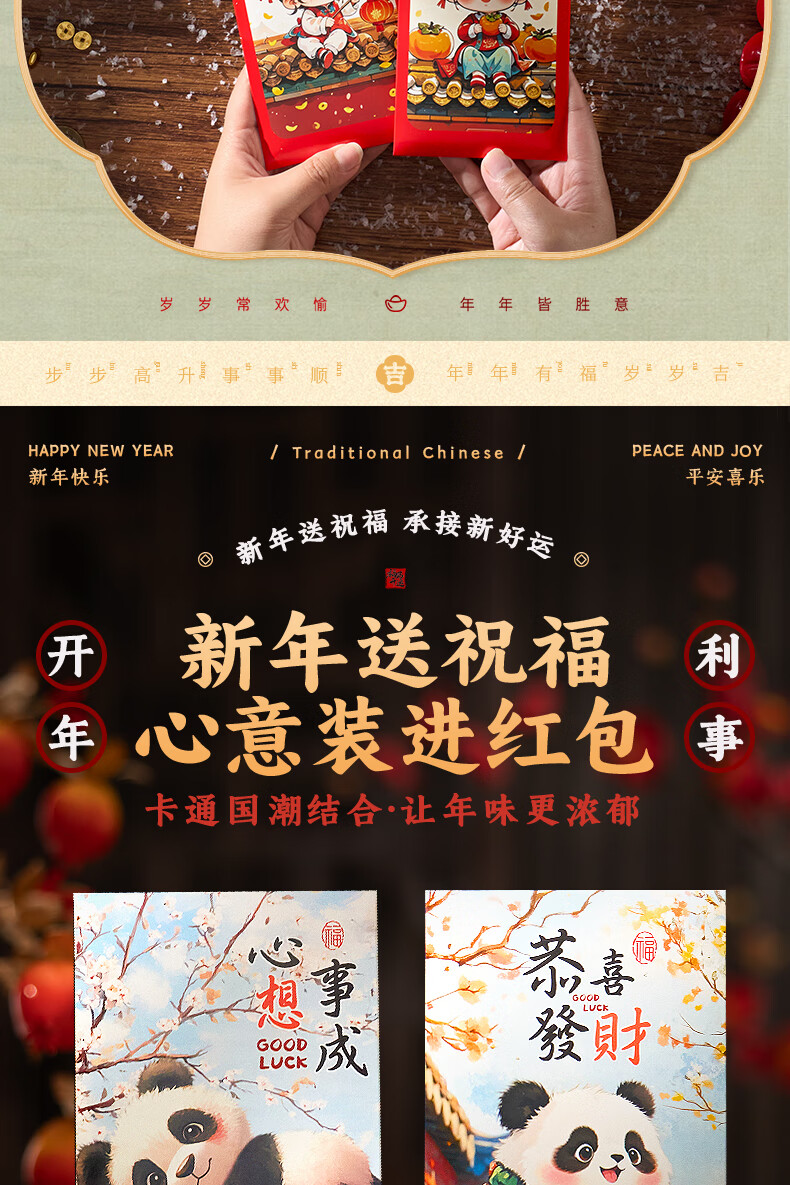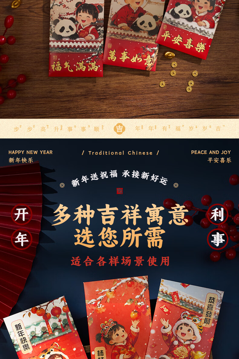千棵树新年利是封大吉大利红包通用福字万元千元压岁过年2026书法红包袋 财神送福 24个装