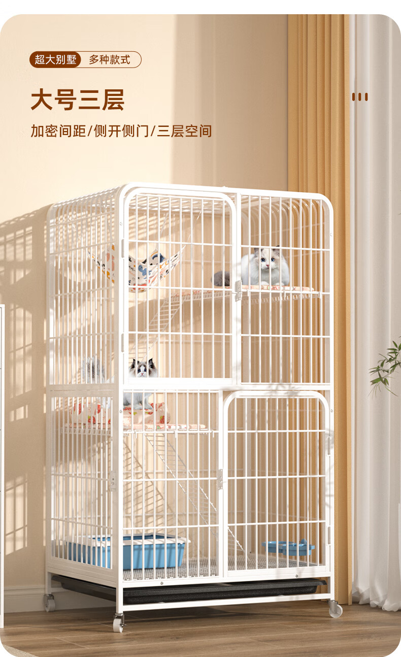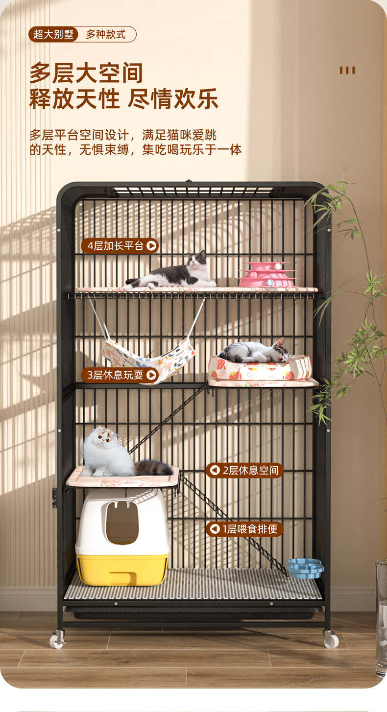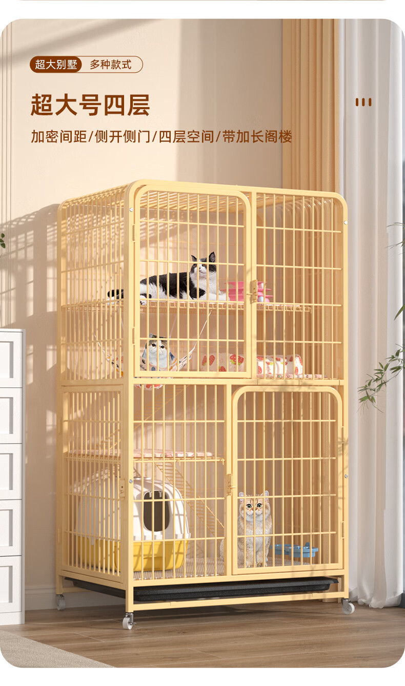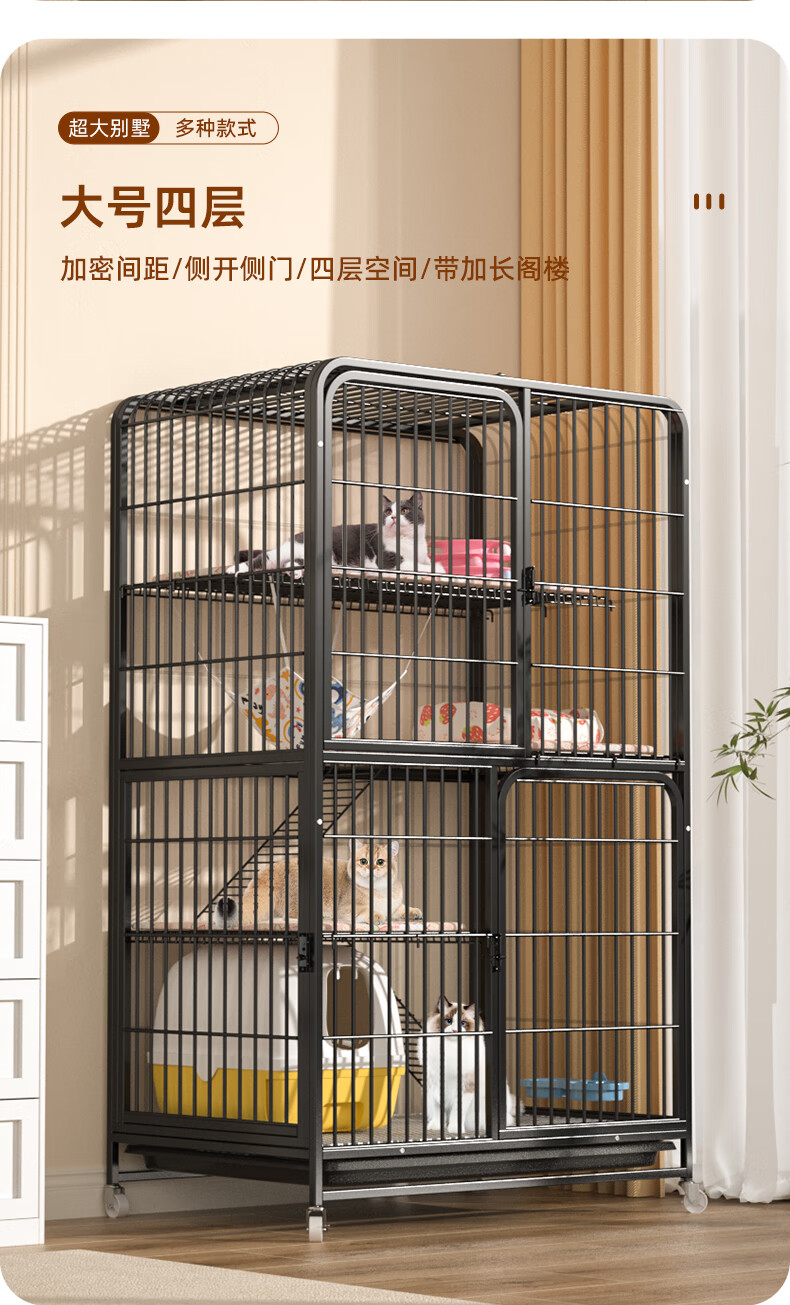 宠乐乖(CHONGLEGUAI)猫别墅猫笼子带厕所大号加粗方管猫窝猫舍猫屋家用宠物笼子四层