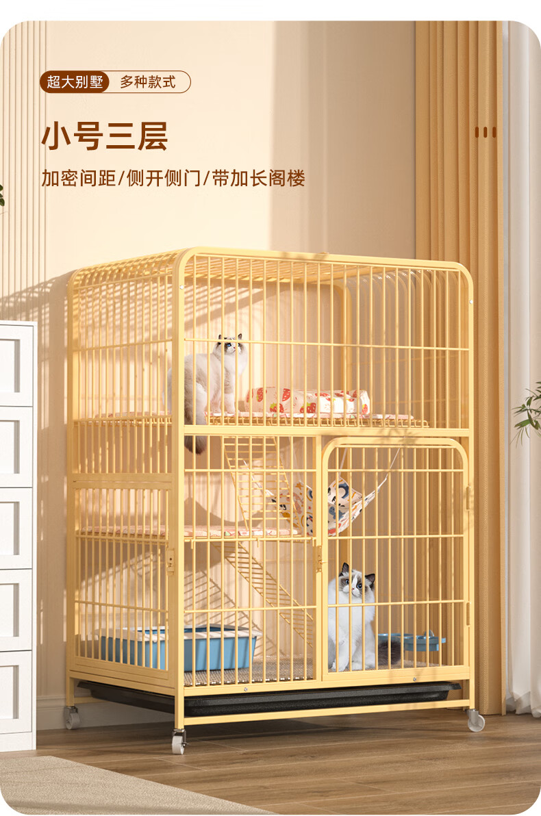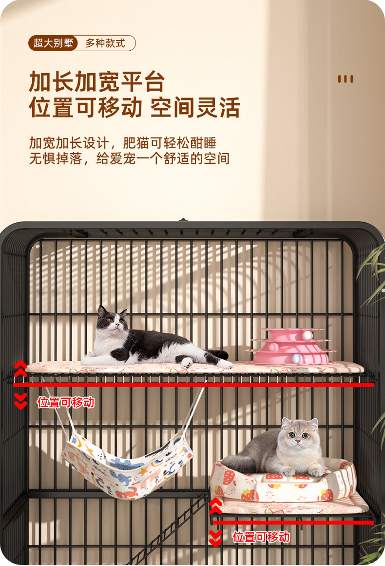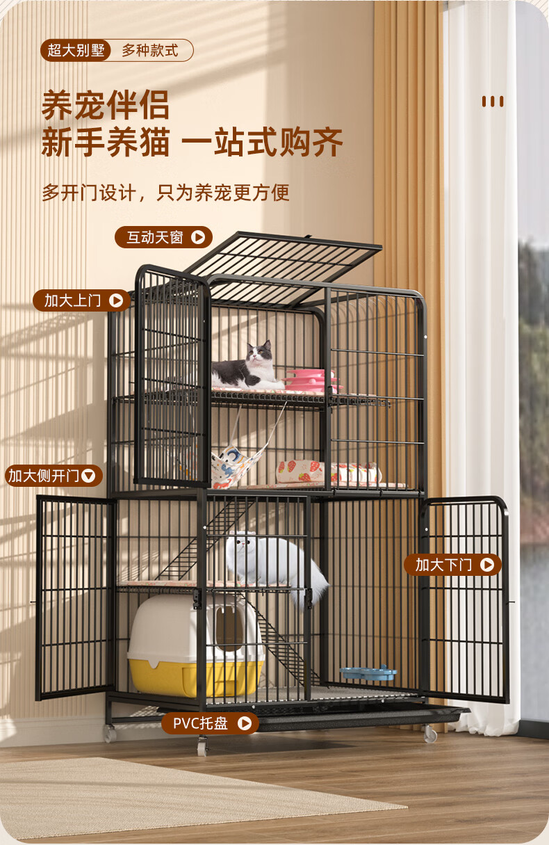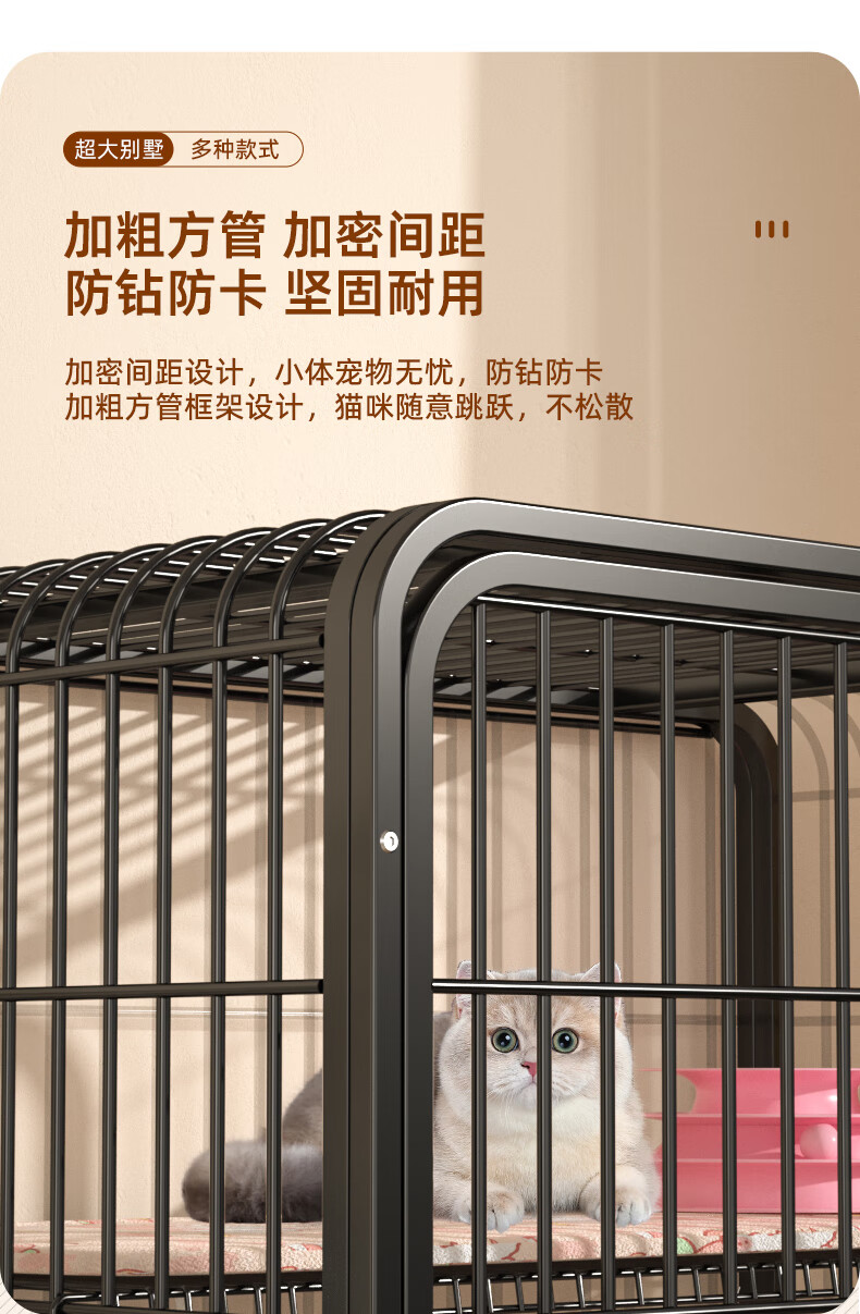 宠乐乖(CHONGLEGUAI)猫别墅猫笼子带厕所大号加粗方管猫窝猫舍猫屋家用宠物笼子四层