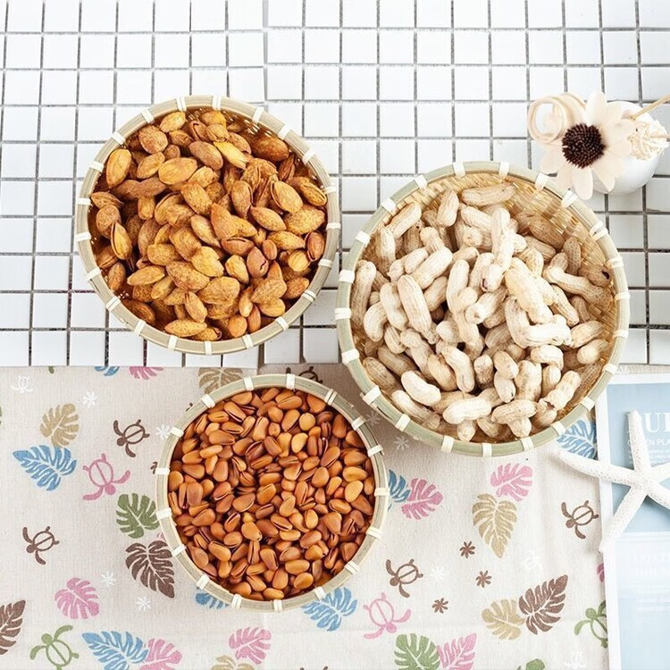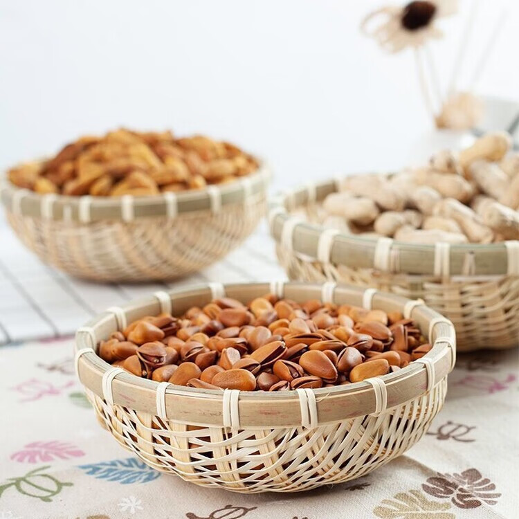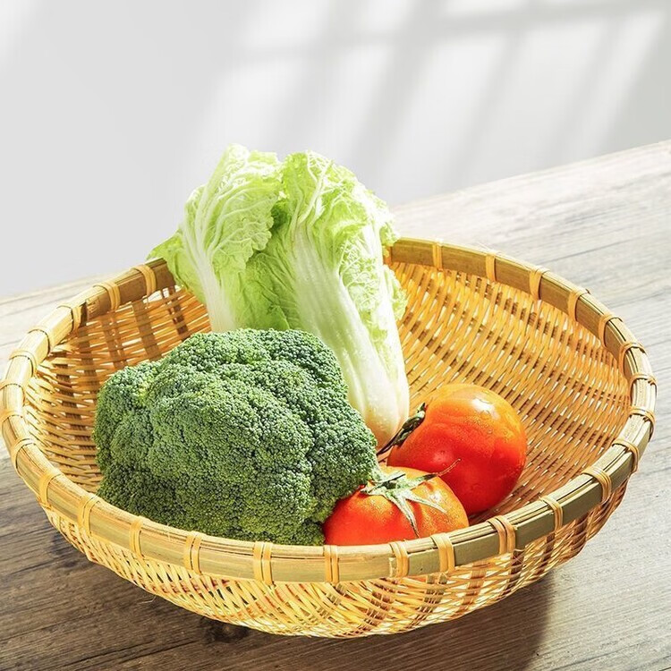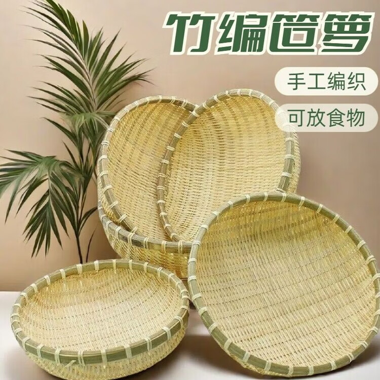 花沐禧竹编簸箕馒头圆形收纳竹制品手工洗菜沥水家用淘米水果篮农家箩筐 本色竹编筐37cm【装18到20个馒头】