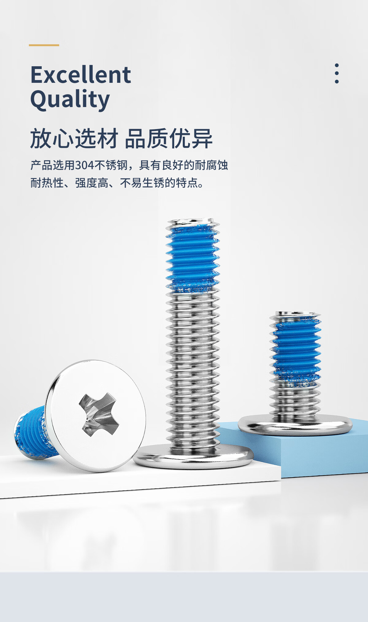 固万基(GUWANJI)304不锈钢薄头扁平头十字螺栓CM点胶防松动胶涂蓝胶螺丝钉 M2x3x4[500个]