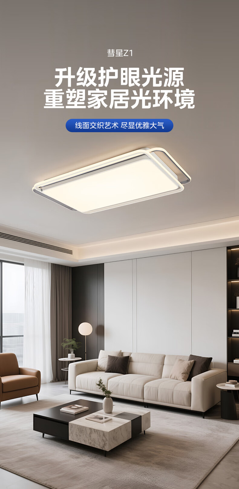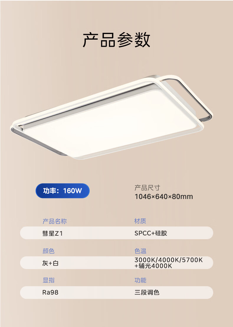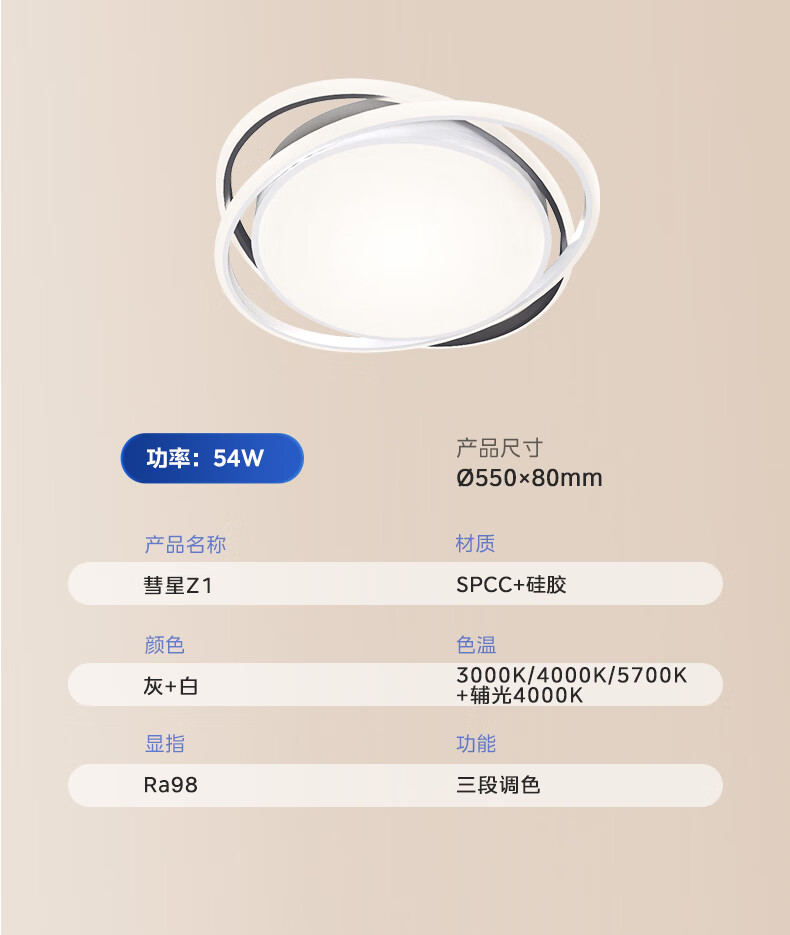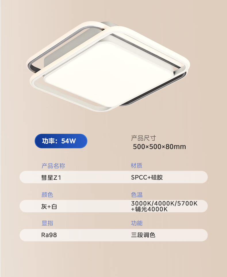 美的(Midea)吸顶灯客厅大灯北欧造型客厅灯主灯护眼卧室房间灯具大全彗星Z1 三段调色|54W卧室方灯|全光谱