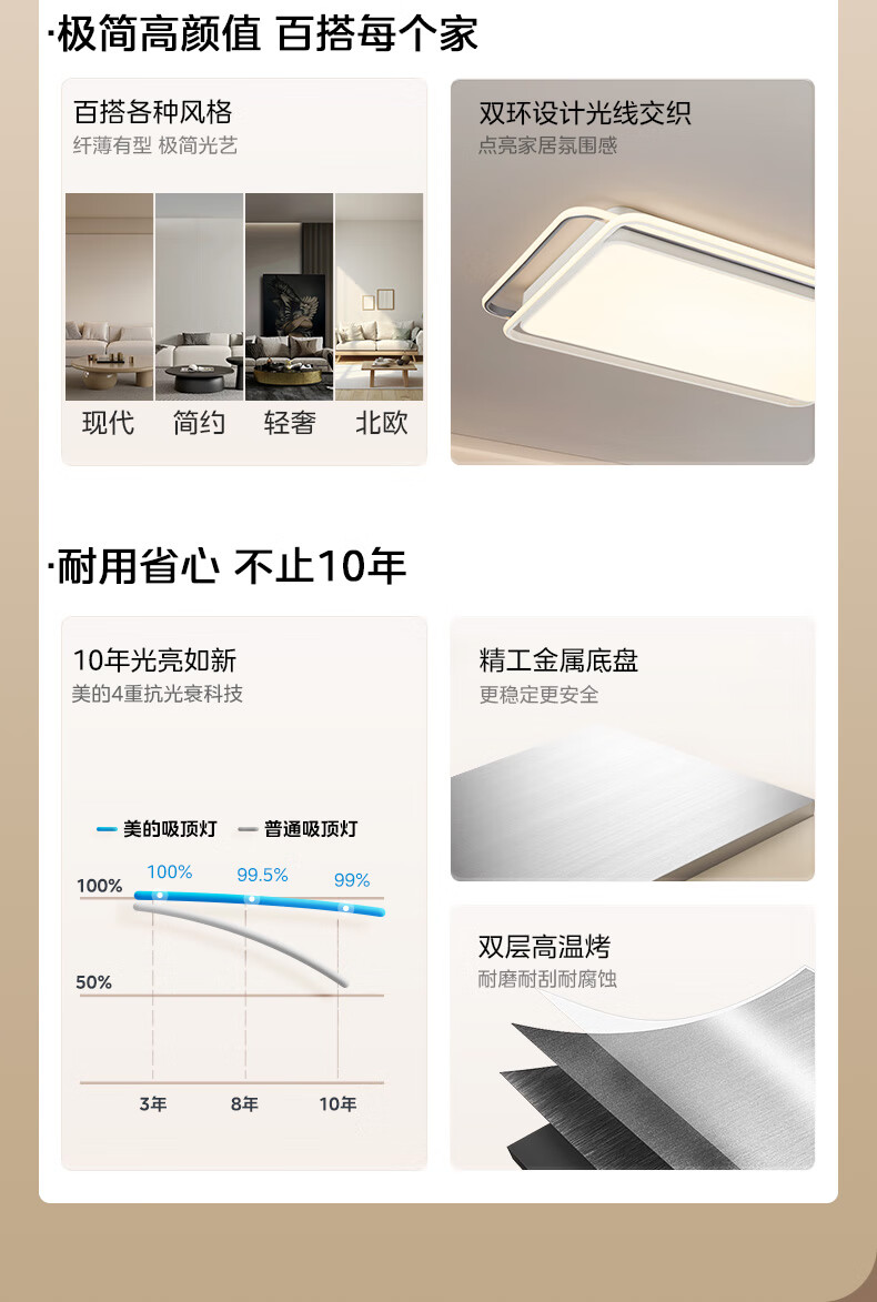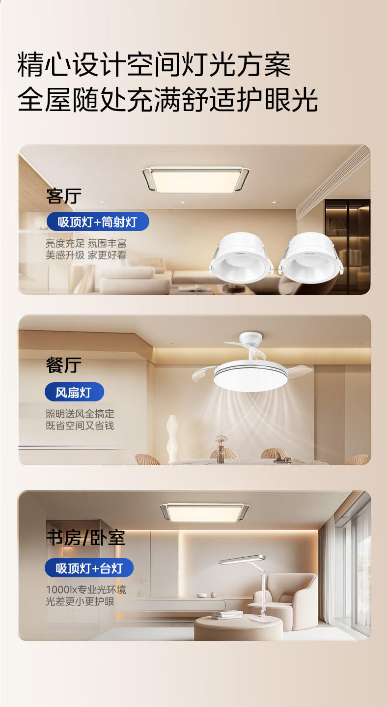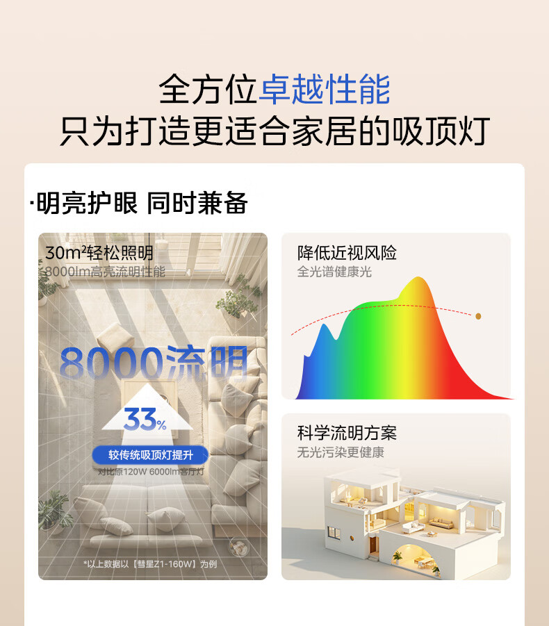 美的(Midea)吸顶灯客厅大灯北欧造型客厅灯主灯护眼卧室房间灯具大全彗星Z1 三段调色|54W卧室方灯|全光谱