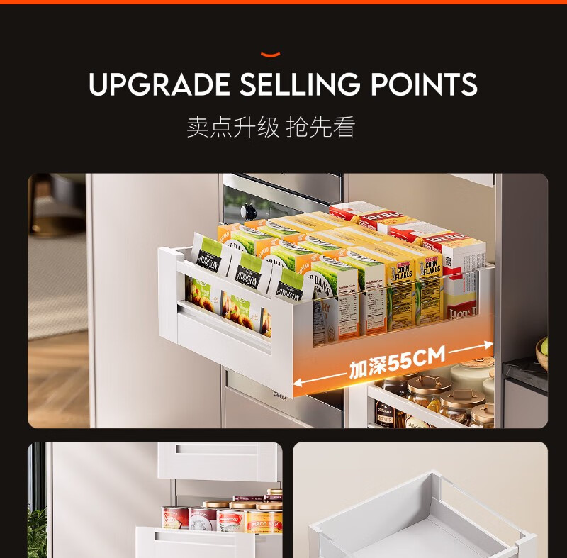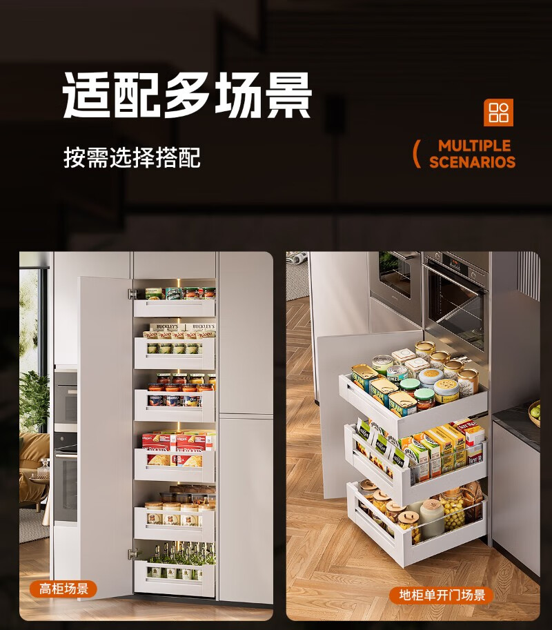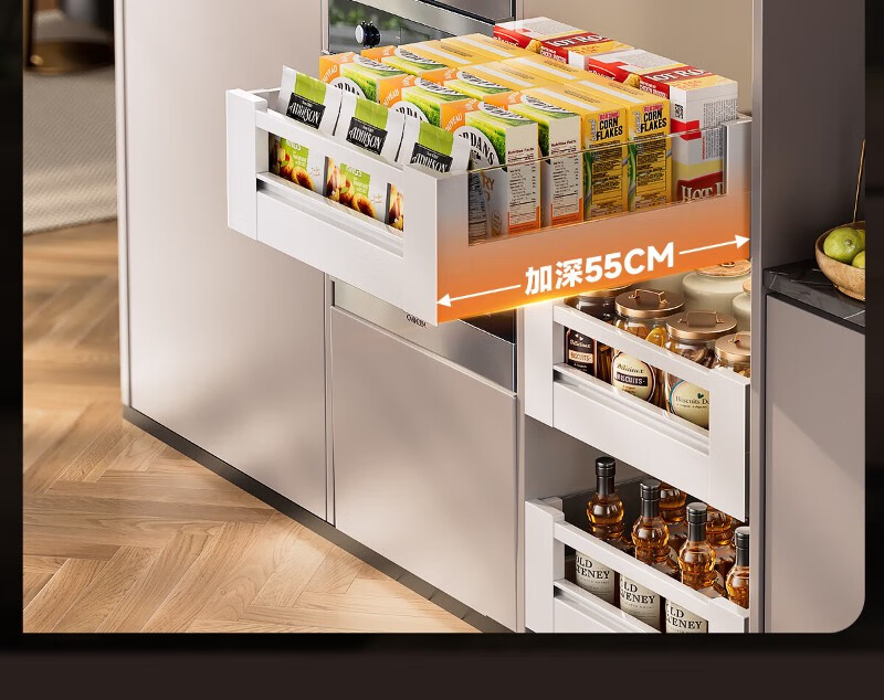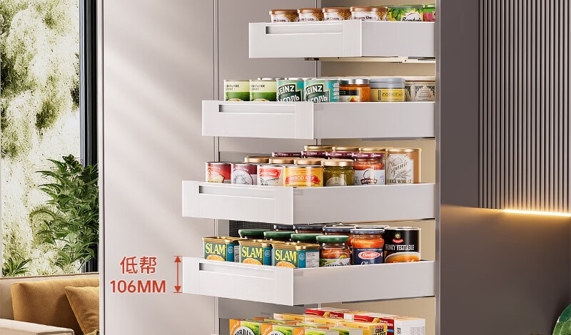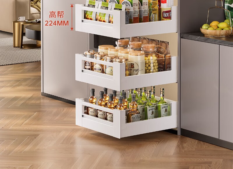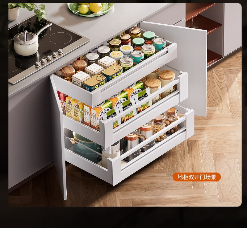 德米莫拉篮厨房置物高柜阻尼抽屉橱柜轨道大怪物高深浅餐边柜零食收纳柜 低帮350柜-350深【单层】+铝合金面板