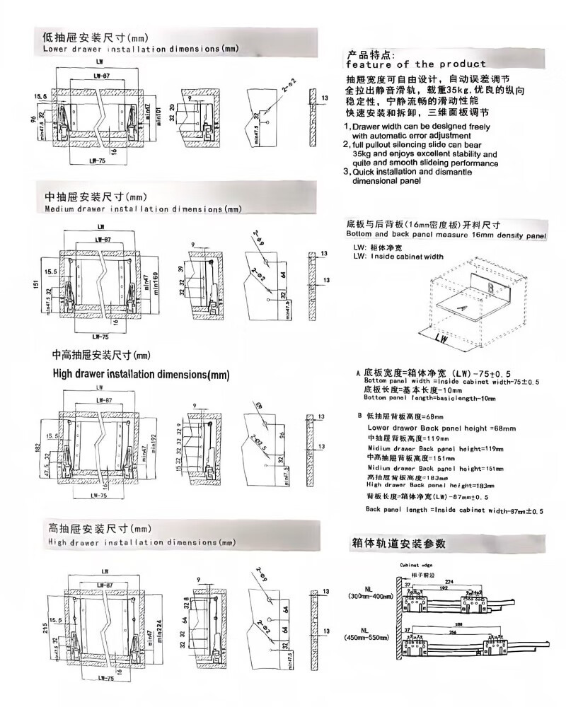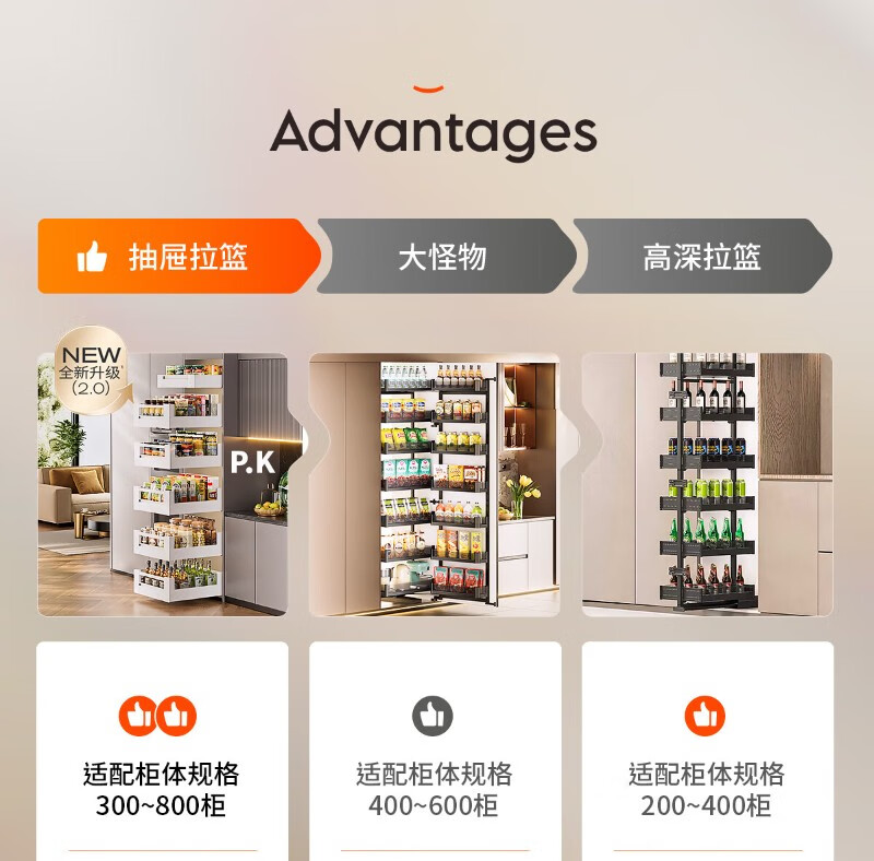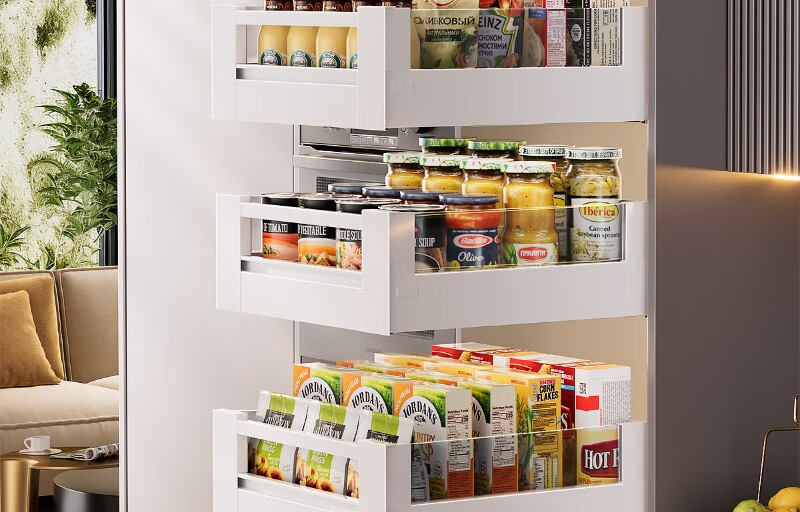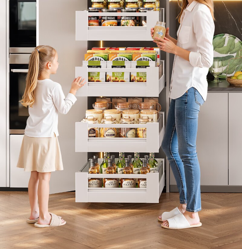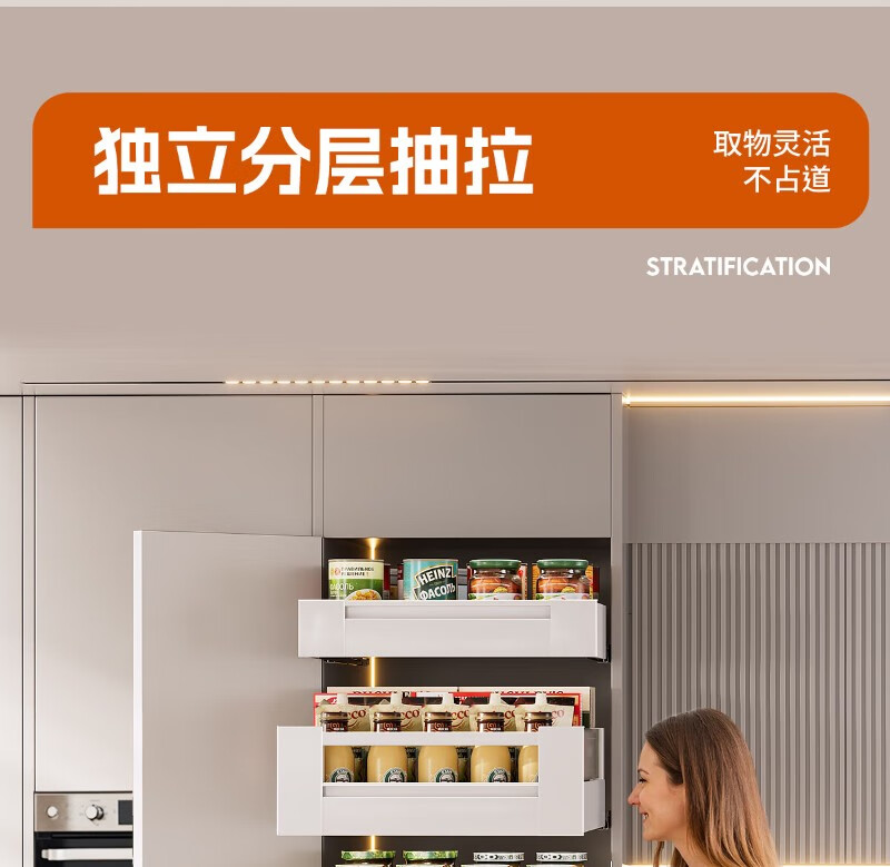 德米莫拉篮厨房置物高柜阻尼抽屉橱柜轨道大怪物高深浅餐边柜零食收纳柜 低帮350柜-350深【单层】+铝合金面板