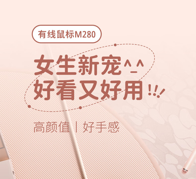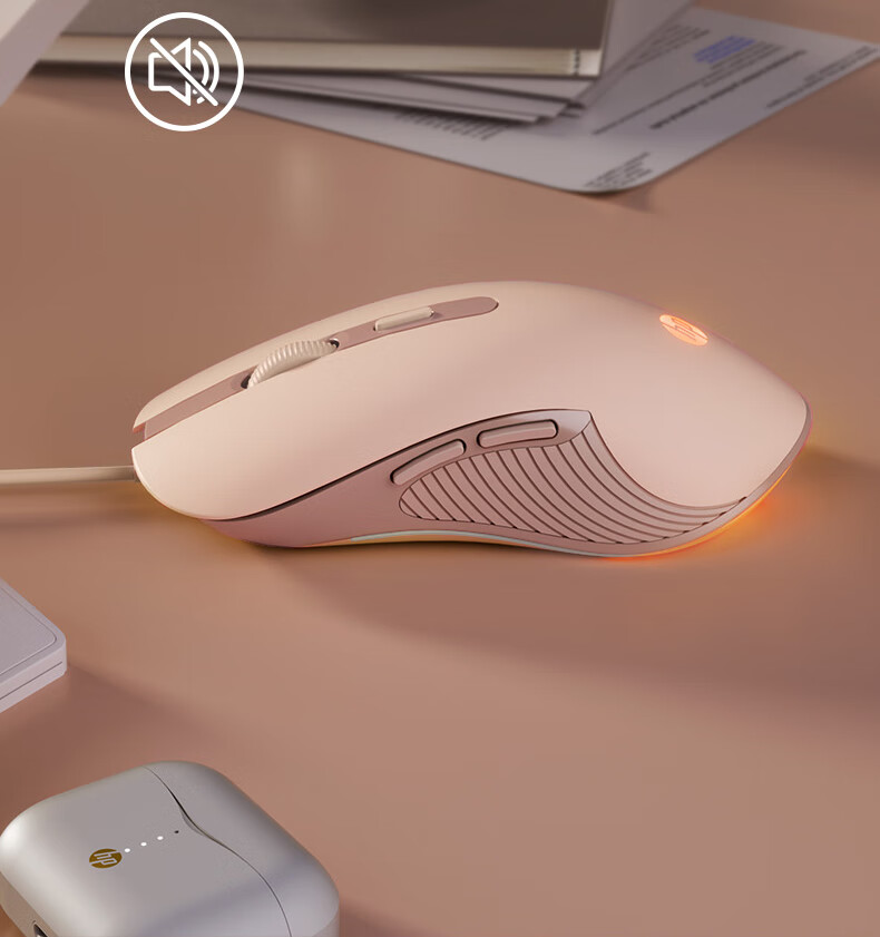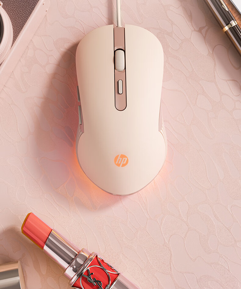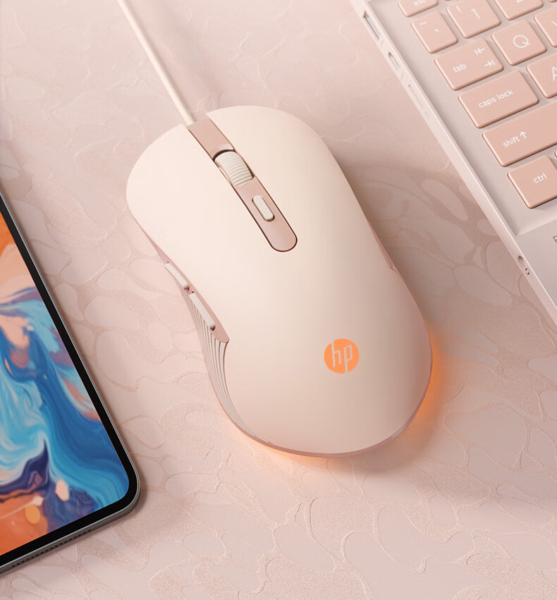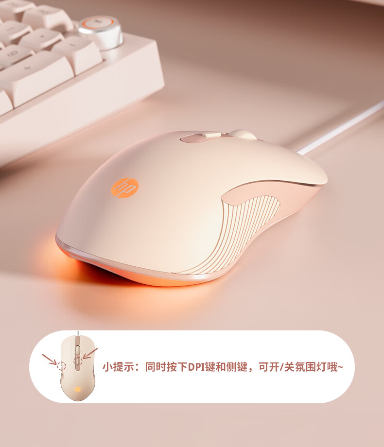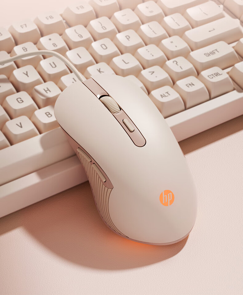 惠普(HP)M280有线鼠标 静音家用办公笔记本台式机人体工学女生电竞游戏鼠标 奶茶色