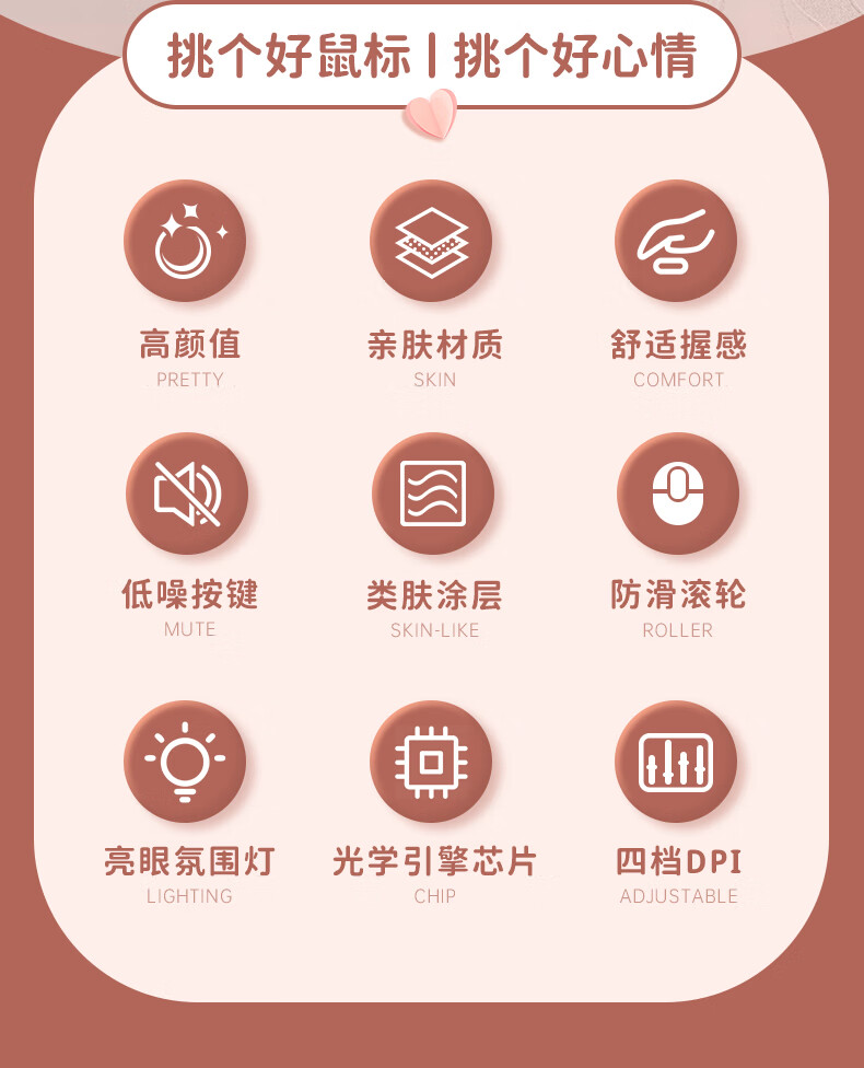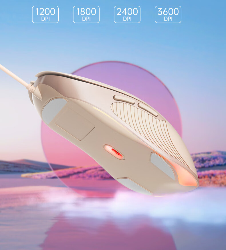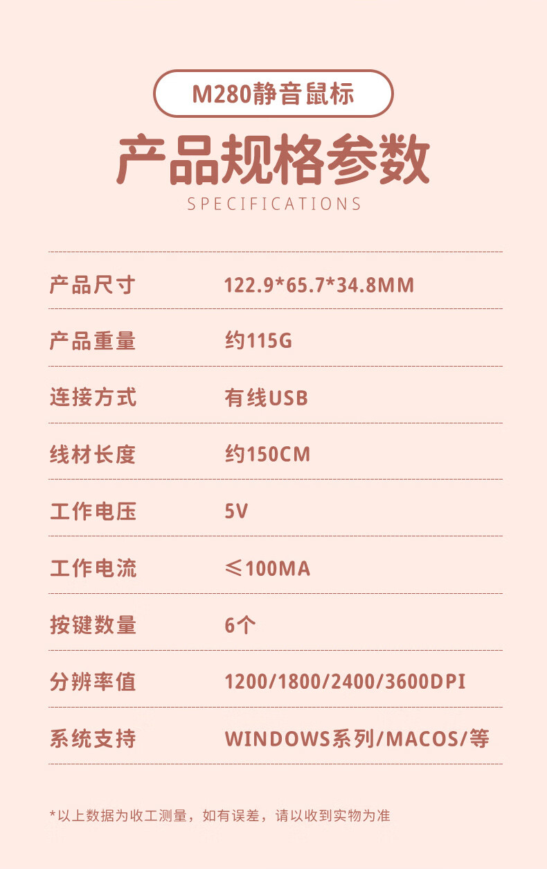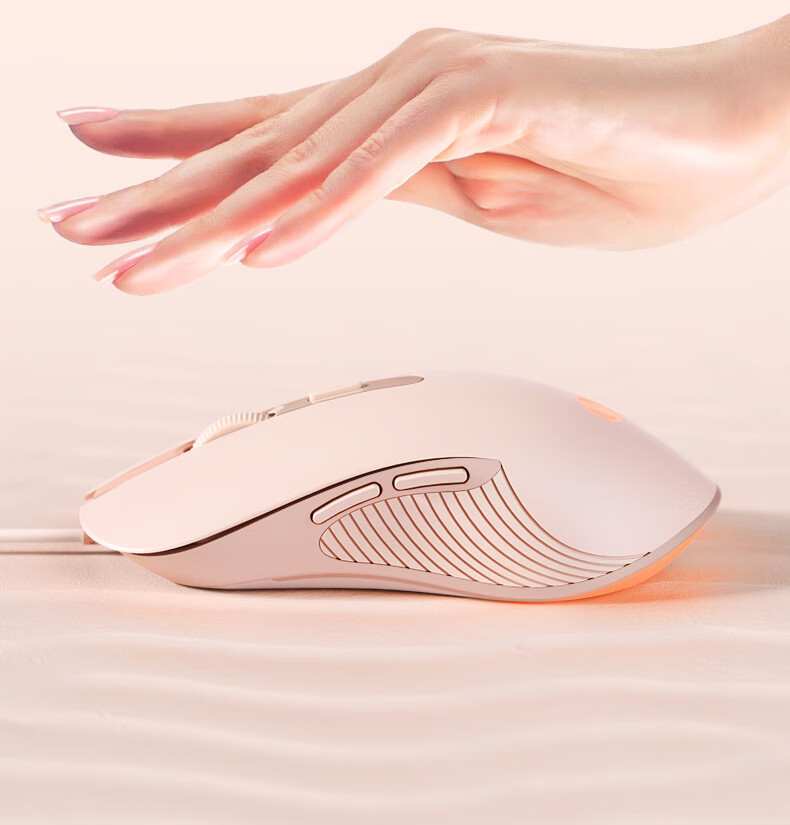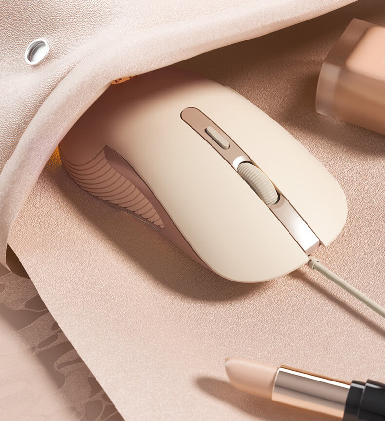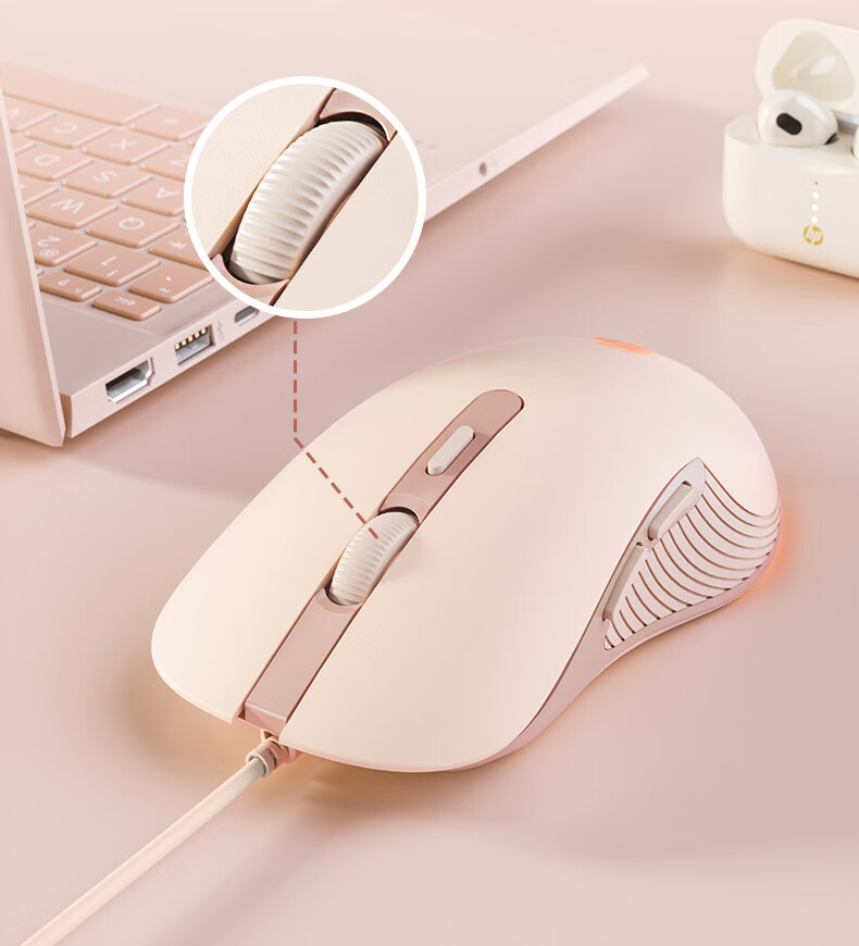 惠普(HP)M280有线鼠标 静音家用办公笔记本台式机人体工学女生电竞游戏鼠标 奶茶色